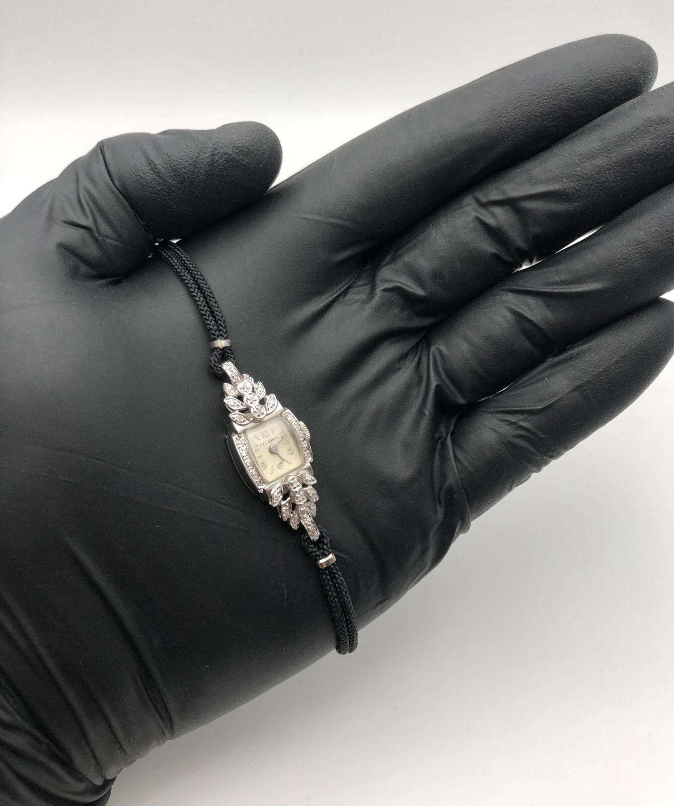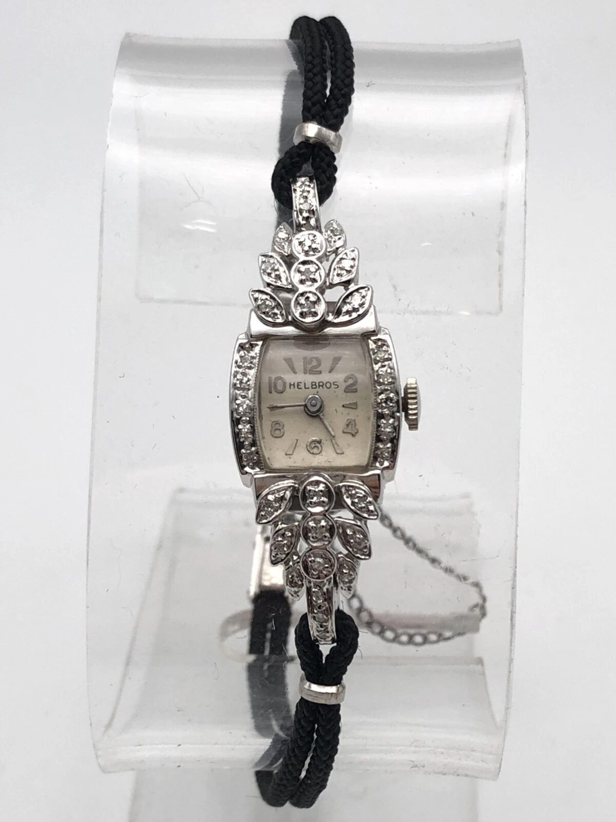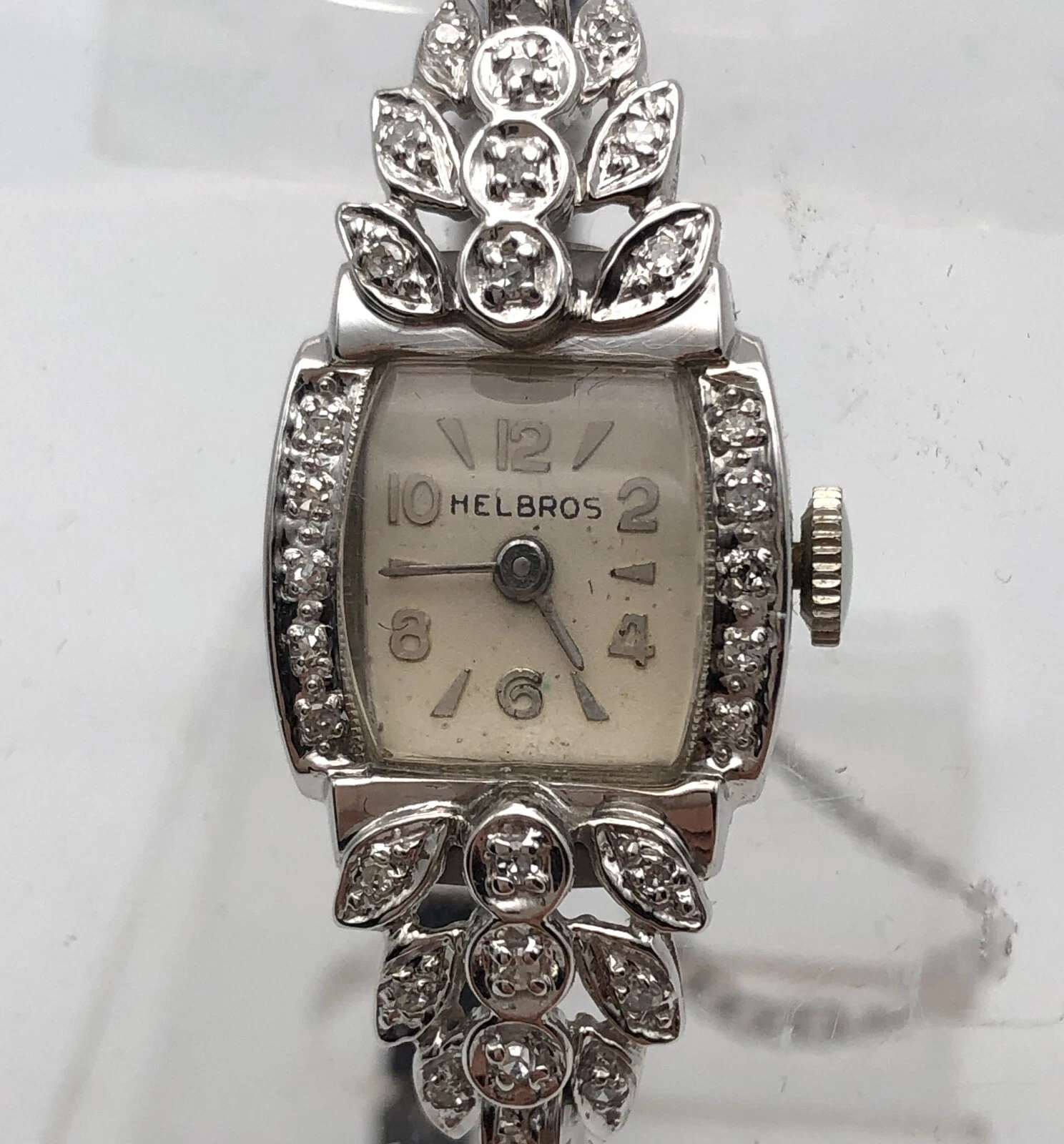 Vintage Ladies 14k White Gold, Helbros Watch with 0.25cts of Diamonds