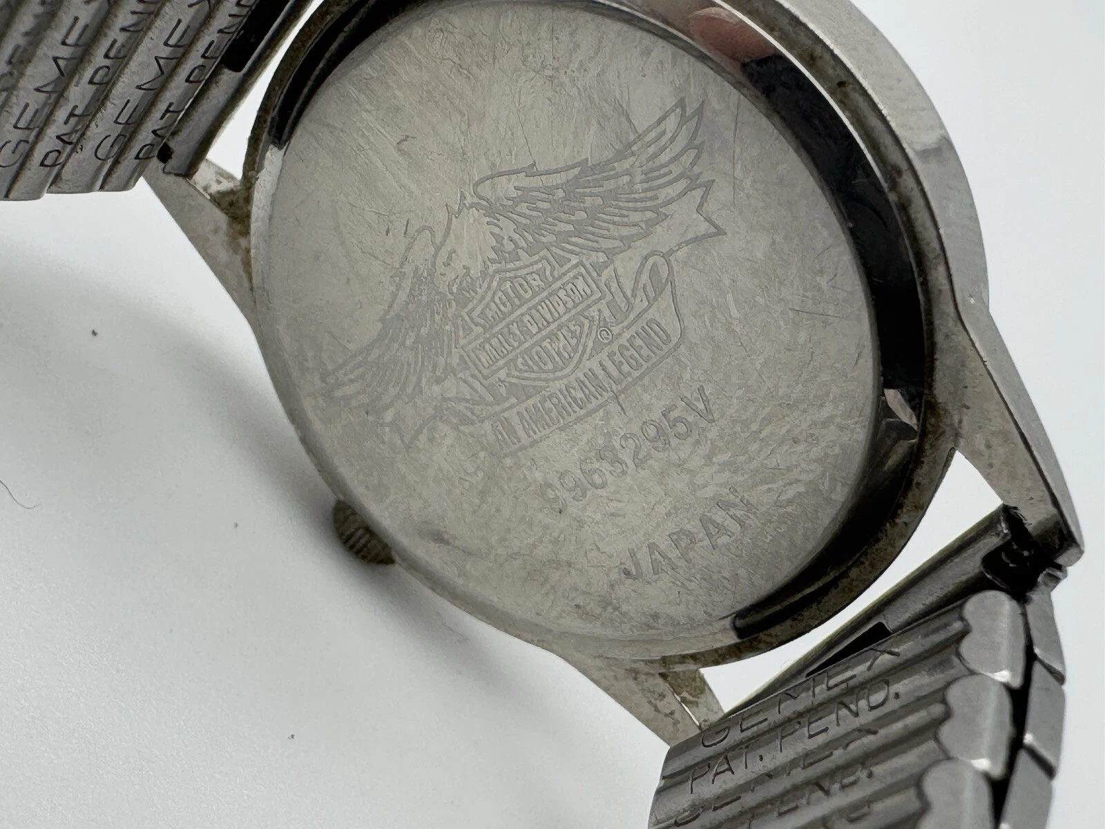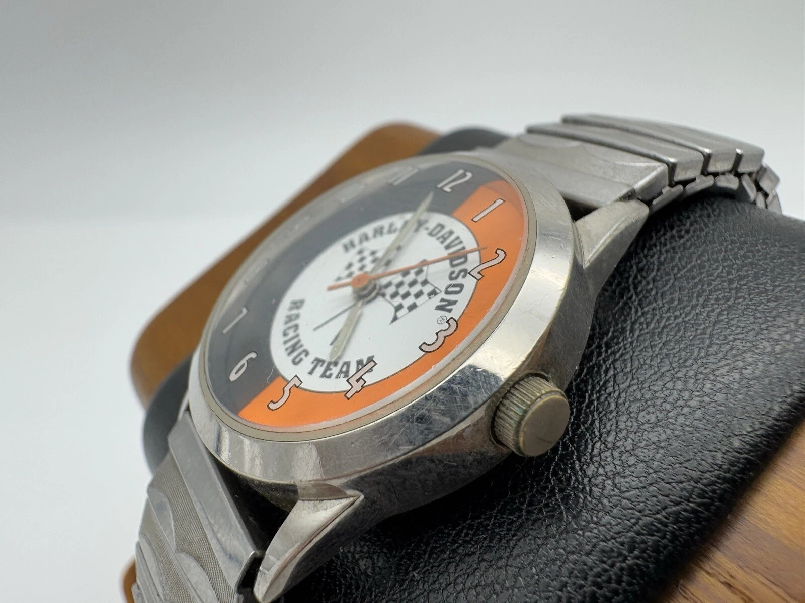 Harley Davidson Racing Team Womens Watch Rare Stainless Silver Leather Quartz