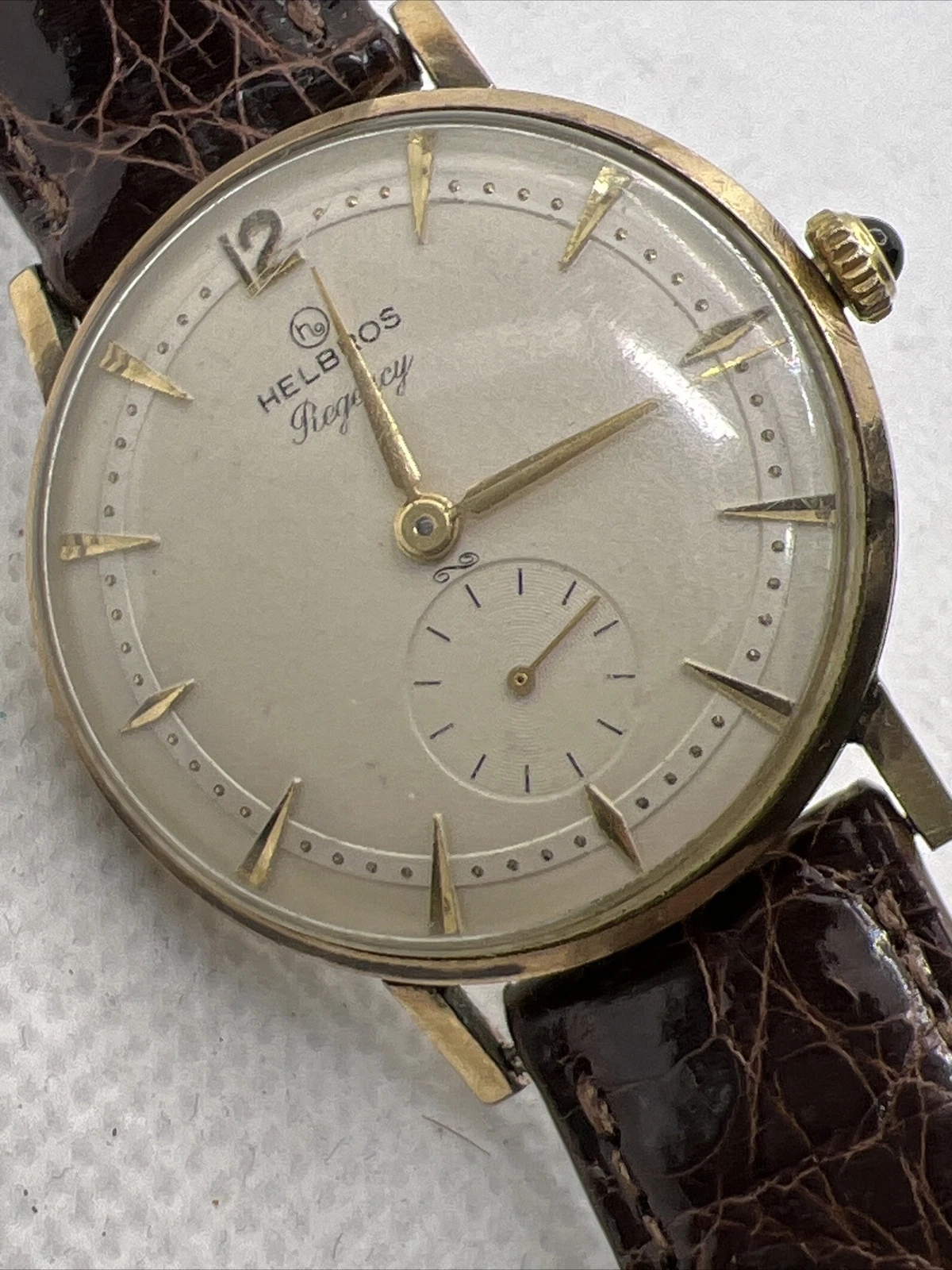 Vintage Helbros Regency Striped Dial Mechanical Gold Tone Watch Running