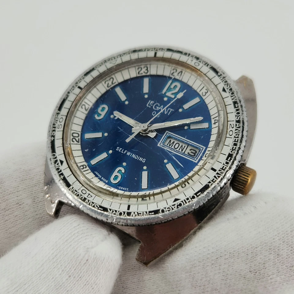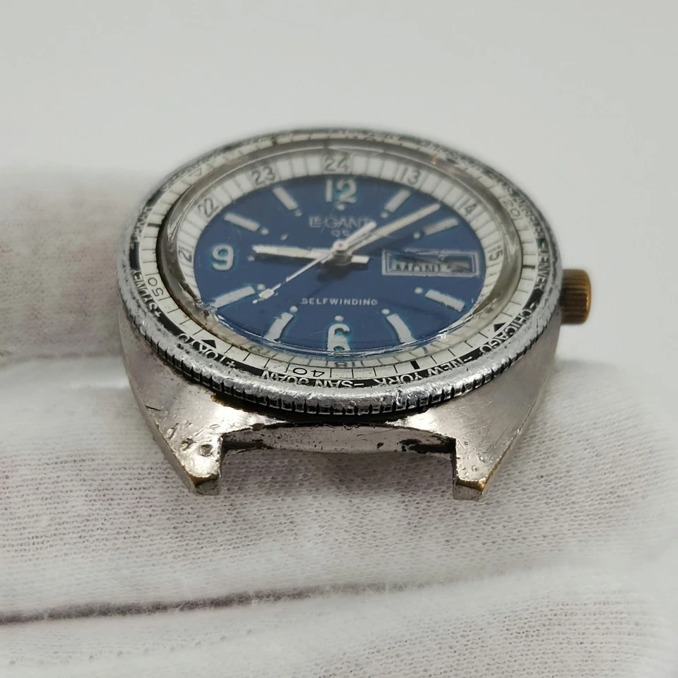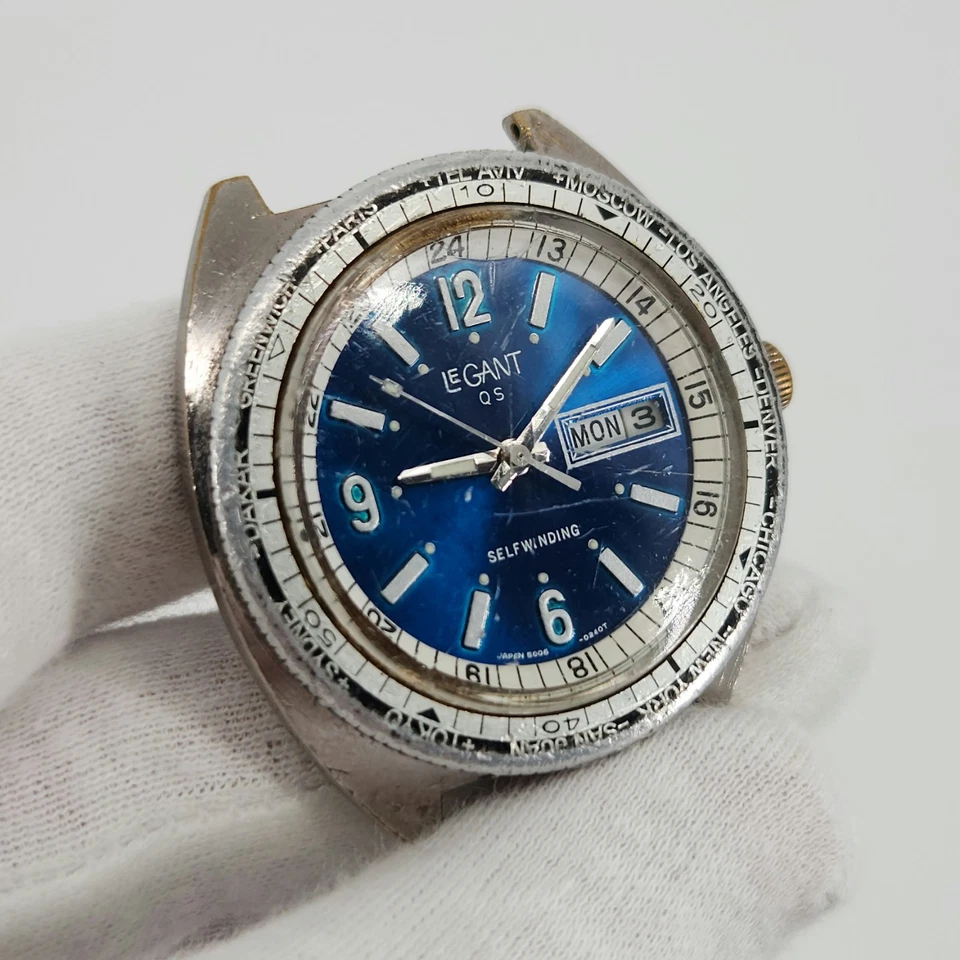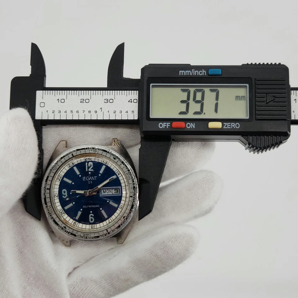 LeGant Men's Vintage Day-Date Silver Tone w/ Blue Dial Automatic Watch