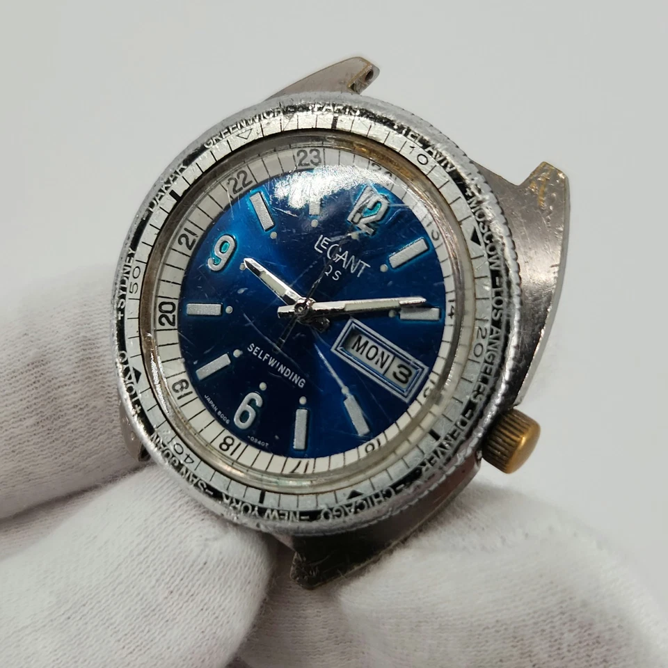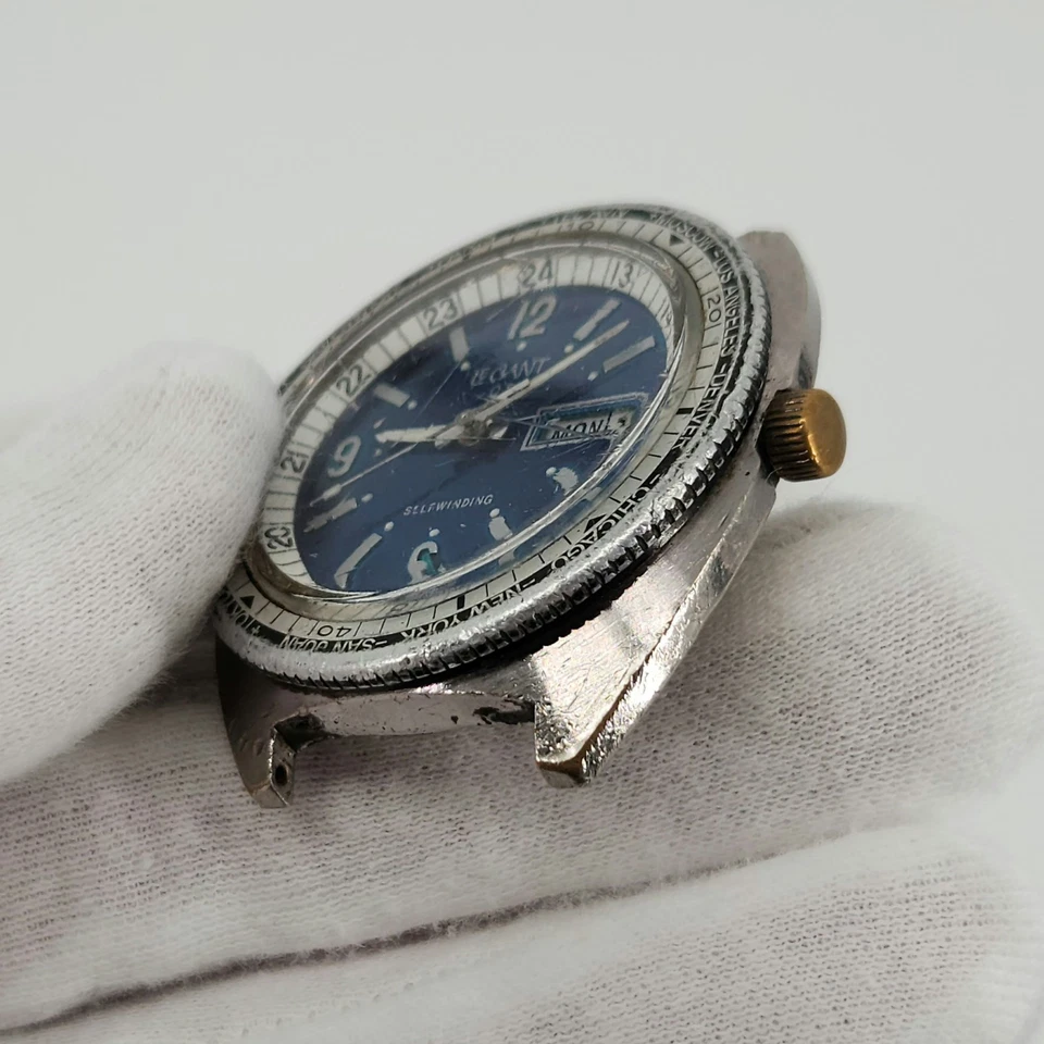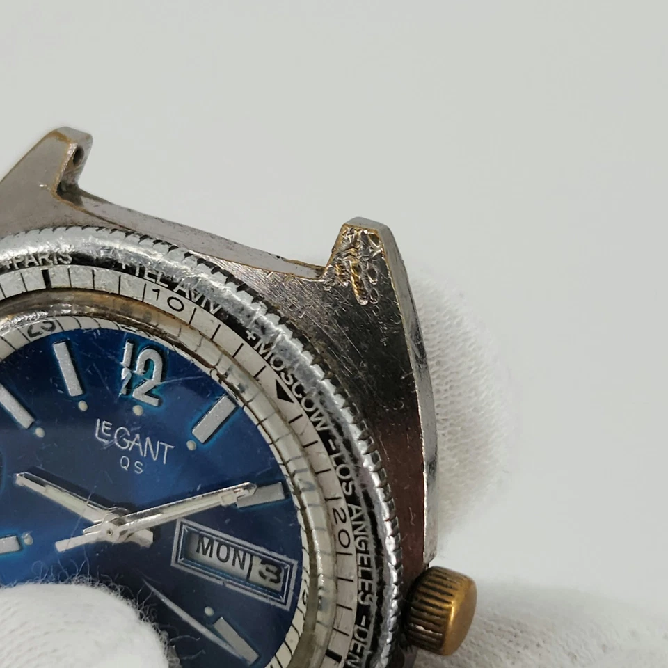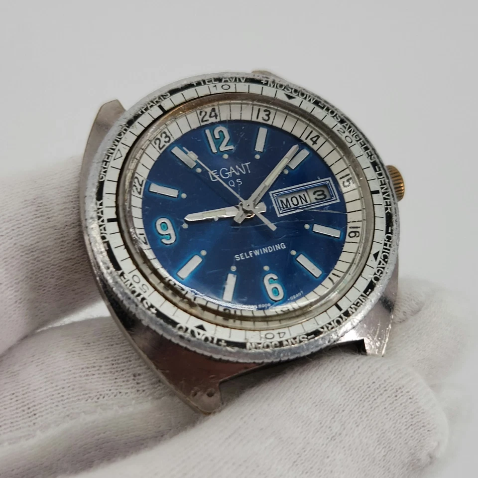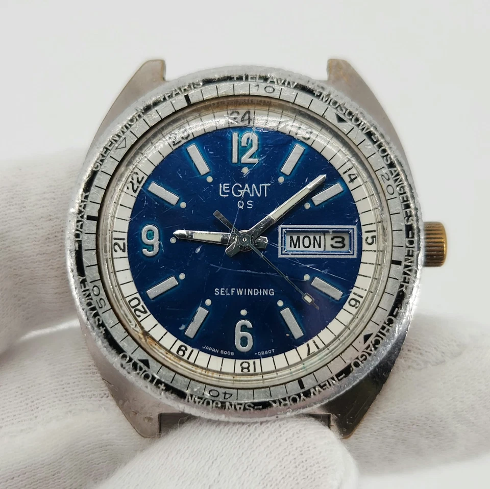 LeGant Men's Vintage Day-Date Silver Tone w/ Blue Dial Automatic Watch