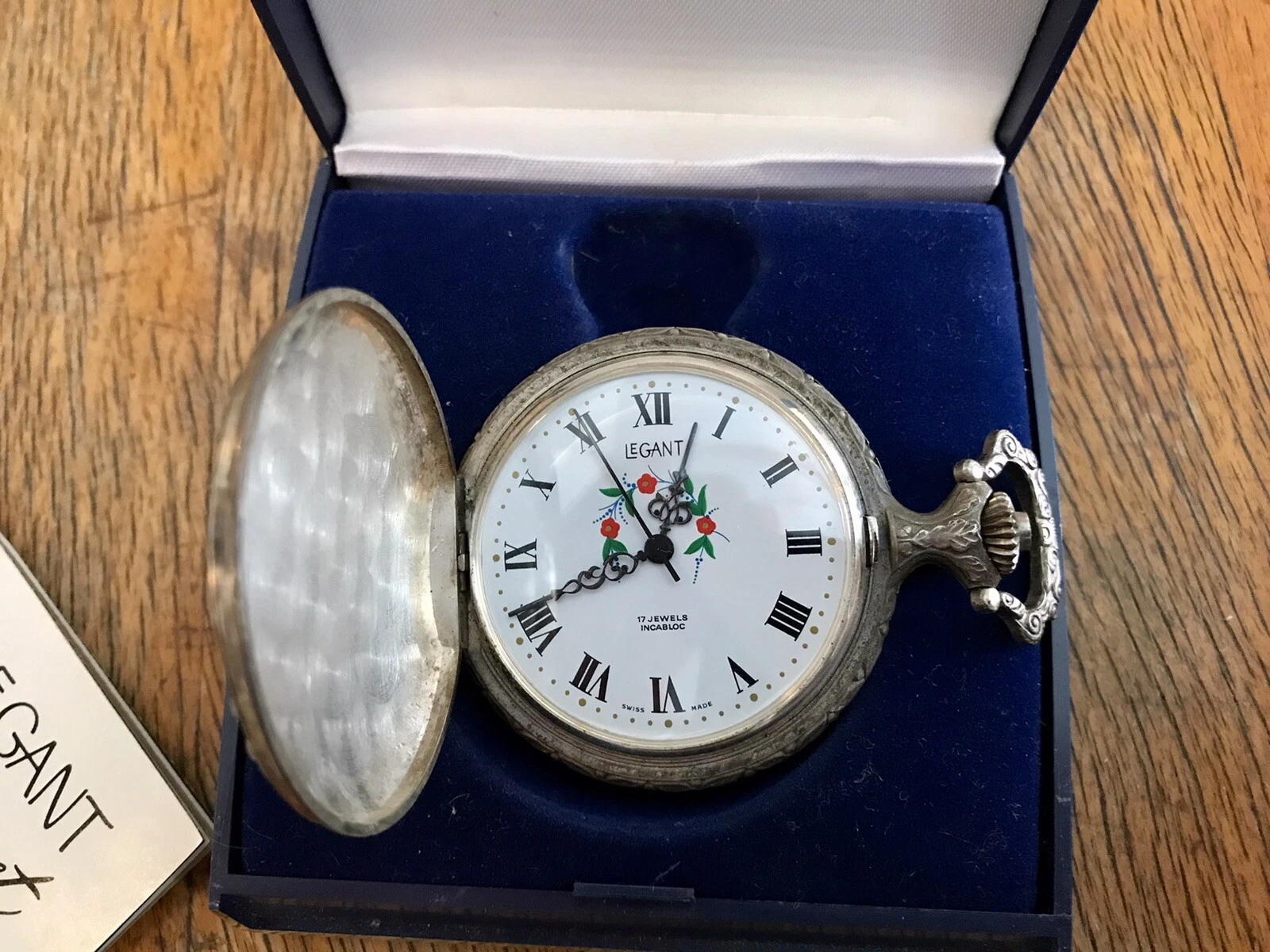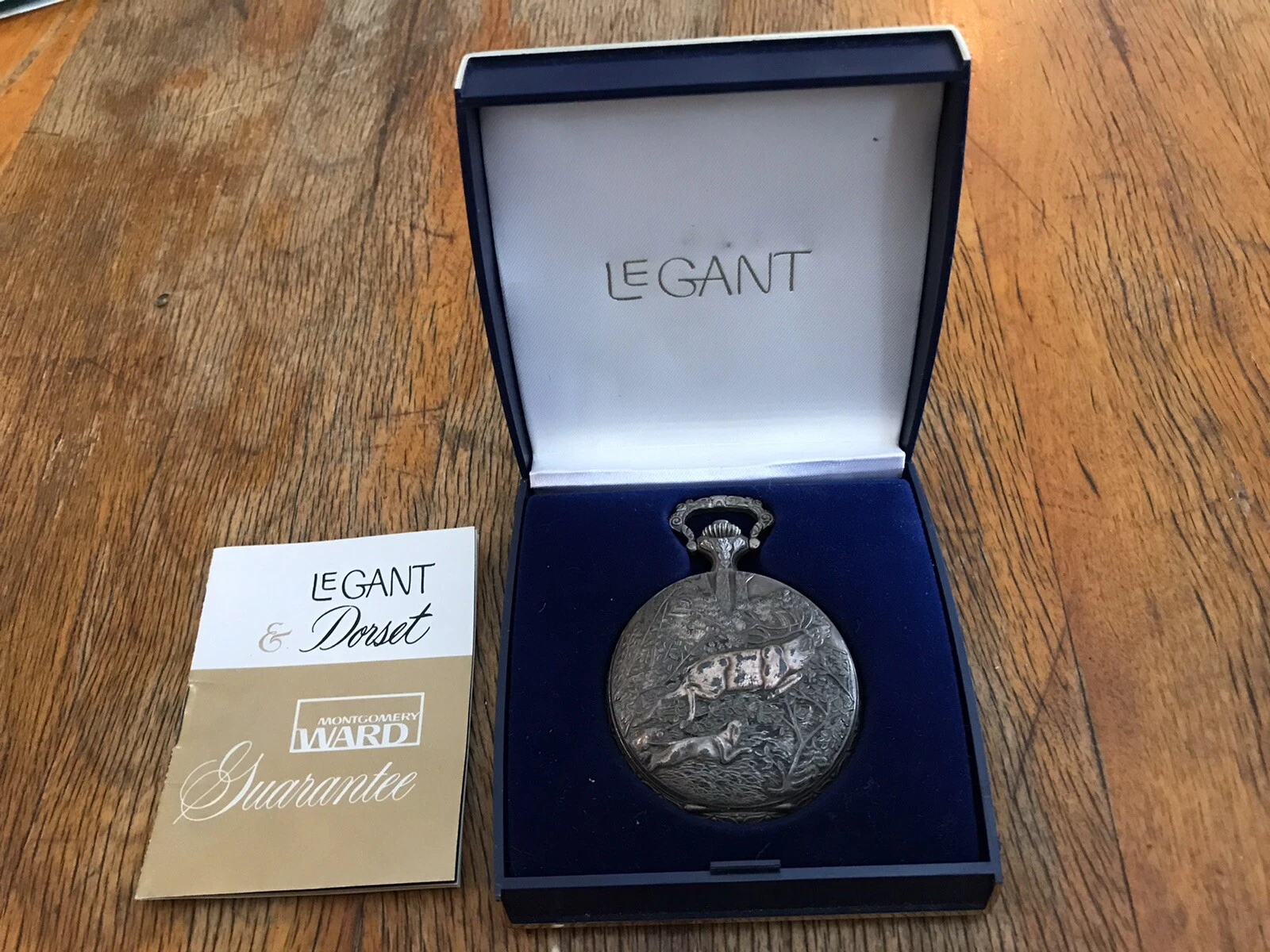 MONTGOMERY WARD LeGANT INCABLOC SWISS POCKET 17 JEWEL WATCH W/CASE and MANUAL!