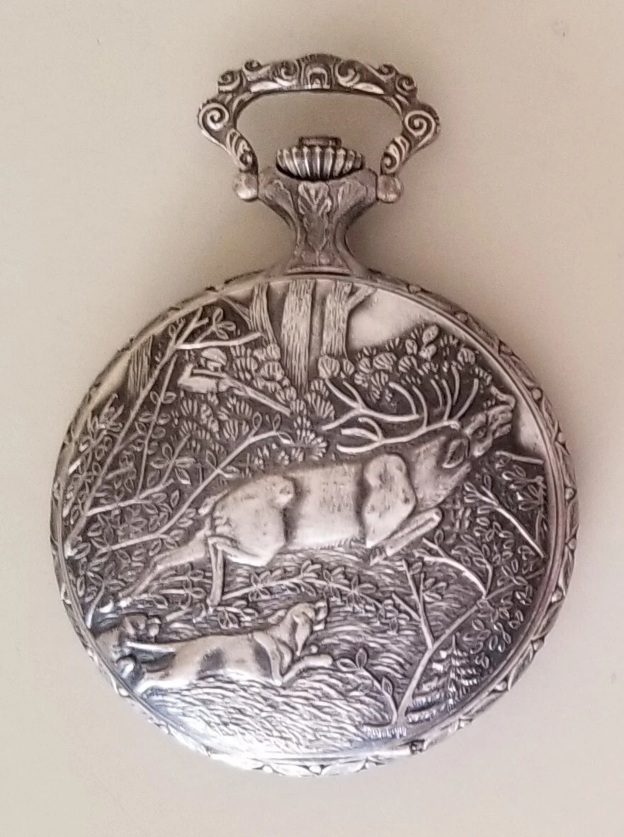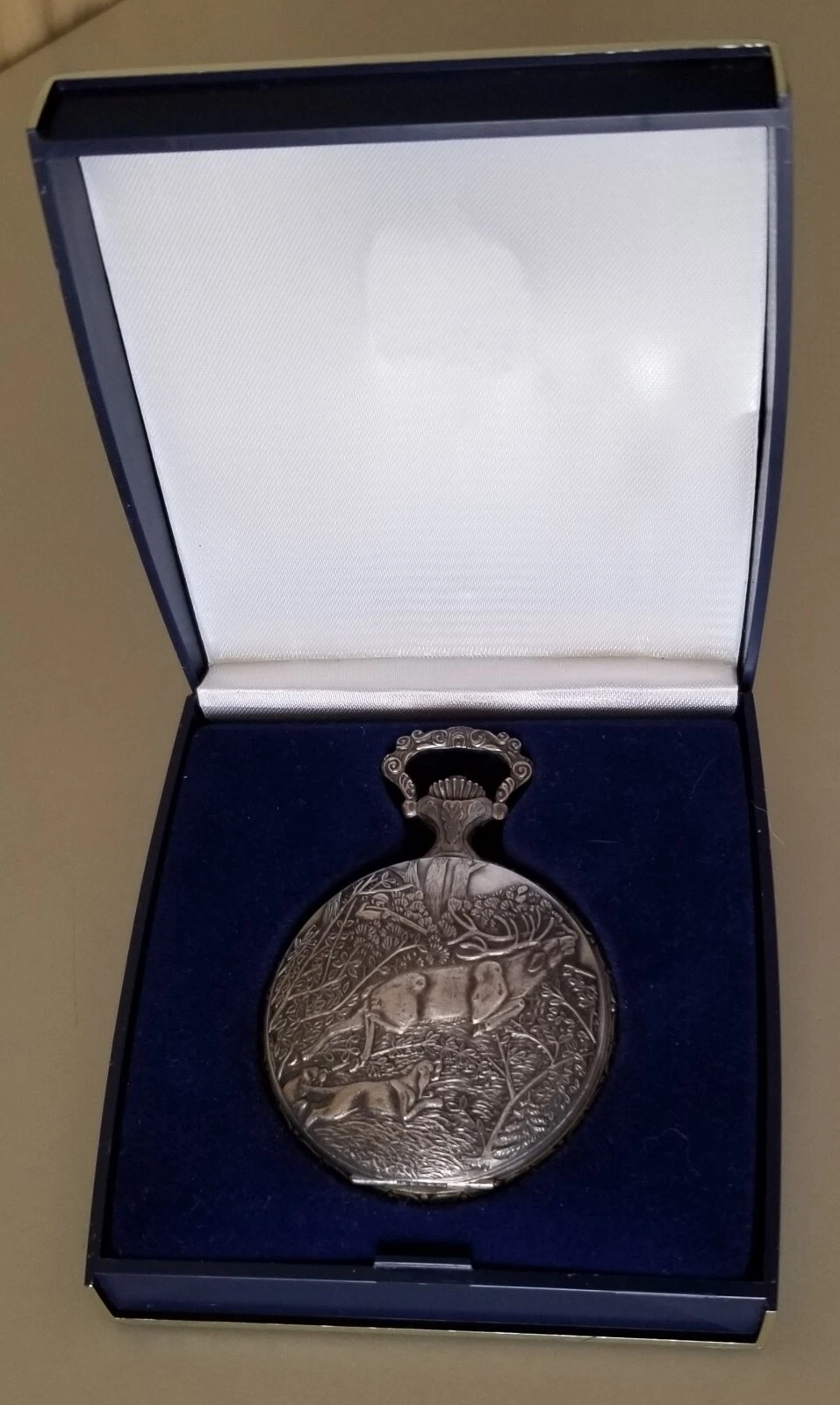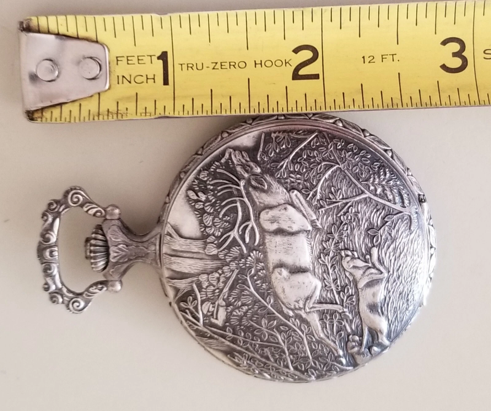 Vtg LeGant Hunter Themed 17 Jewels Incabloc w/Case Pocket Watch. [B5 215]