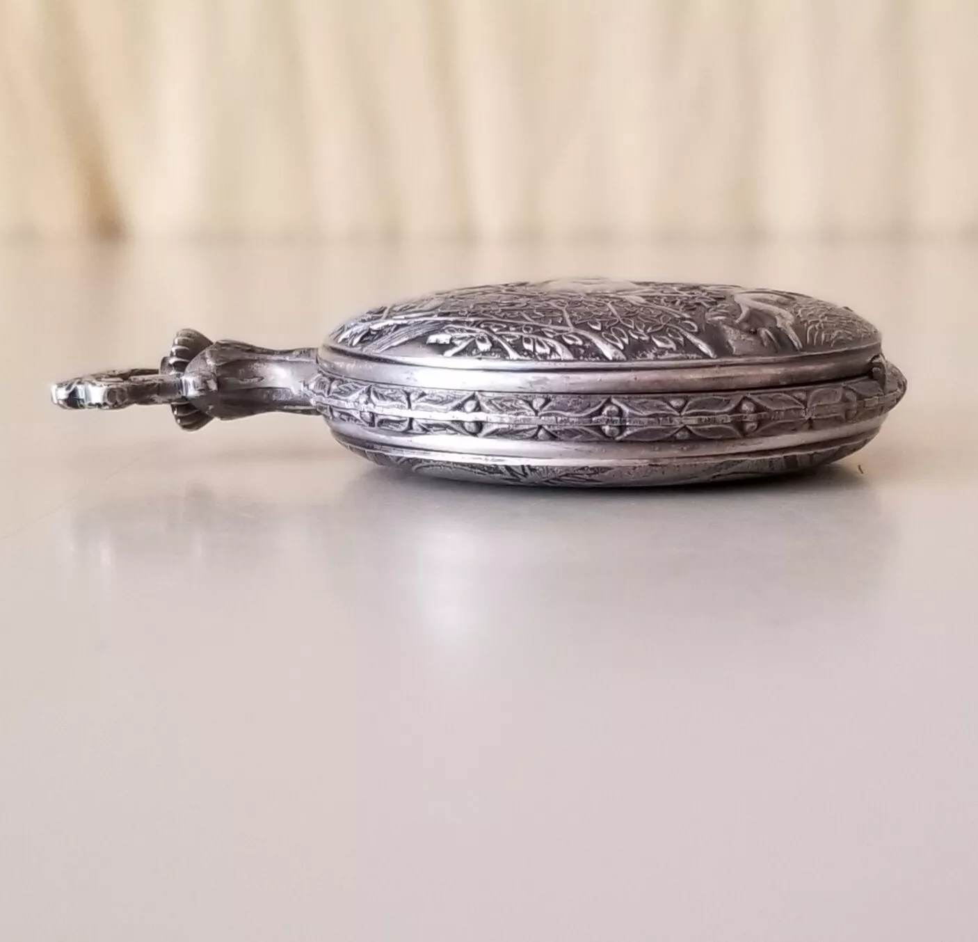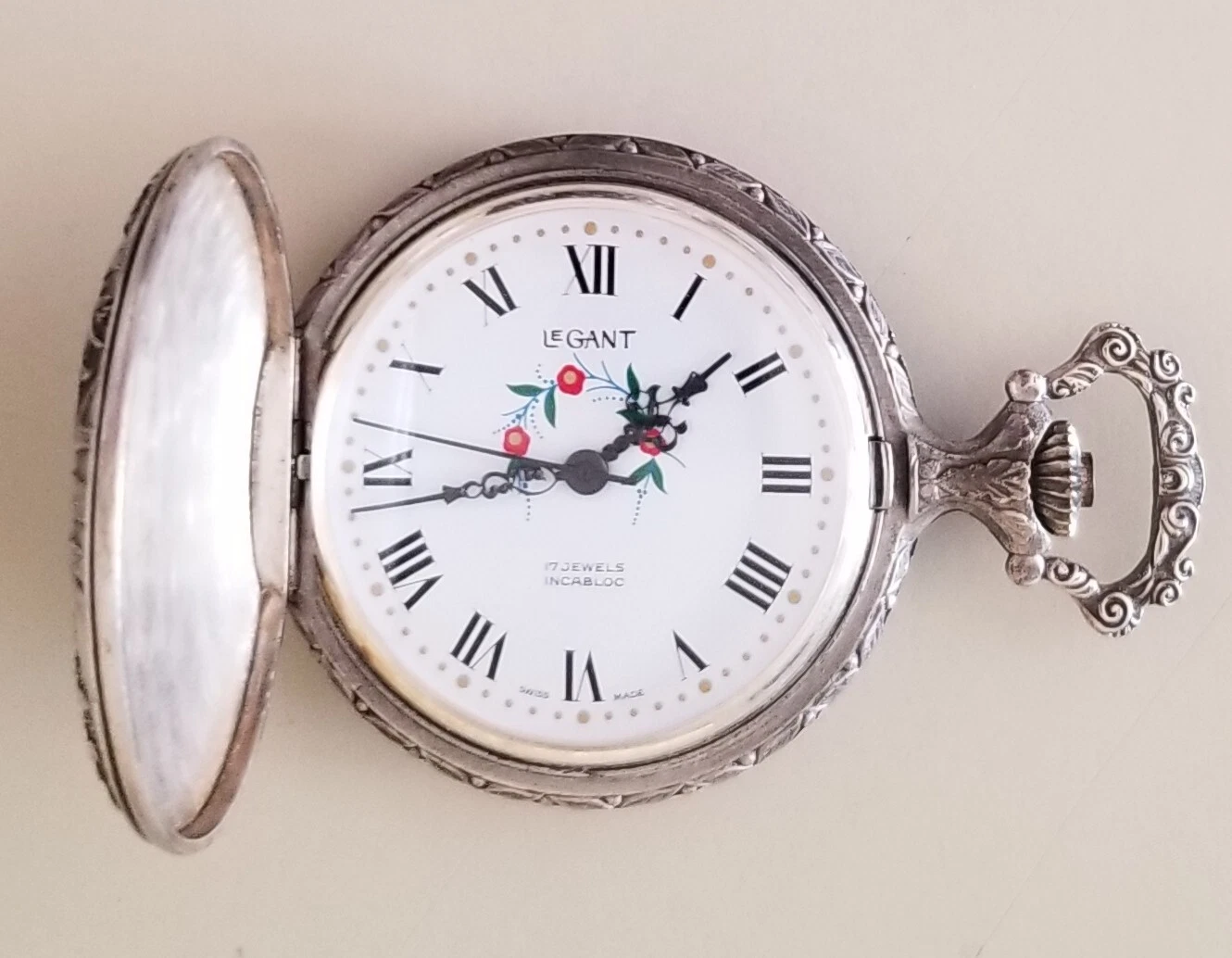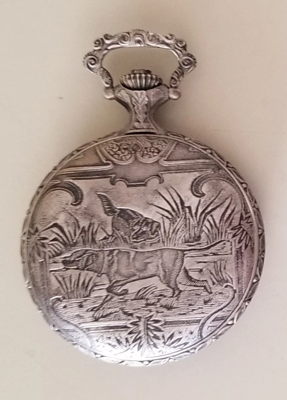 Vtg LeGant Hunter Themed 17 Jewels Incabloc w/Case Pocket Watch. [B5 215]