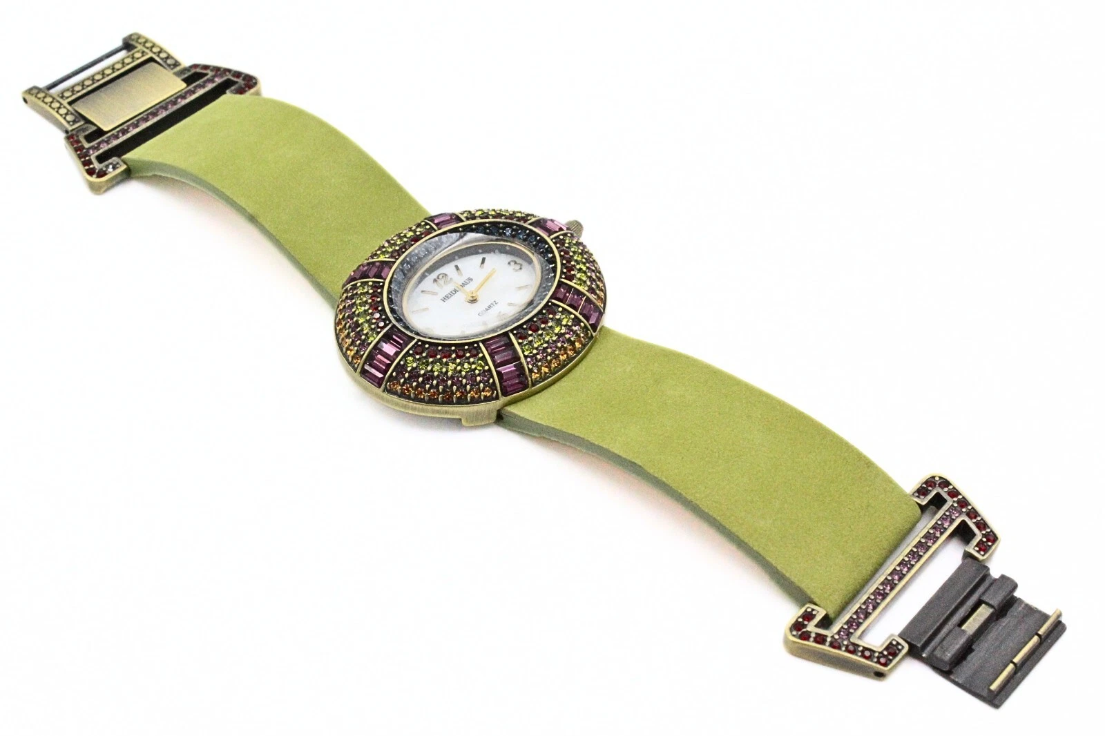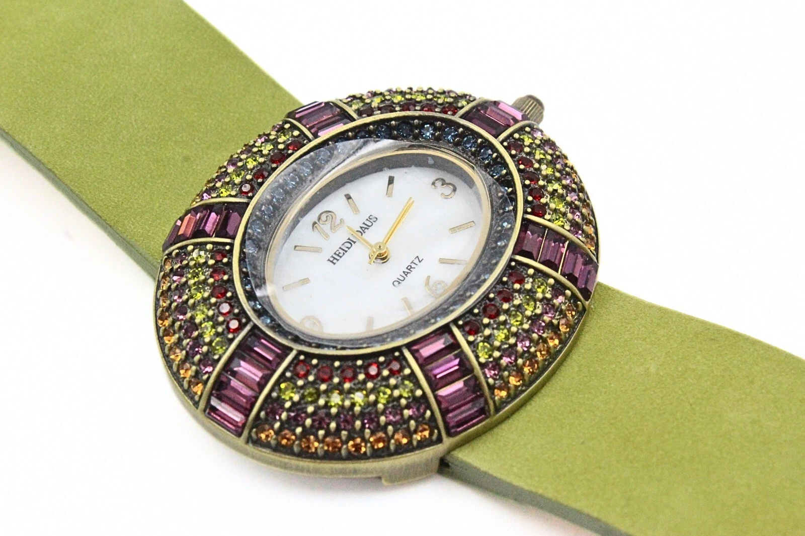 Marvelous Heidi Daus Green Multicolor Purple Encrusted Cocktail Watch
