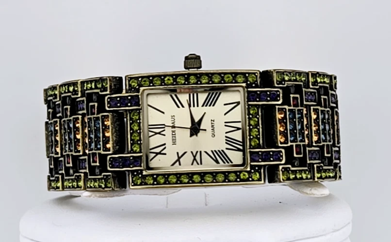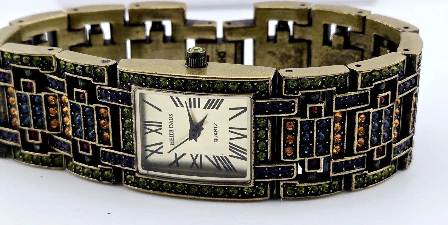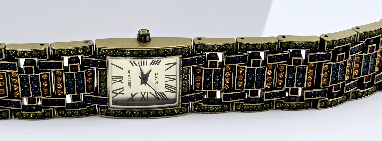 Heidi Daus Crystal Rhinestone Quartz Bracelet Watch New Battery WORKS GREAT