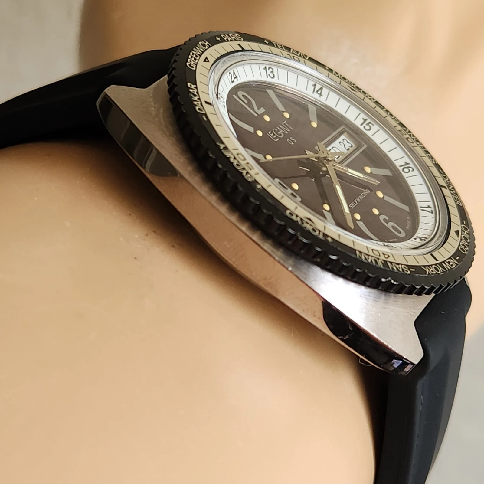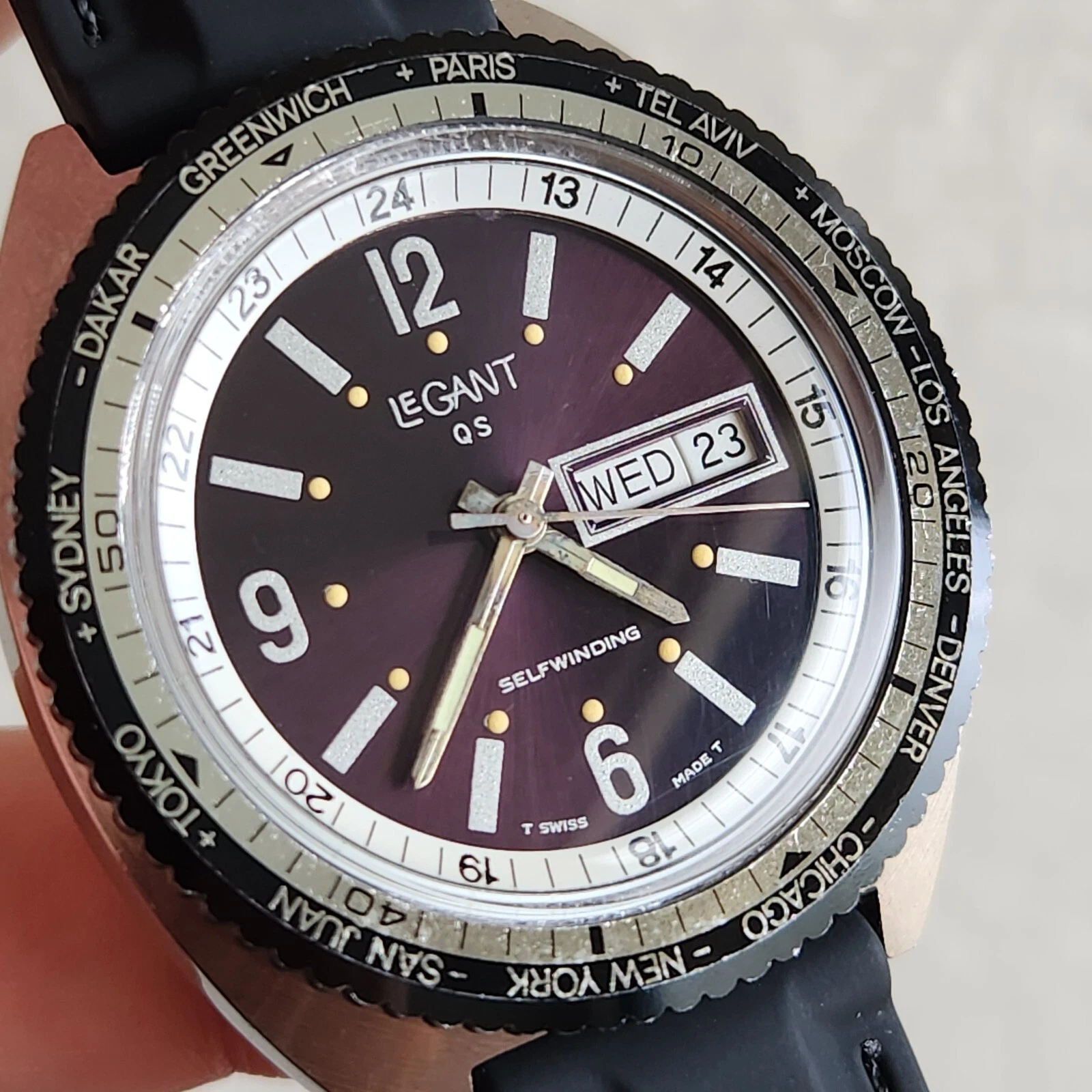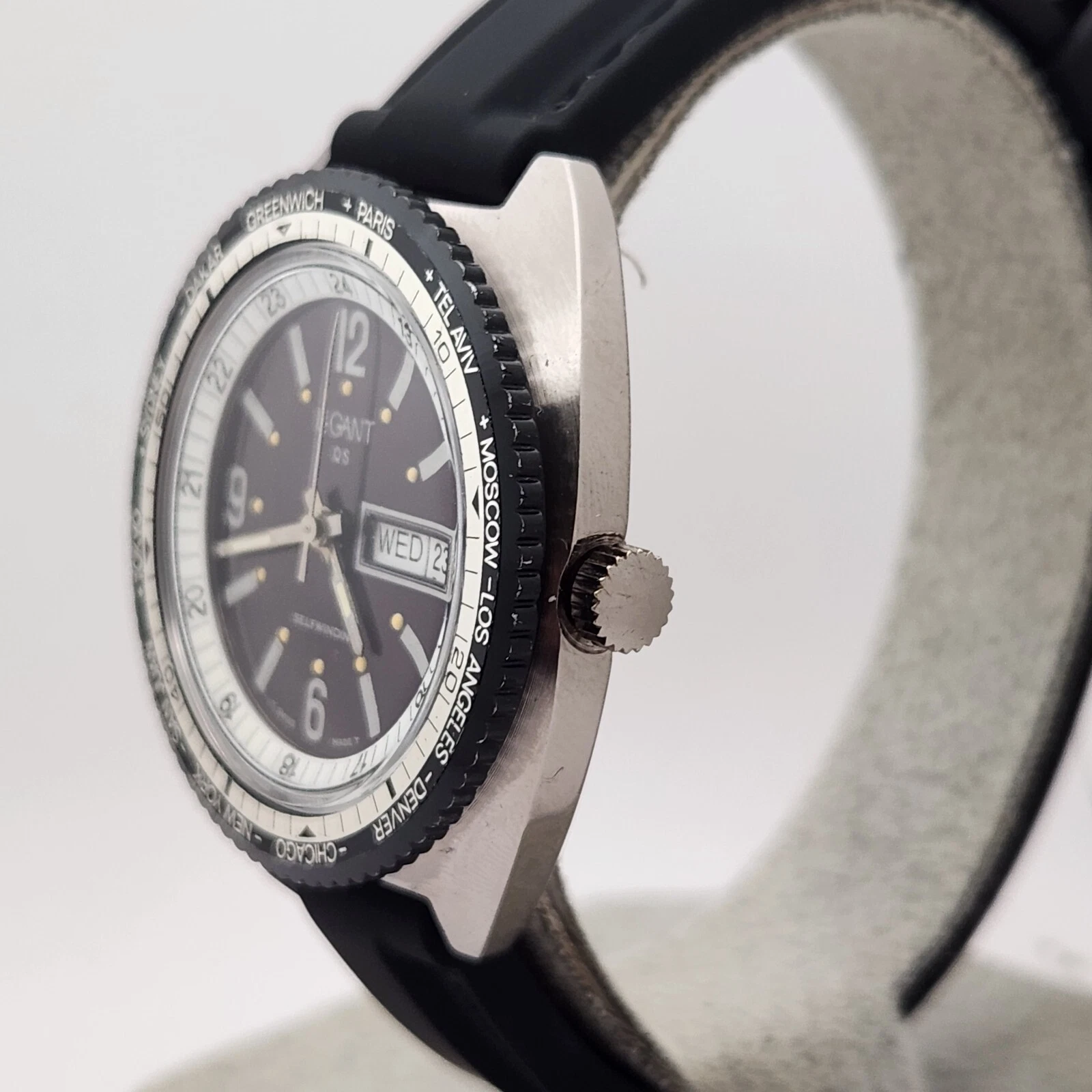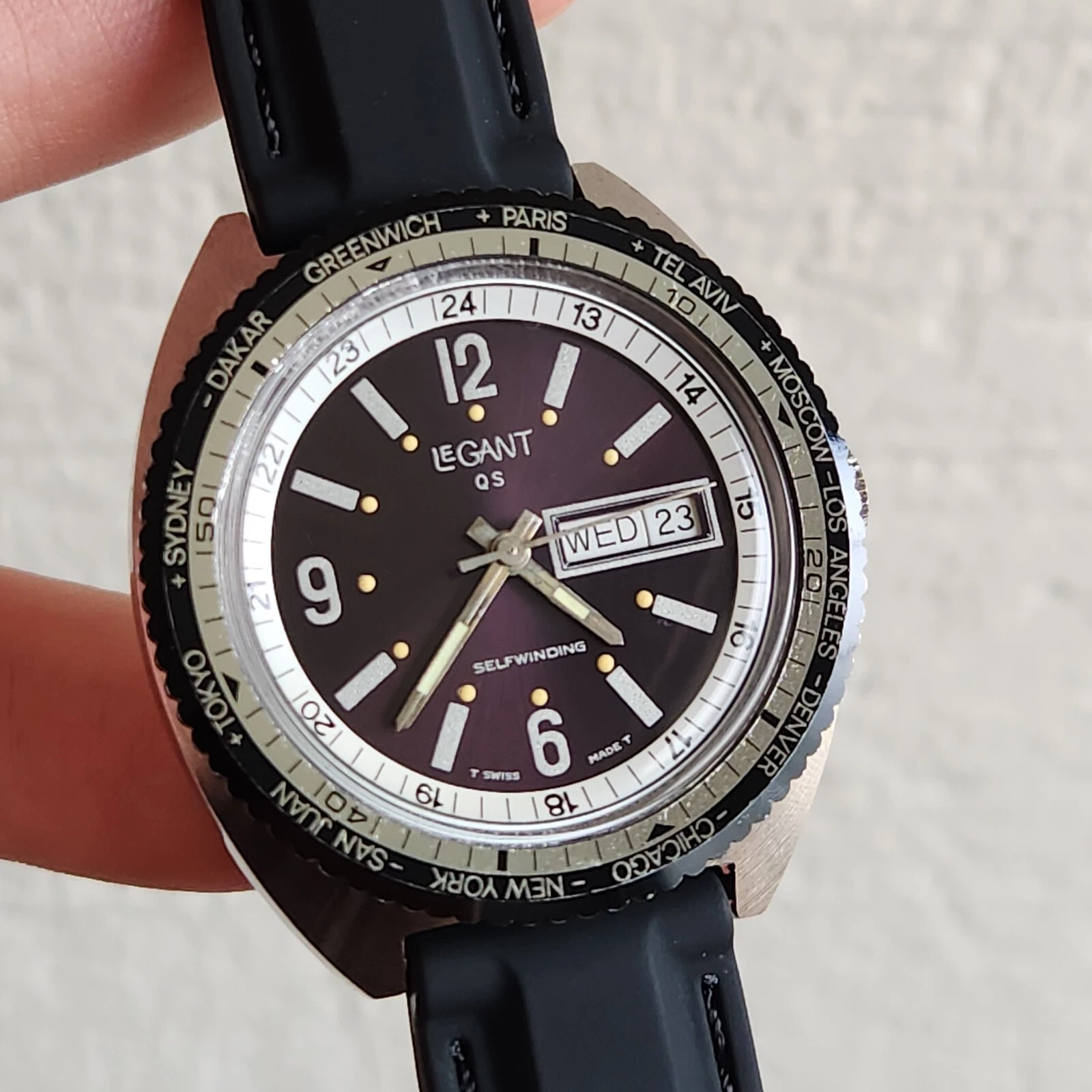 Vintage LeGANT GMT men's automatic watch WORLD TIME Ronda 239 swiss made 1970s