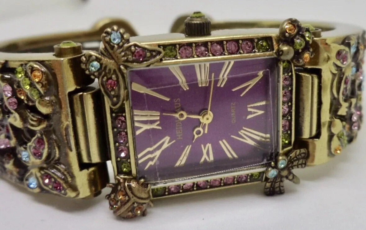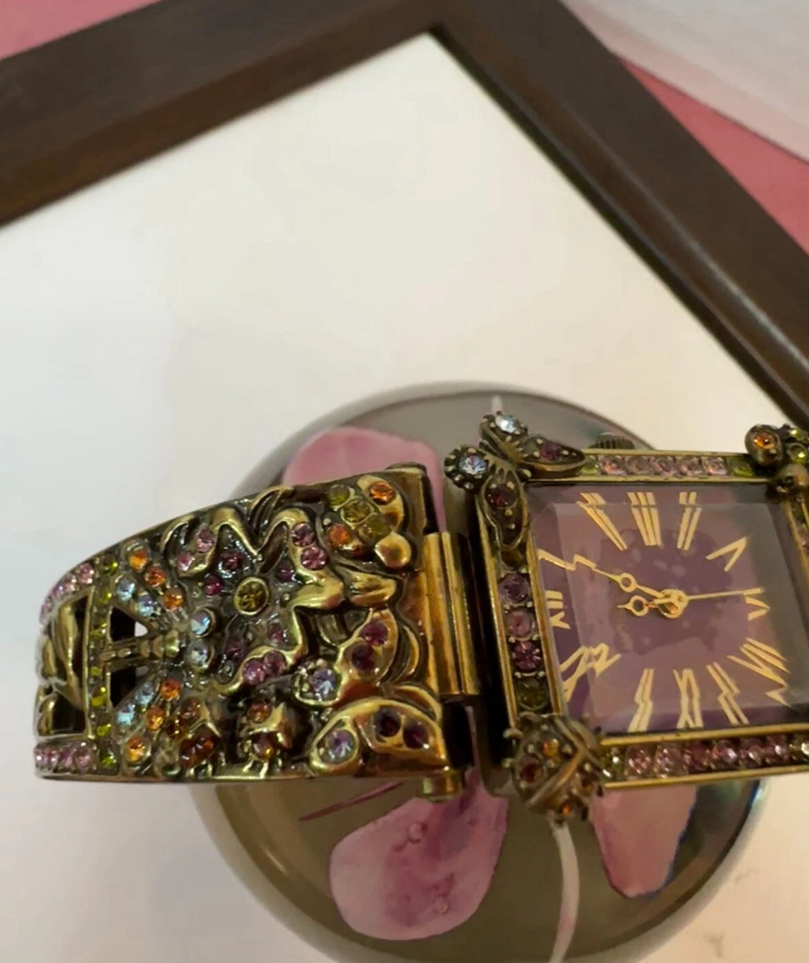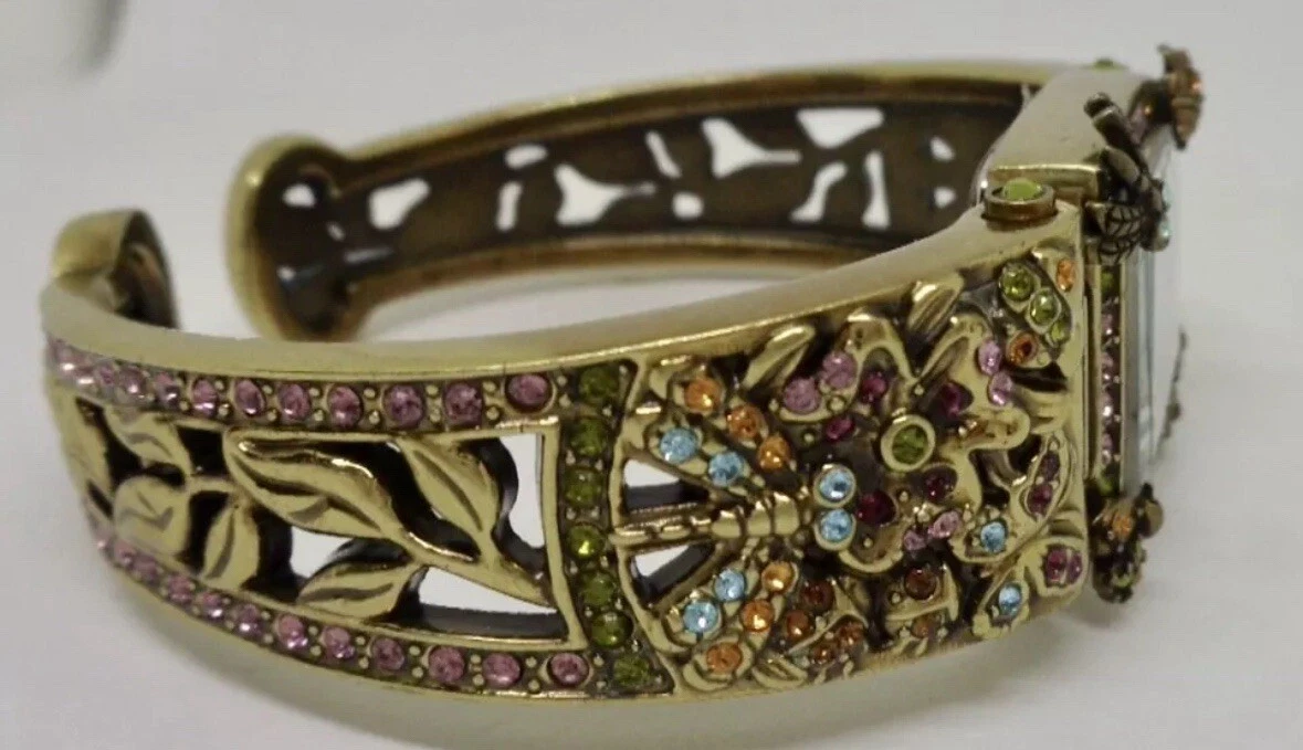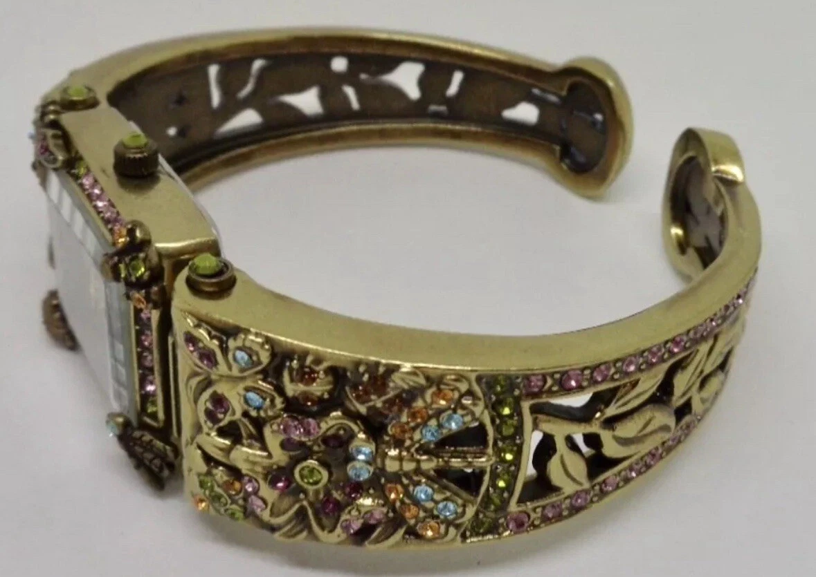 Vintage Inspired Watch Bronze Colorful Crystal Butterfly Watch Cuff Style
