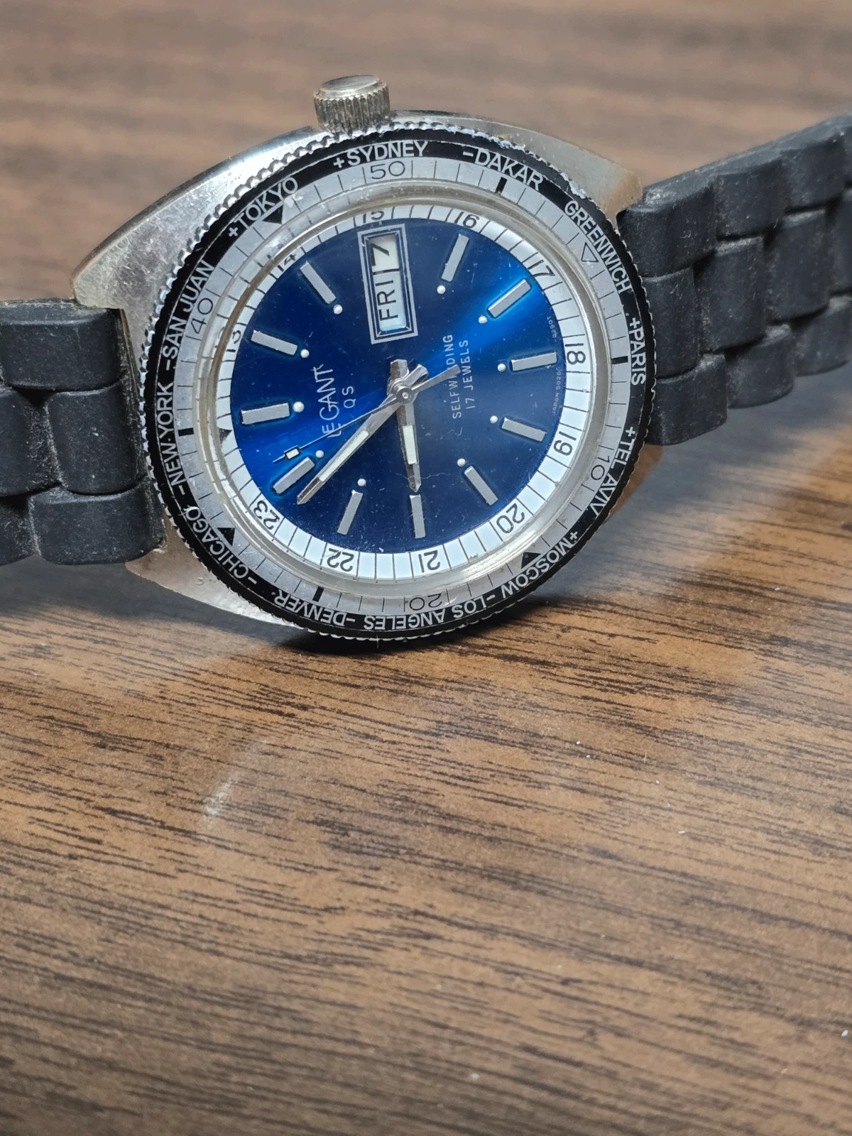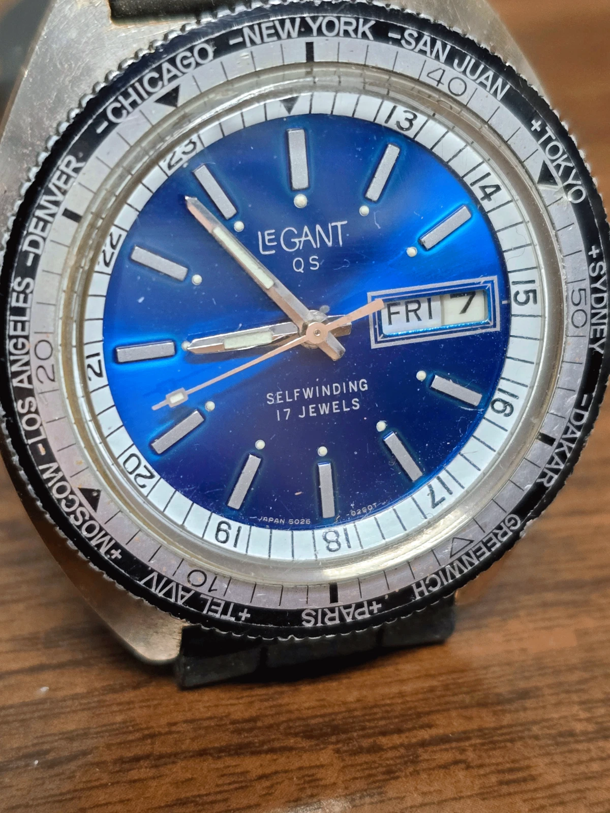 Vintage LeGant World Timer Watch 17 Jewel Automatic Day-Date model Serviced