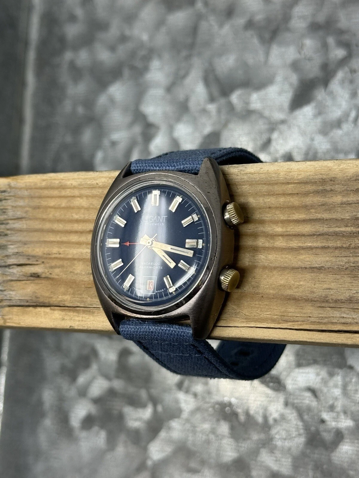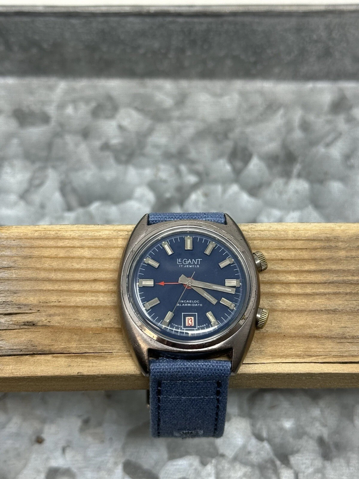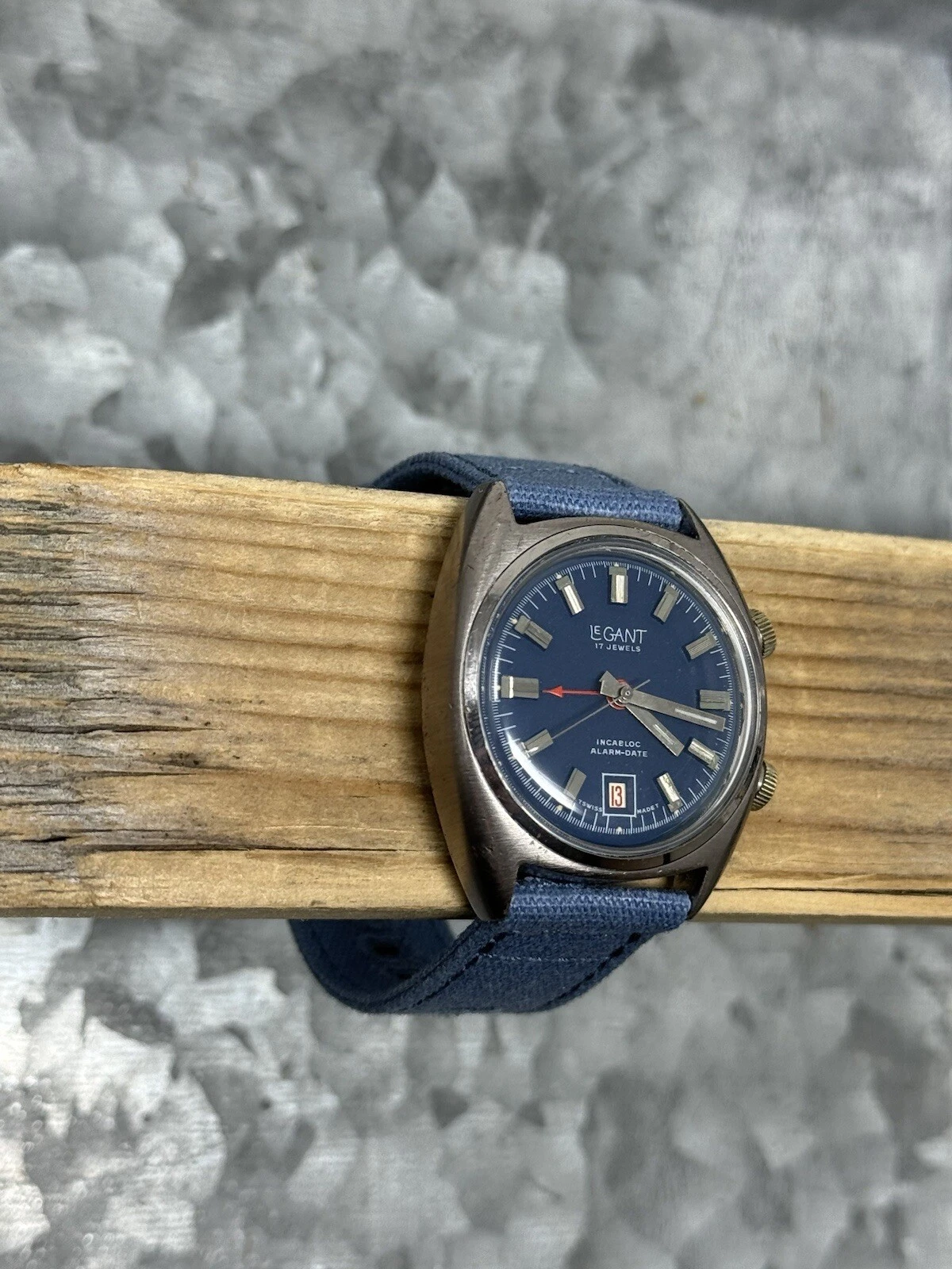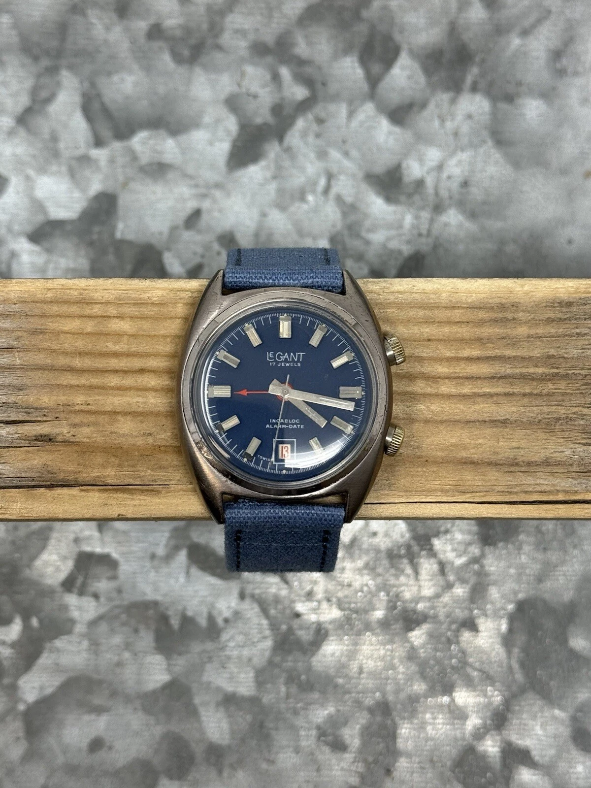 Vintage LE GANT Blue Dial Alarm Mechanical Watch, Tested and Working, Clean