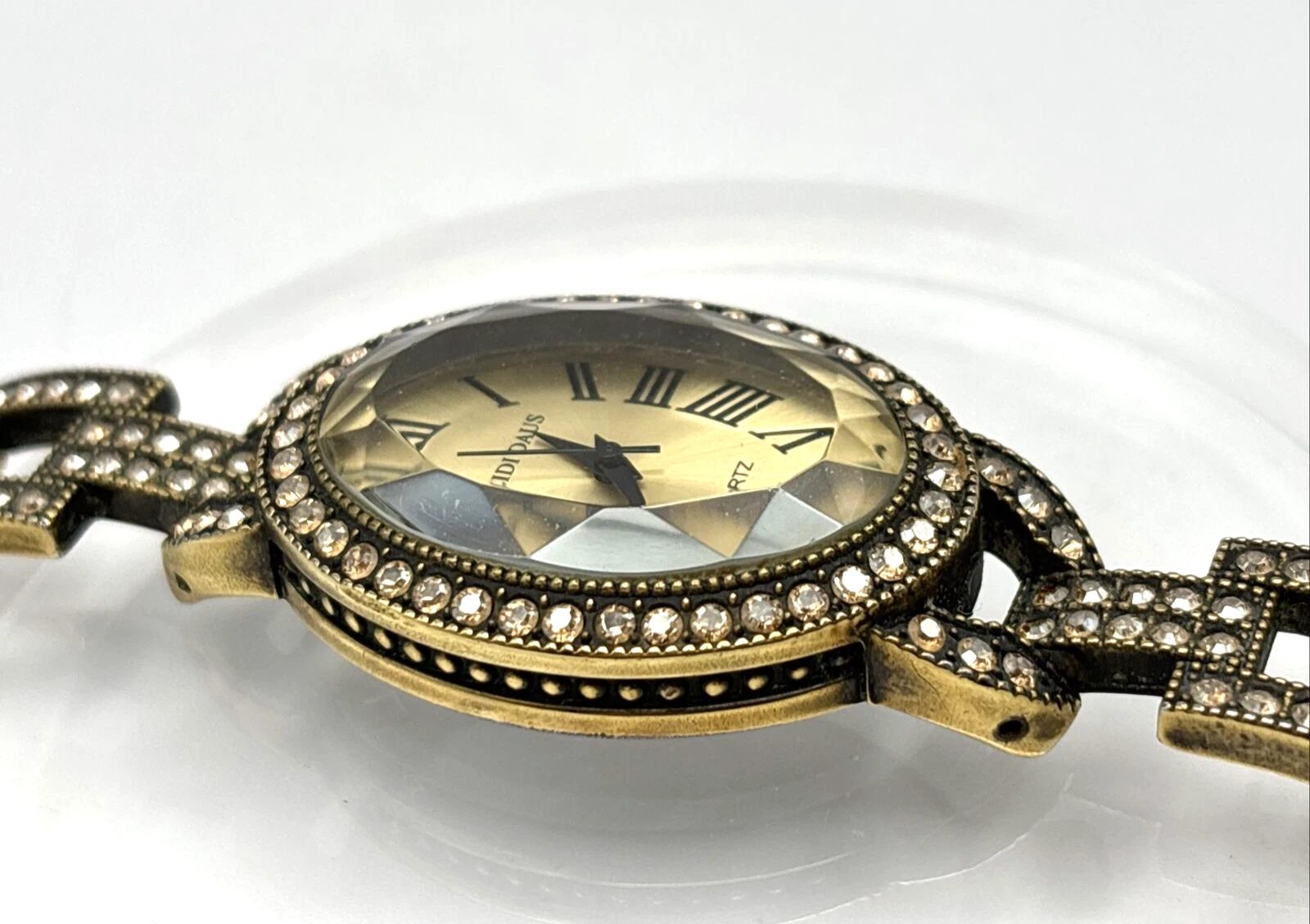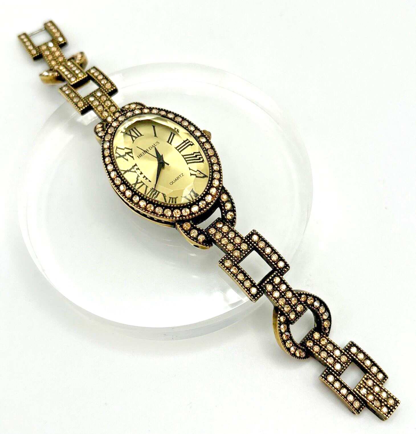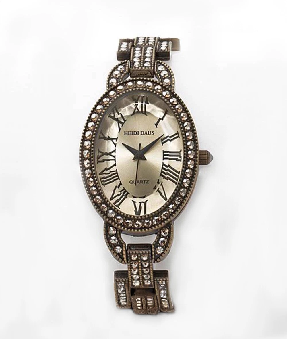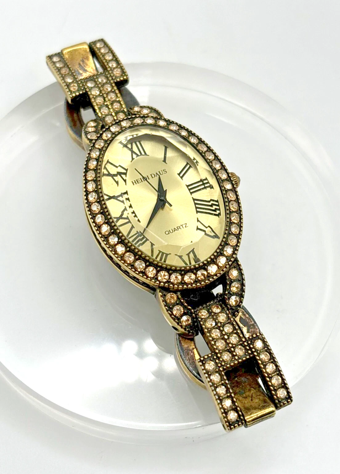 HEIDI DAUS "Classic Elegance" Vintage Bronzetone Crystal Linked Watch - Small