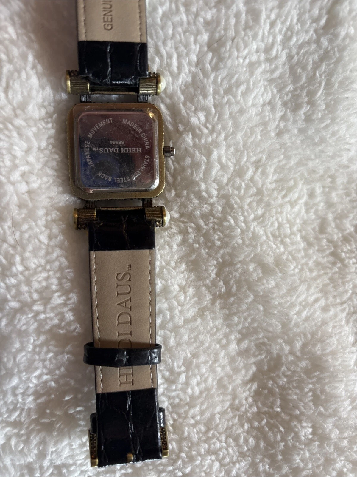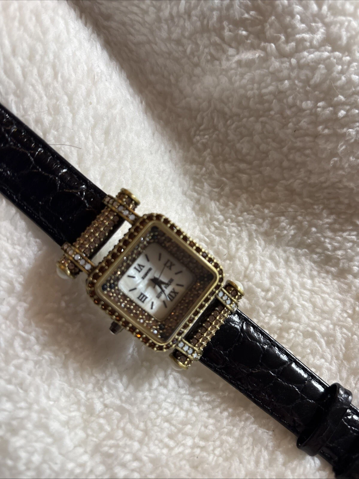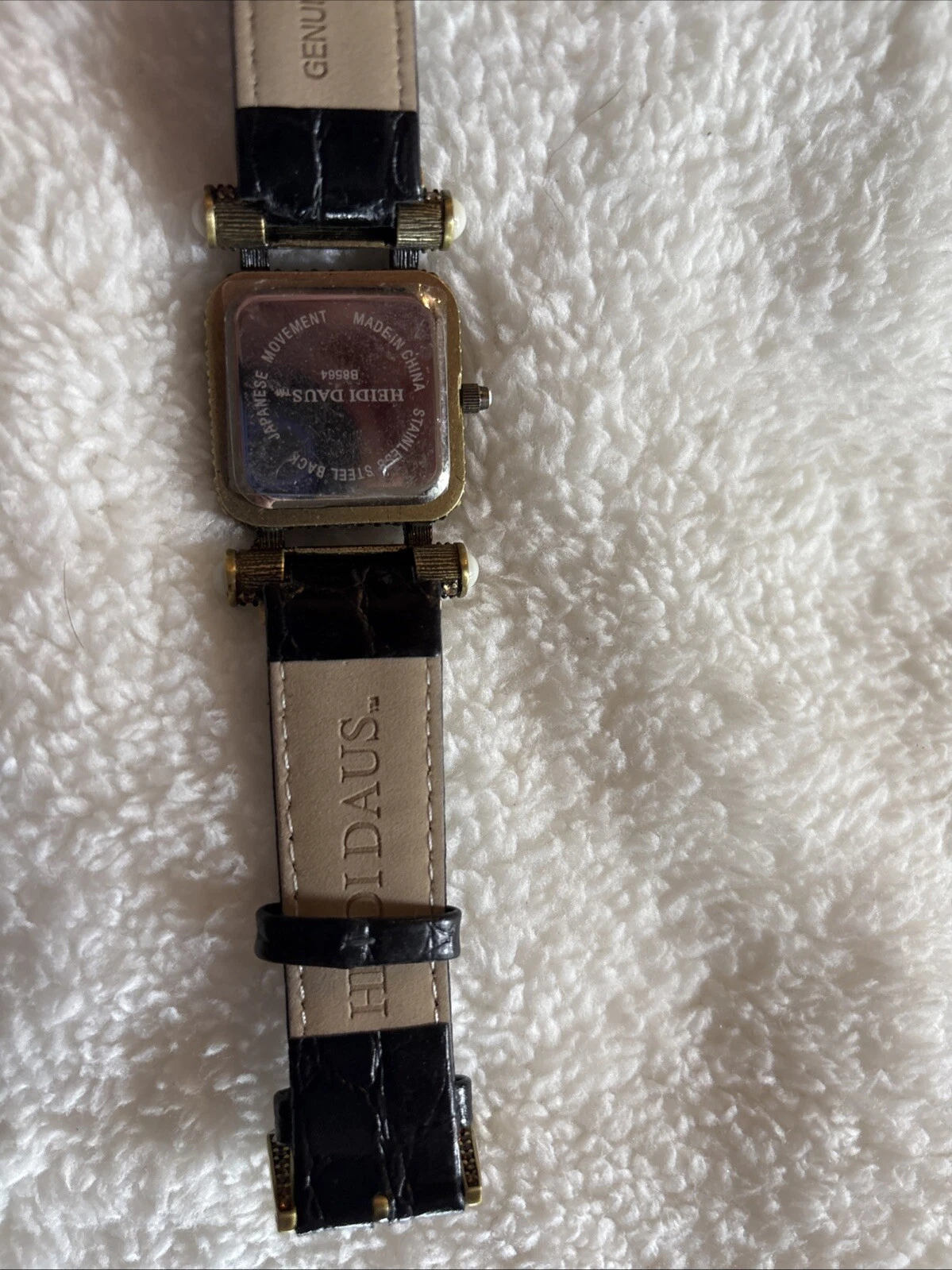Heidi Daus "Timeless Beauty" Pave' Bezel Black Leather Strap Watch