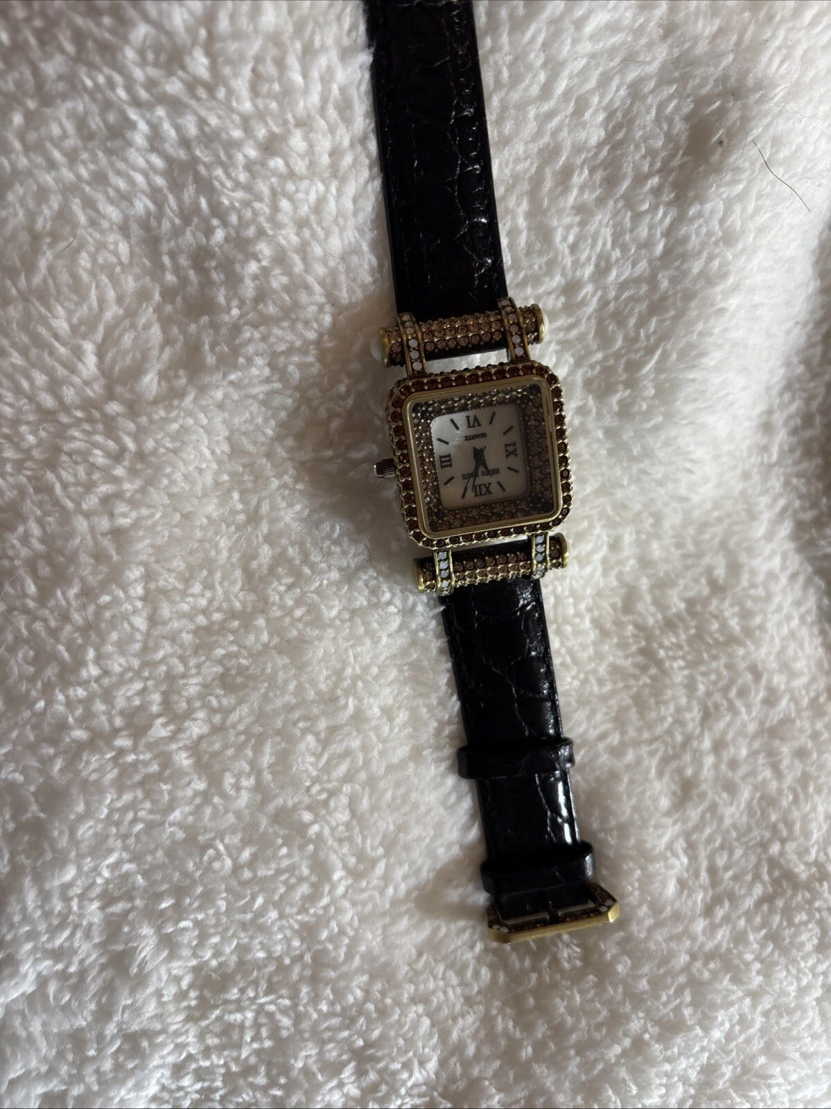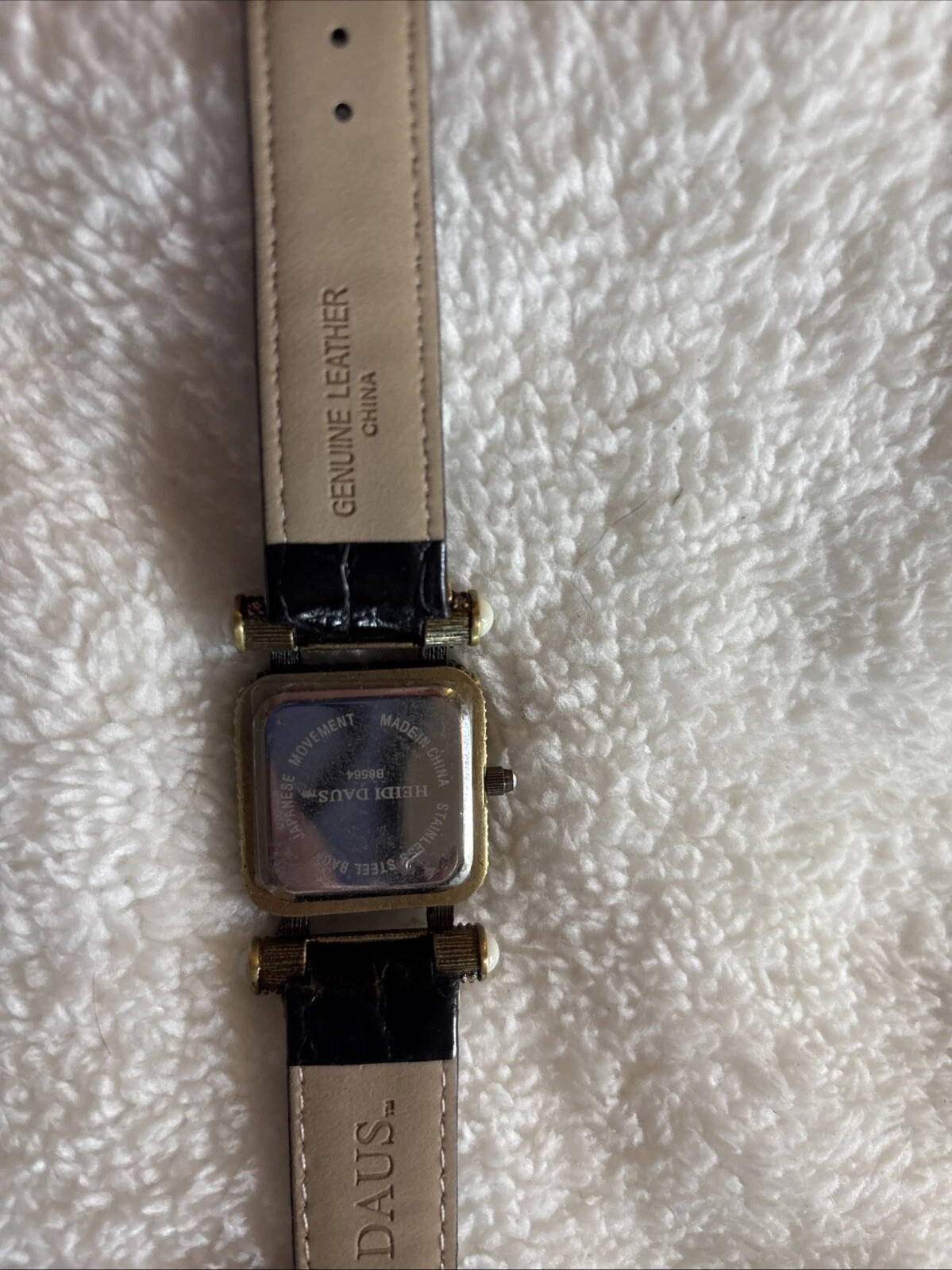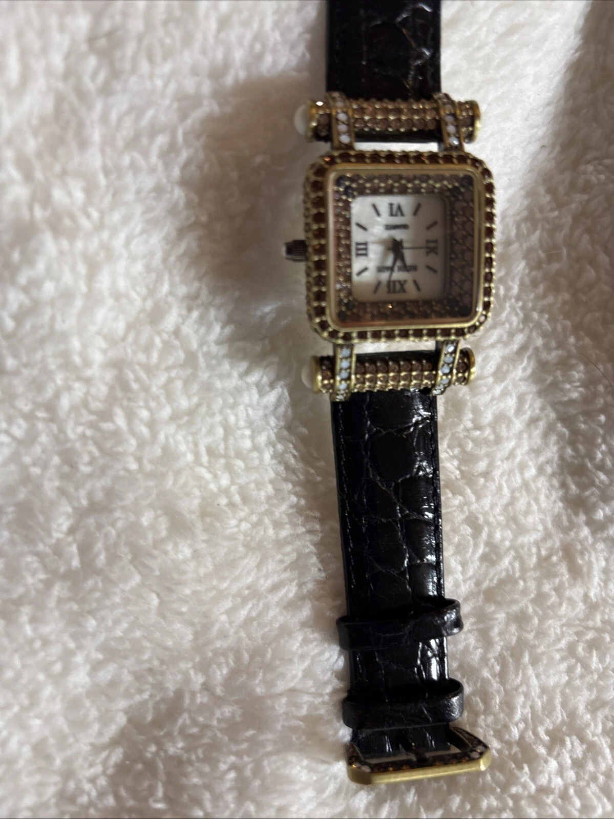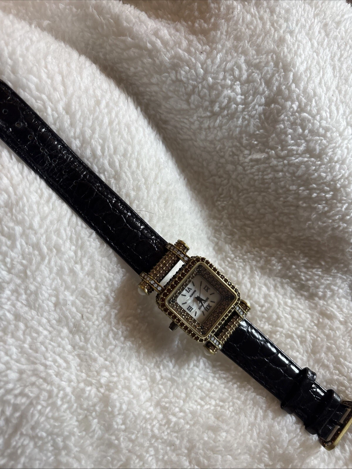 Heidi Daus "Timeless Beauty" Pave' Bezel Black Leather Strap Watch