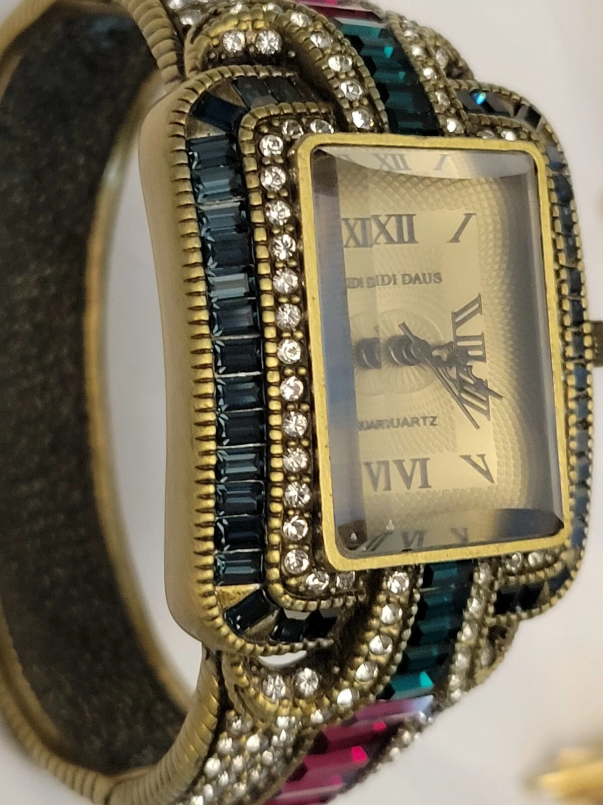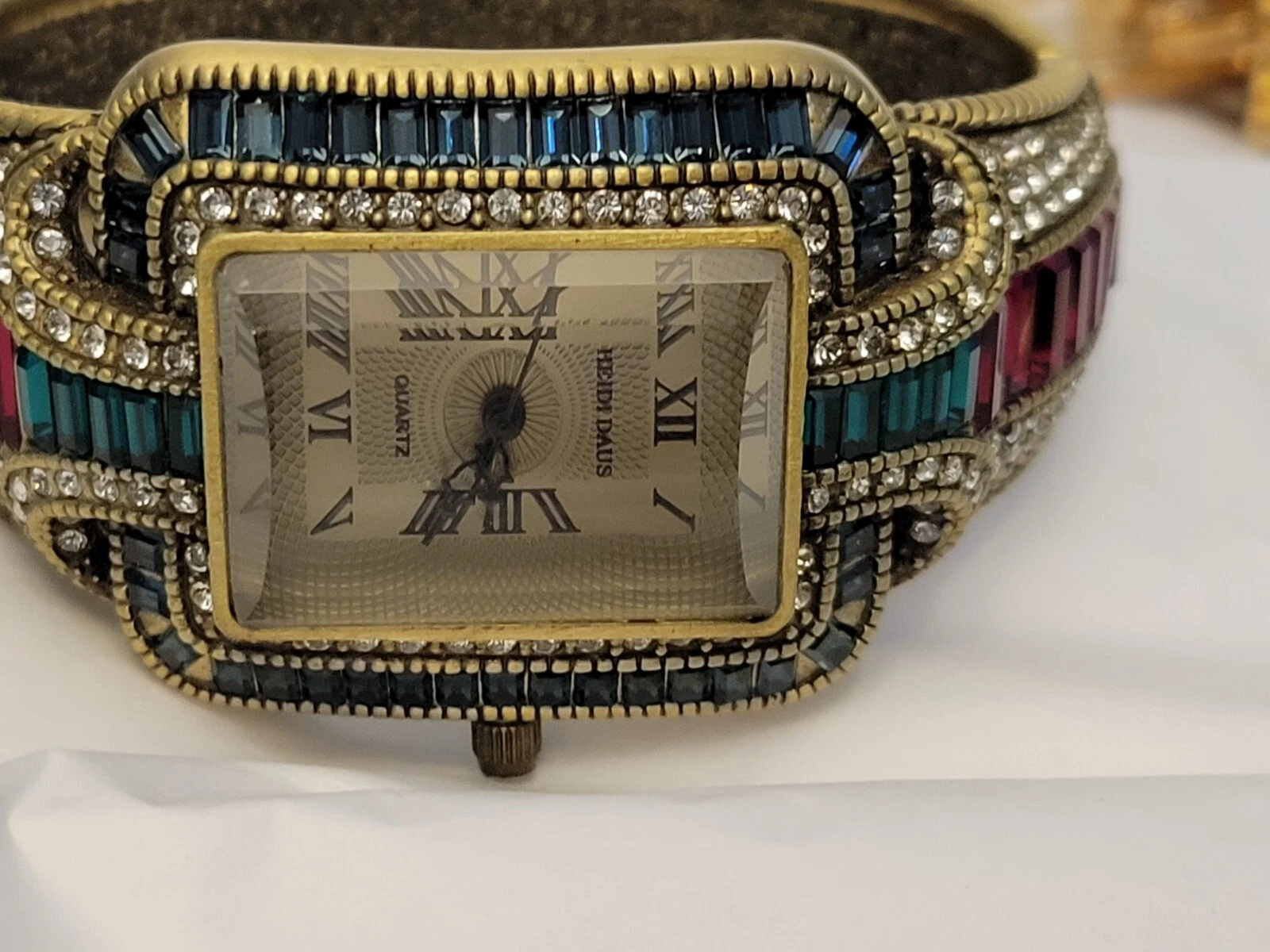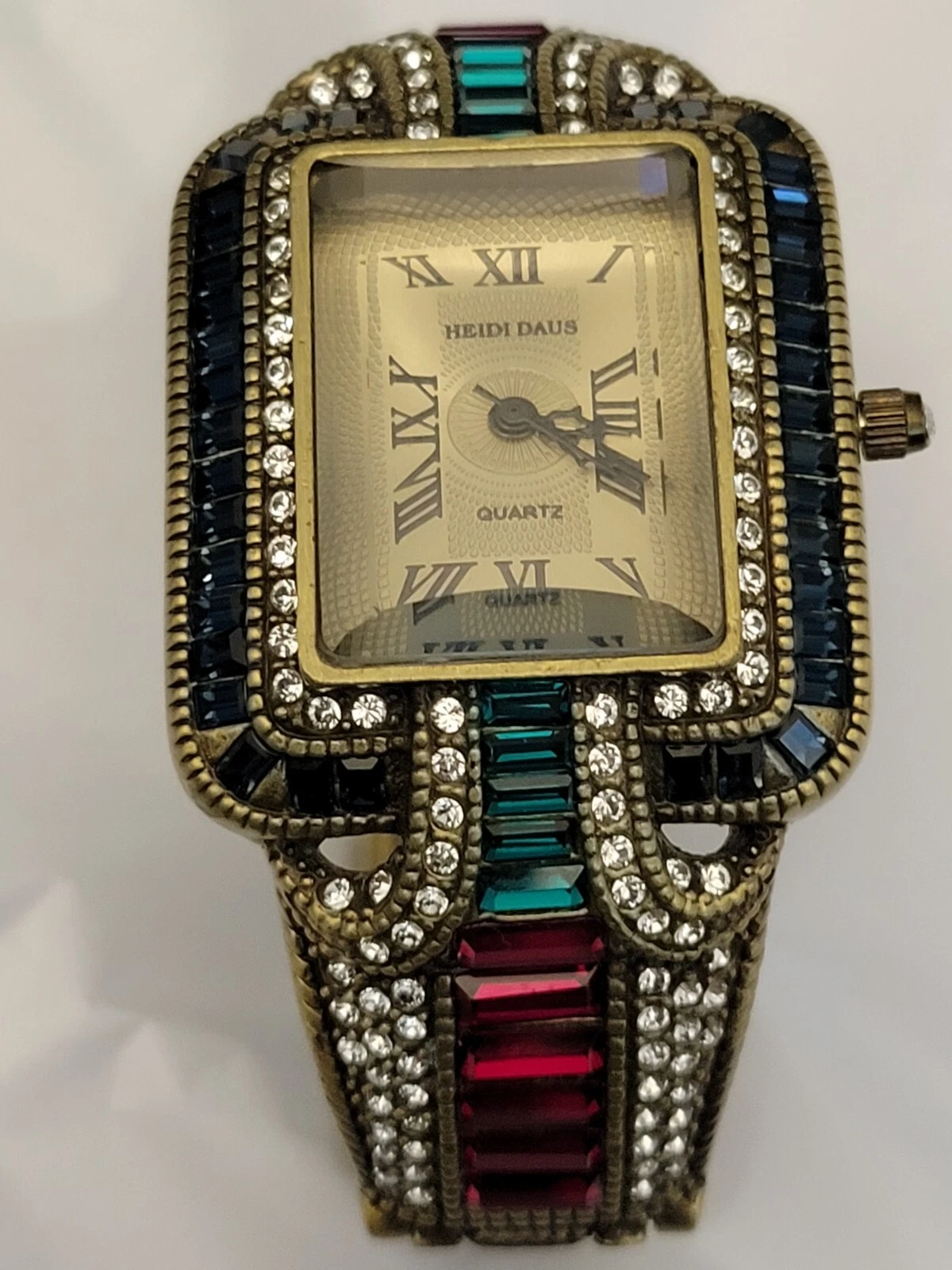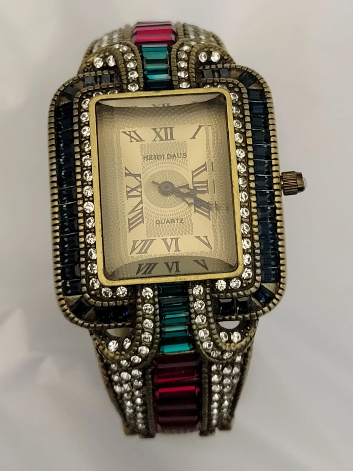 Heidi Daus Multicolored Rhinestone Bronzetone Watch B9099