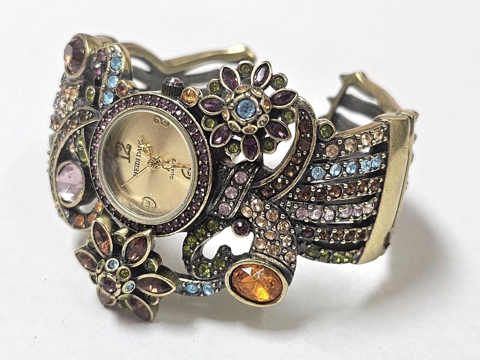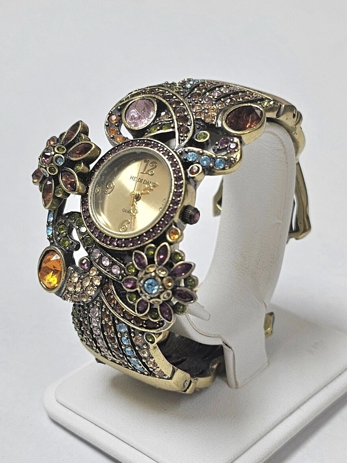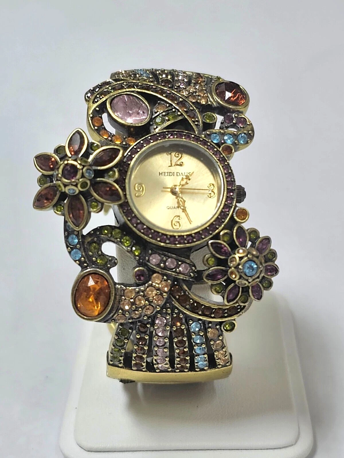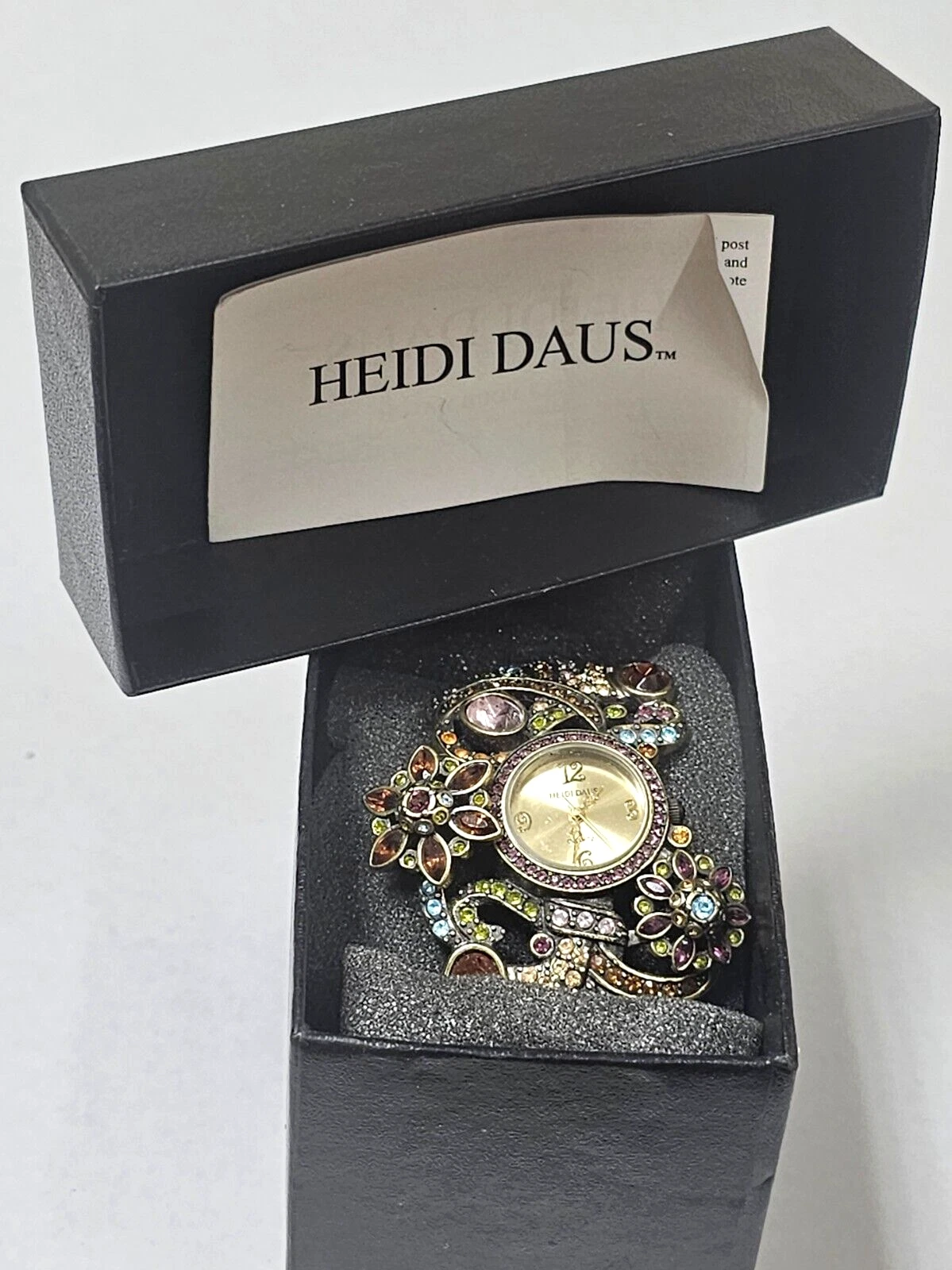 Heidi Daus Whimsical Bouquet Floral Cuff Bracelet Watch with Heidi Daus Box