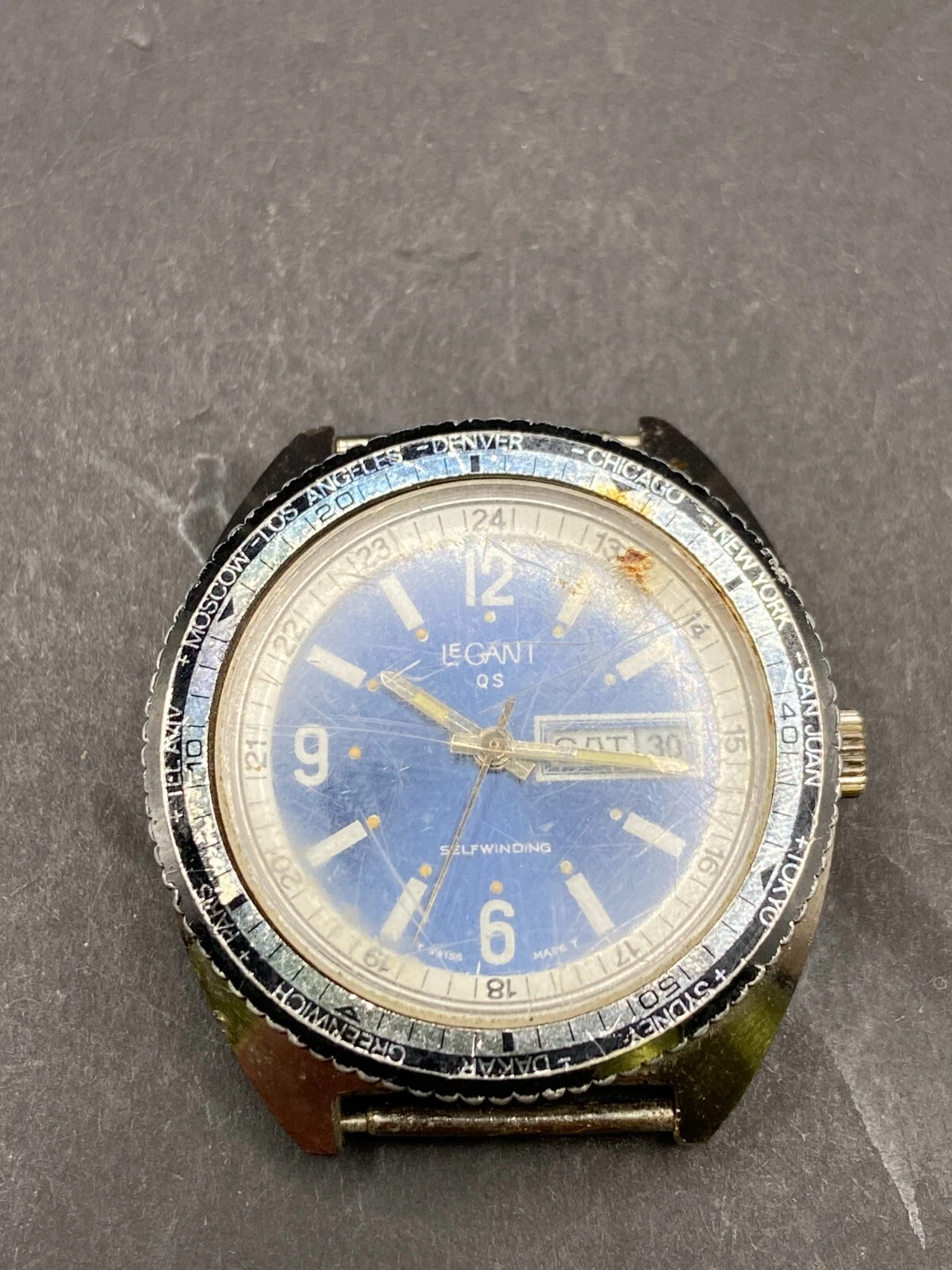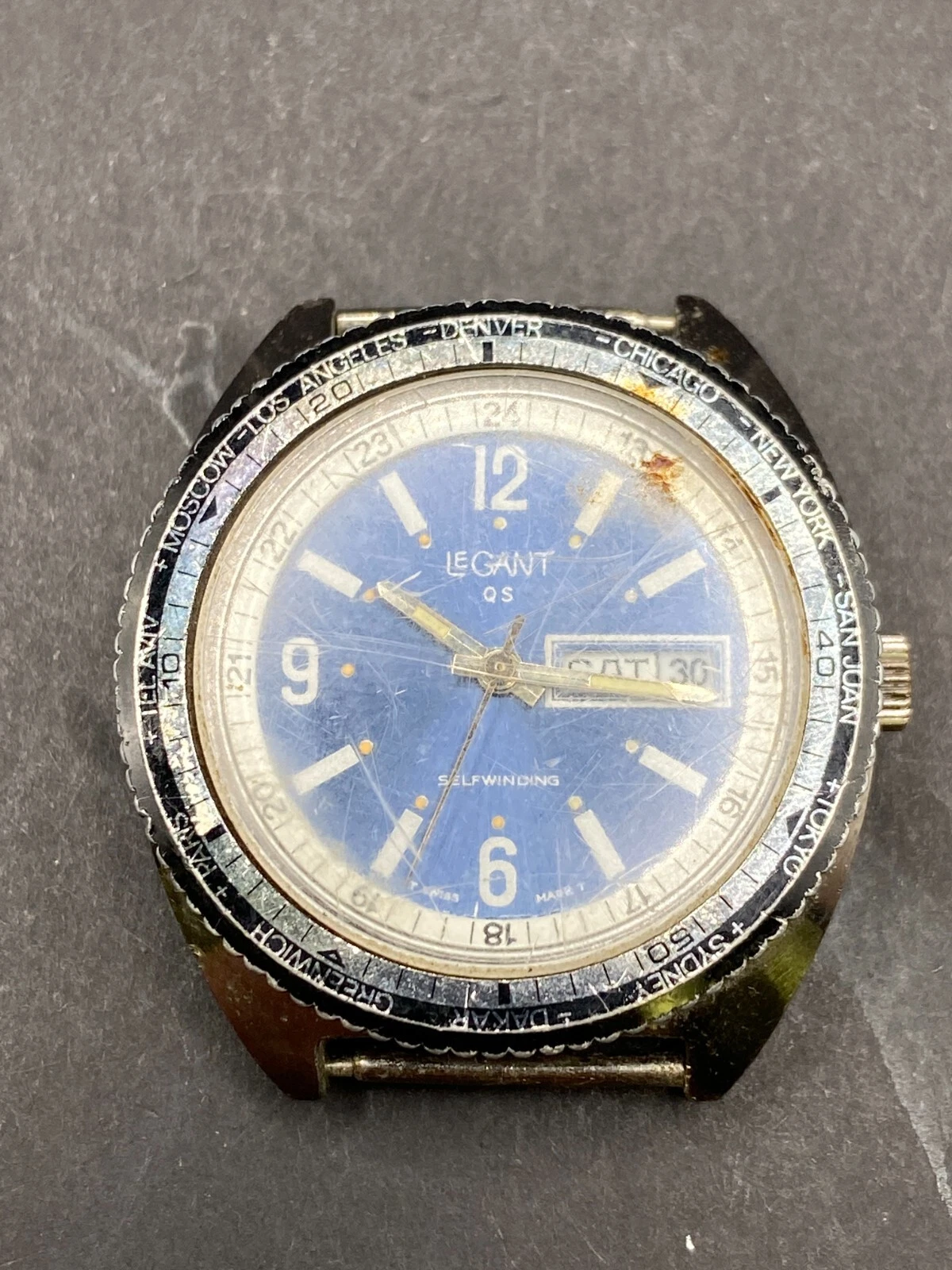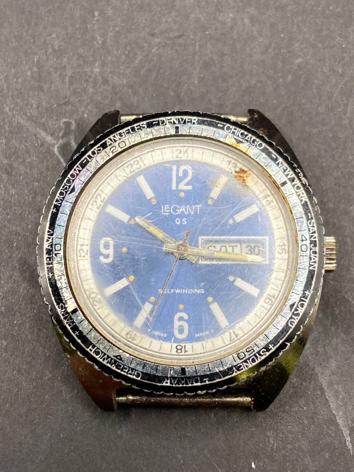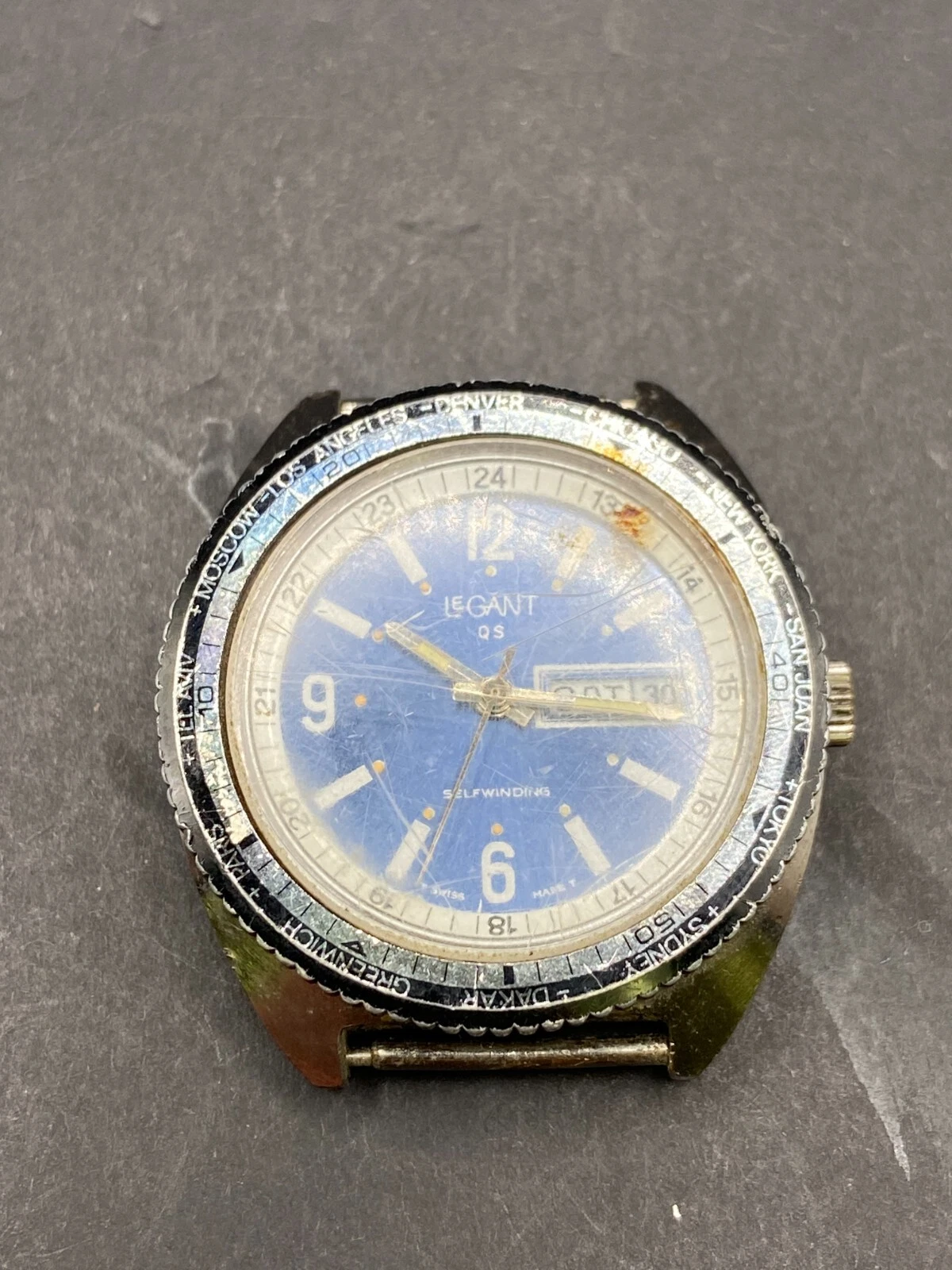 Le Gant QS GMT Self Winding Automatic Watch Men 40mm Day Date Blue Dial No Band