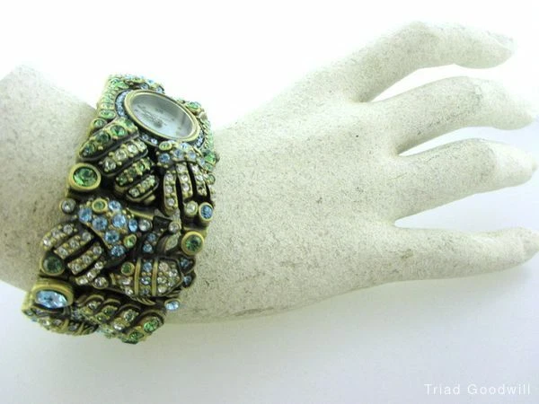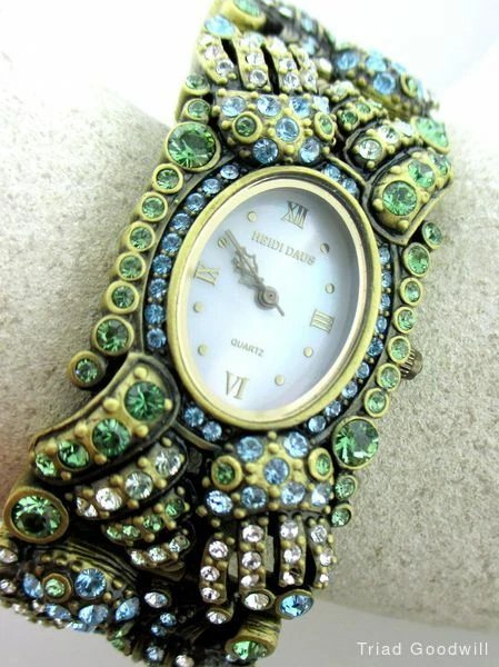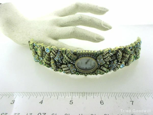 Vintage Heidi Daus B8946 Rhinestone Bracelet Watch Multi Colored Crystals