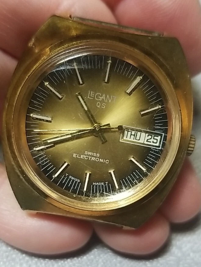 Vintage LeGant QS Electronic Gold Dial, Day / Date, Untested Bin 4