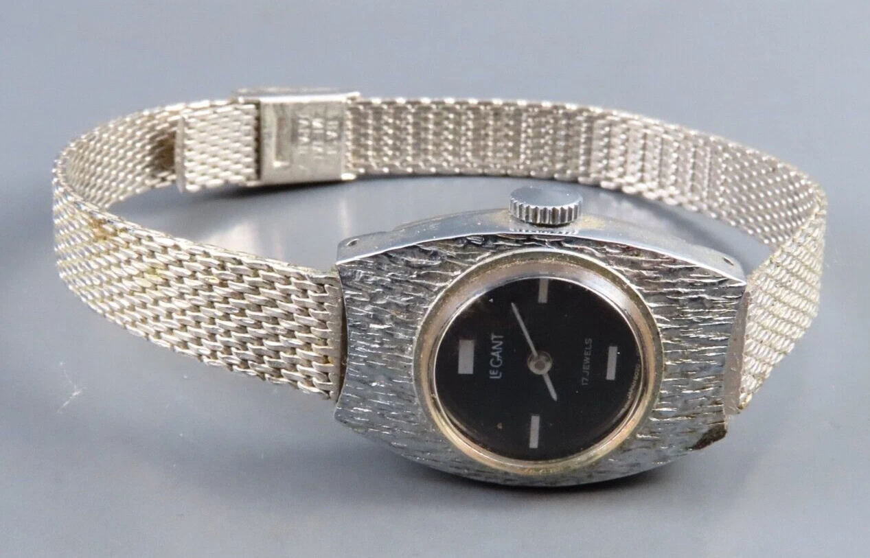 LE GANT LEGANT VTG WATCH Textured Silver Tone MESH BRACELET Retro Style 17j RUNS