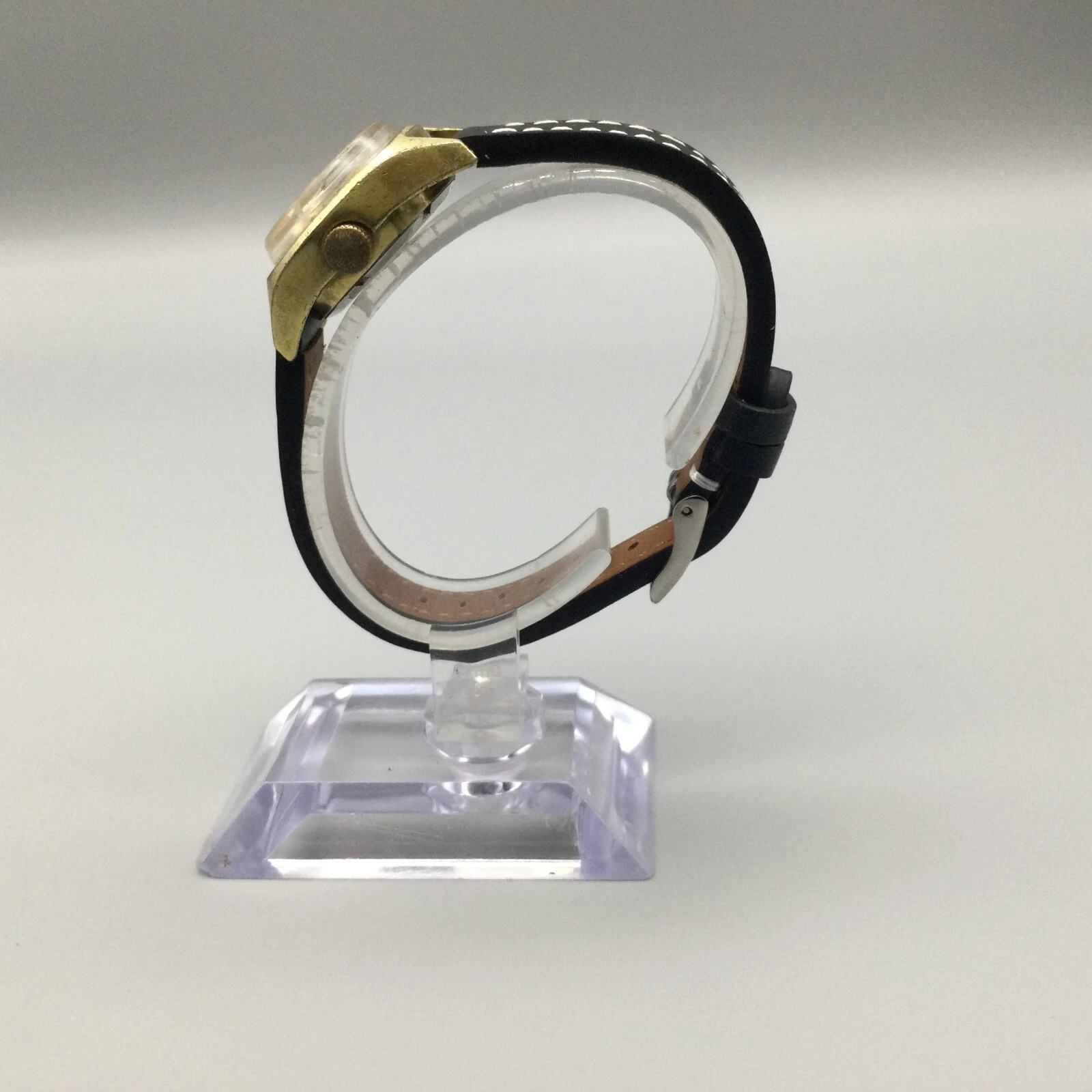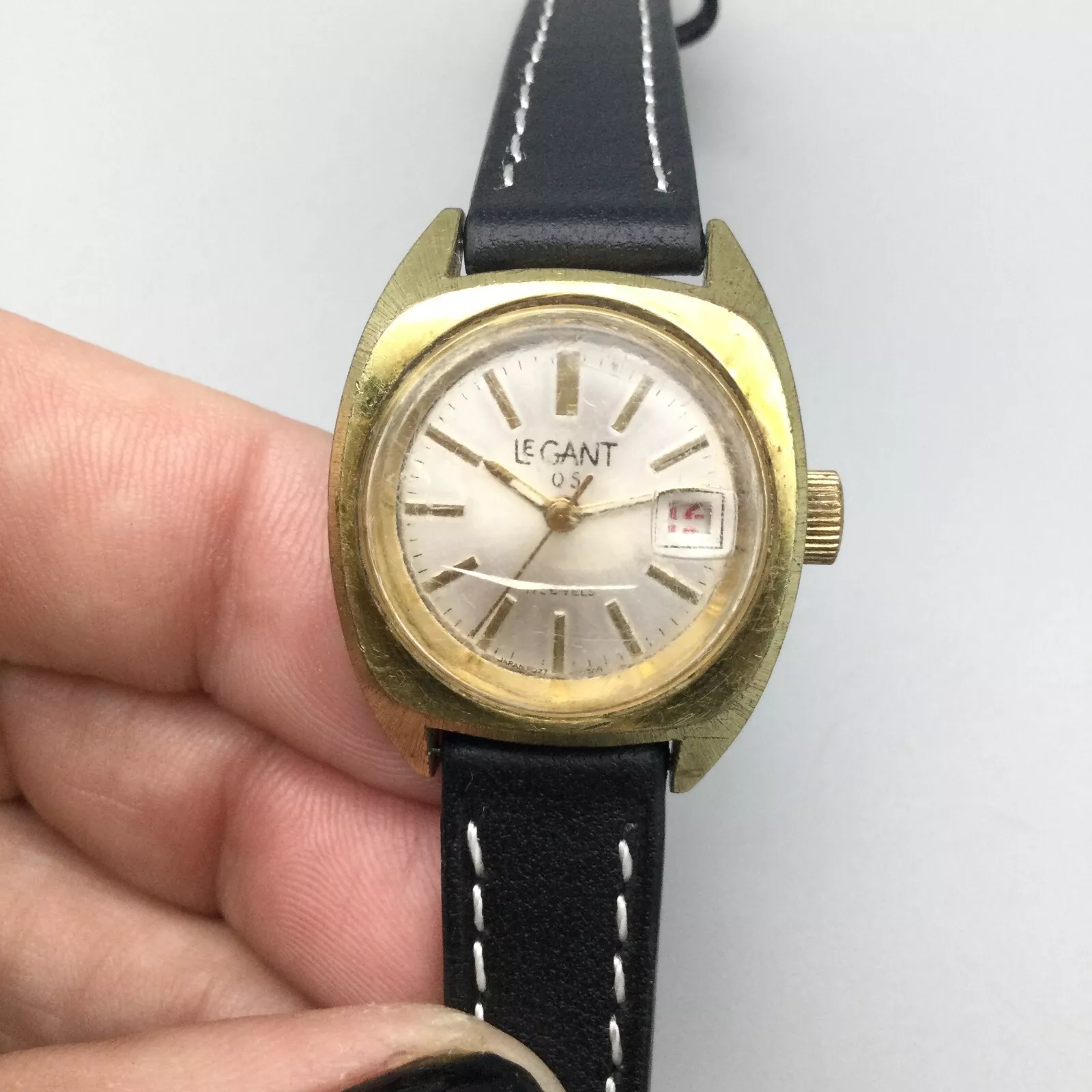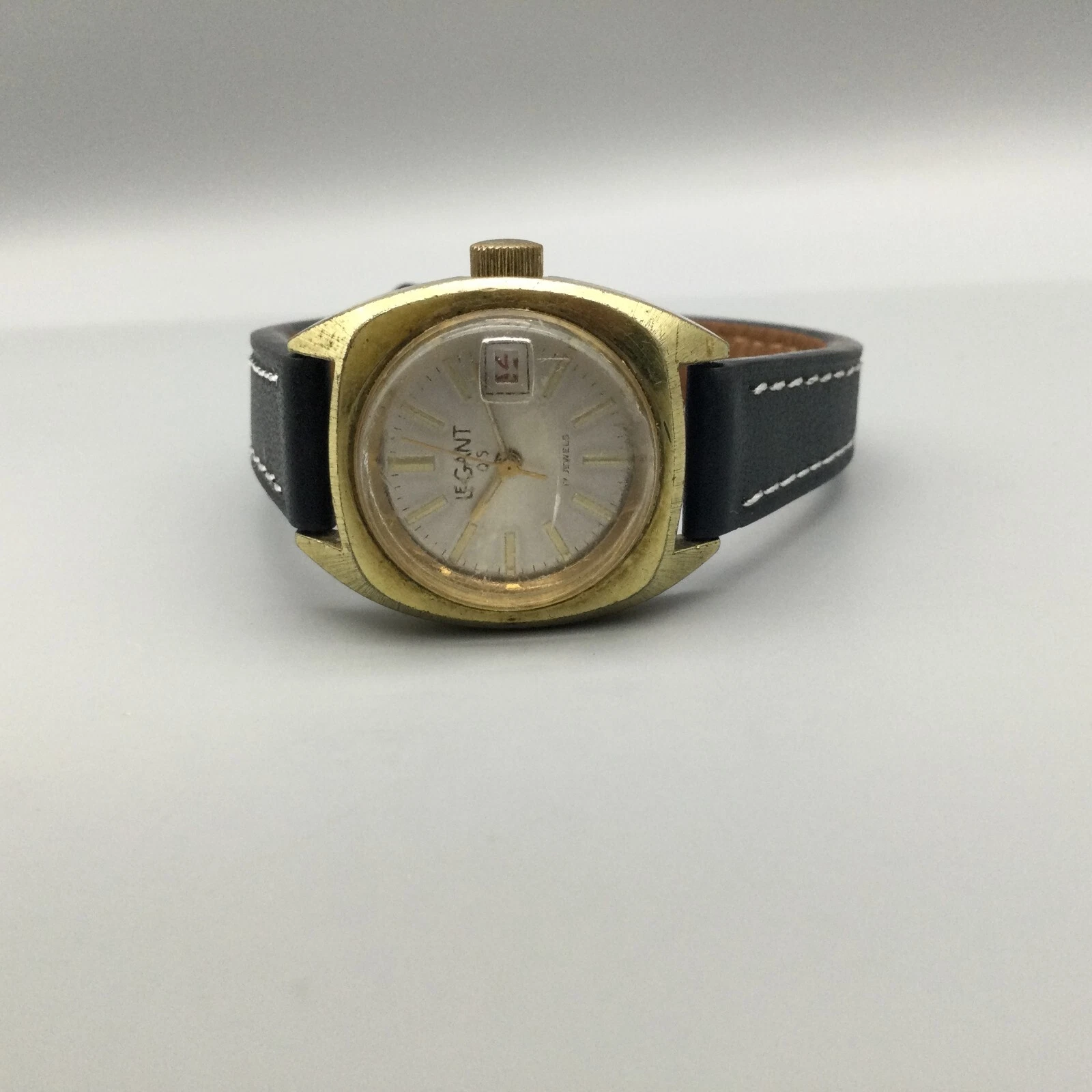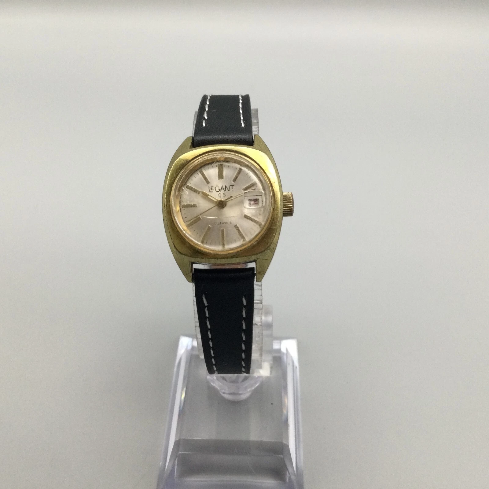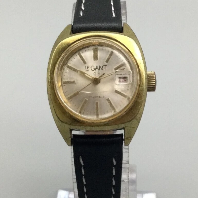 Vtg Le Gant Q5 Watch Women Silver Gold Tone 17 Jewels Date Leather Manual Wind