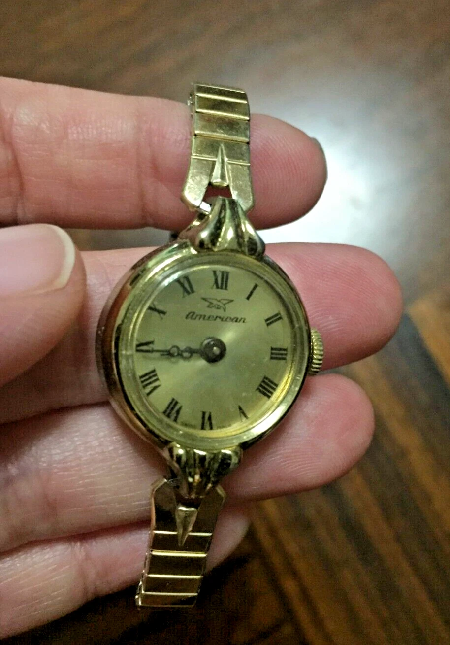 Vig American Heritage Swiss made Bass Metal Wind-Up Art Deco Gold Watch 0.75 In