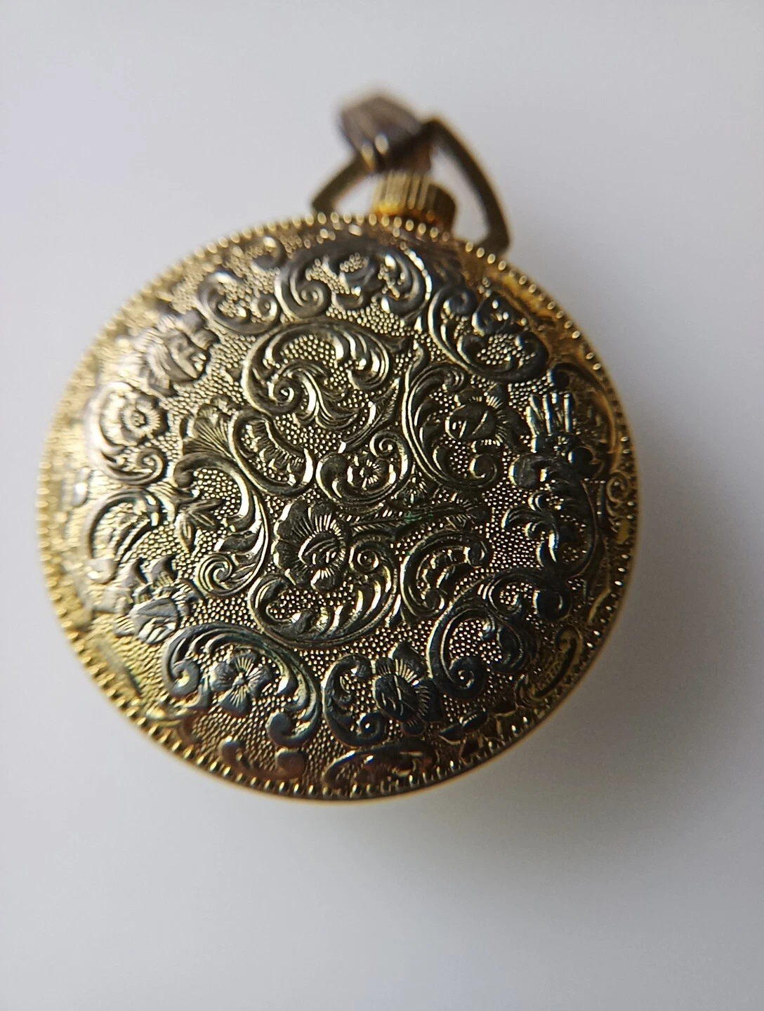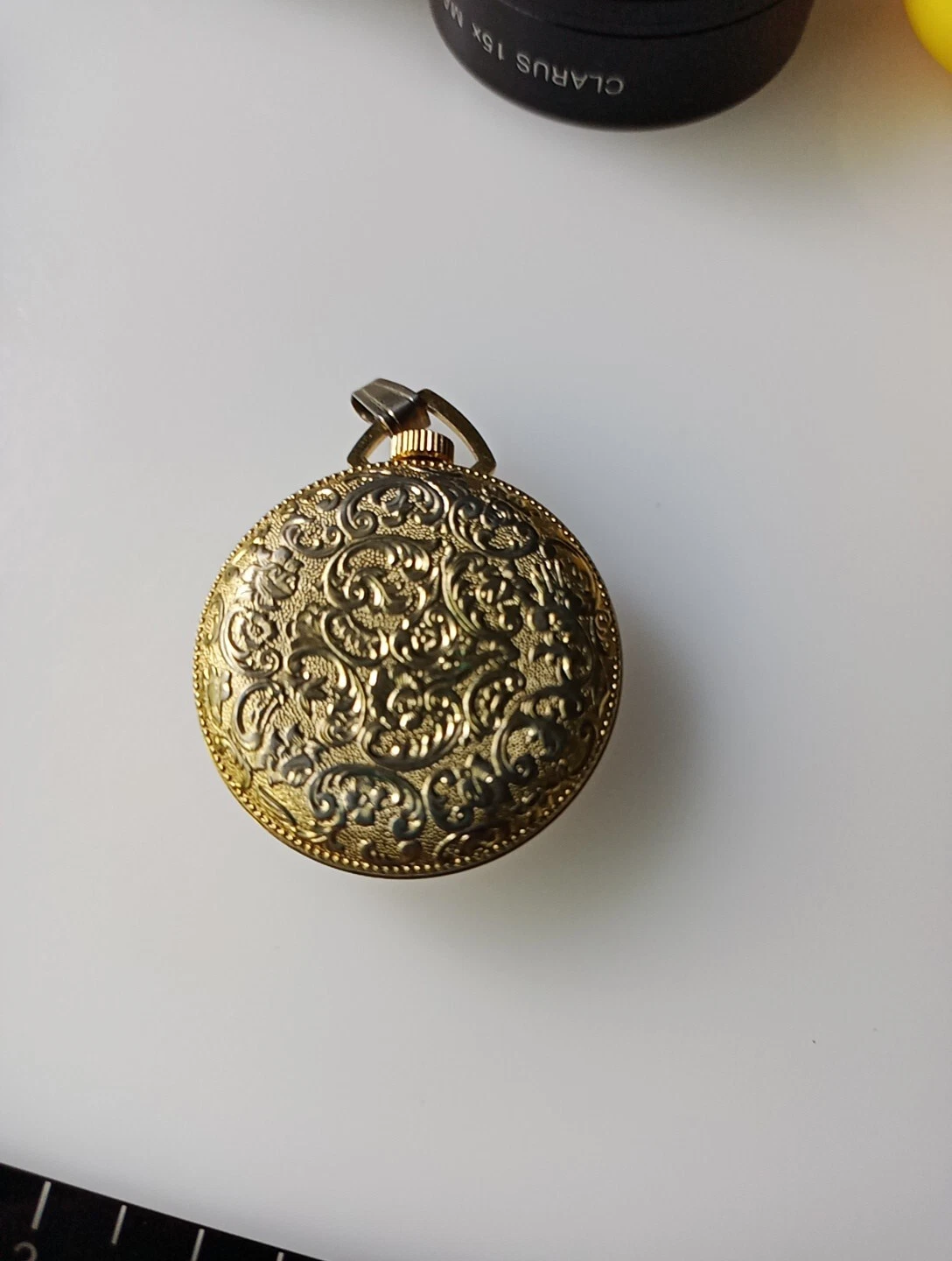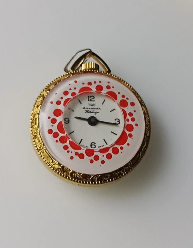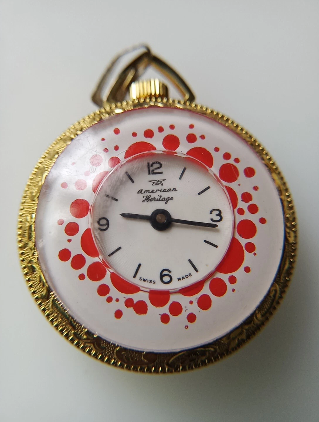 American Heritage Goldtone Red Black White Necklace Wind Up Swiss Watch