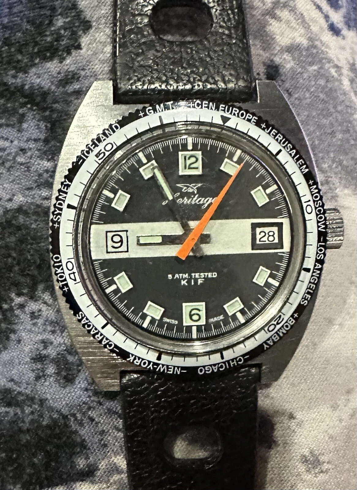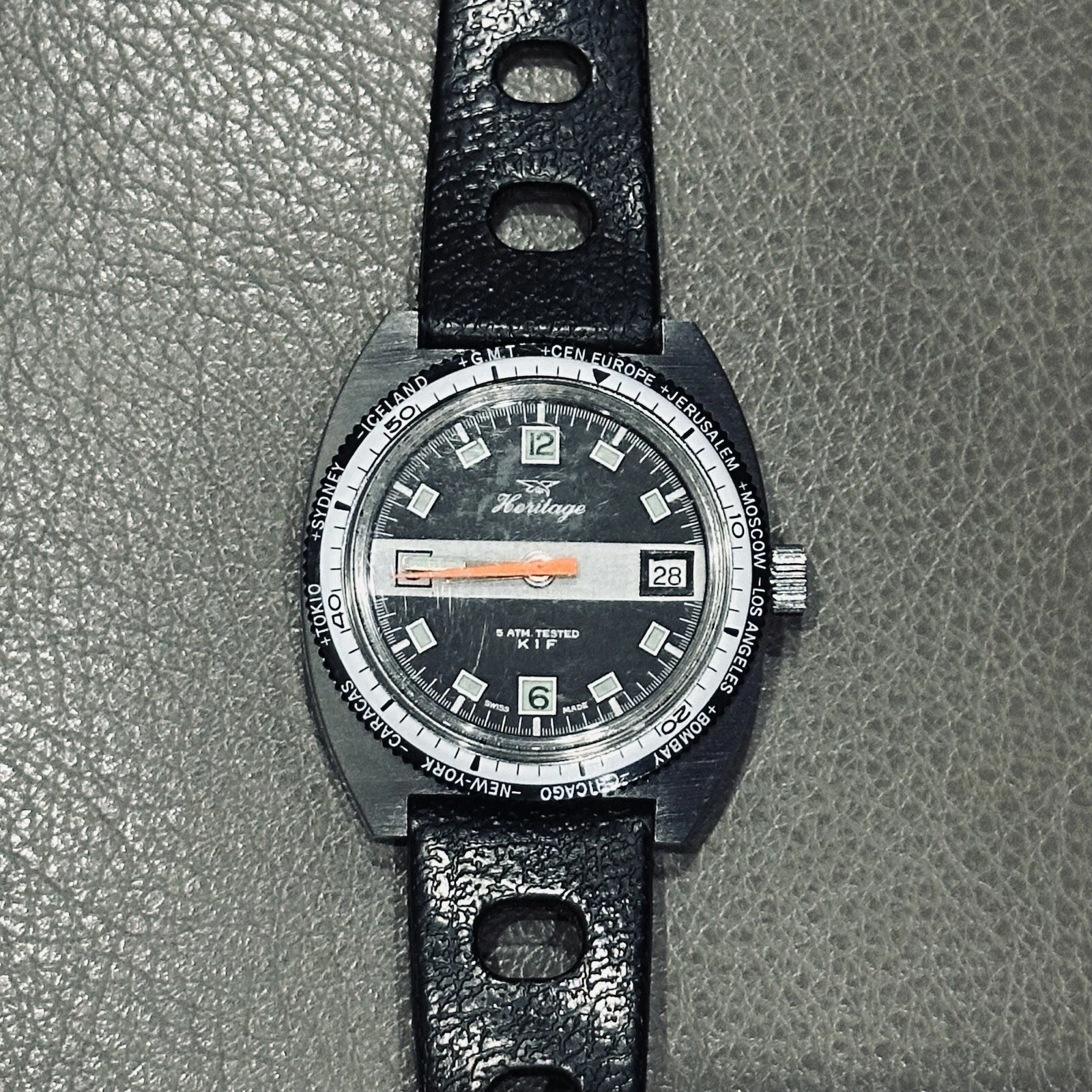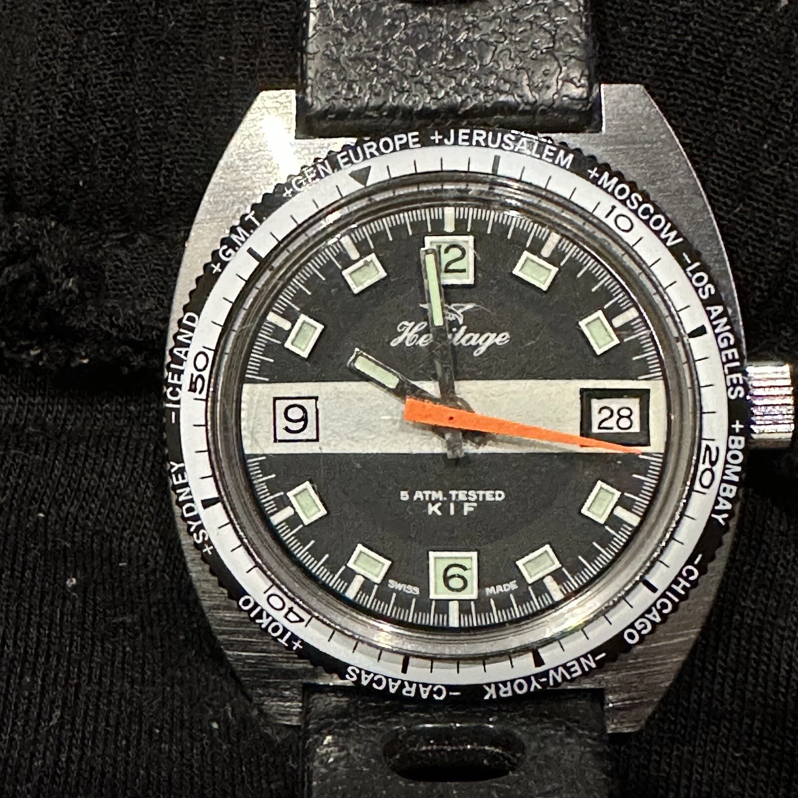 Vintage 70's American Heritage World Time Bezel 39mm Case Skin Diver Watch