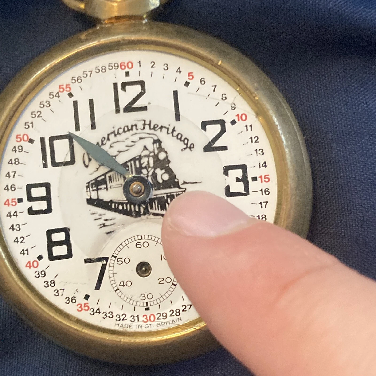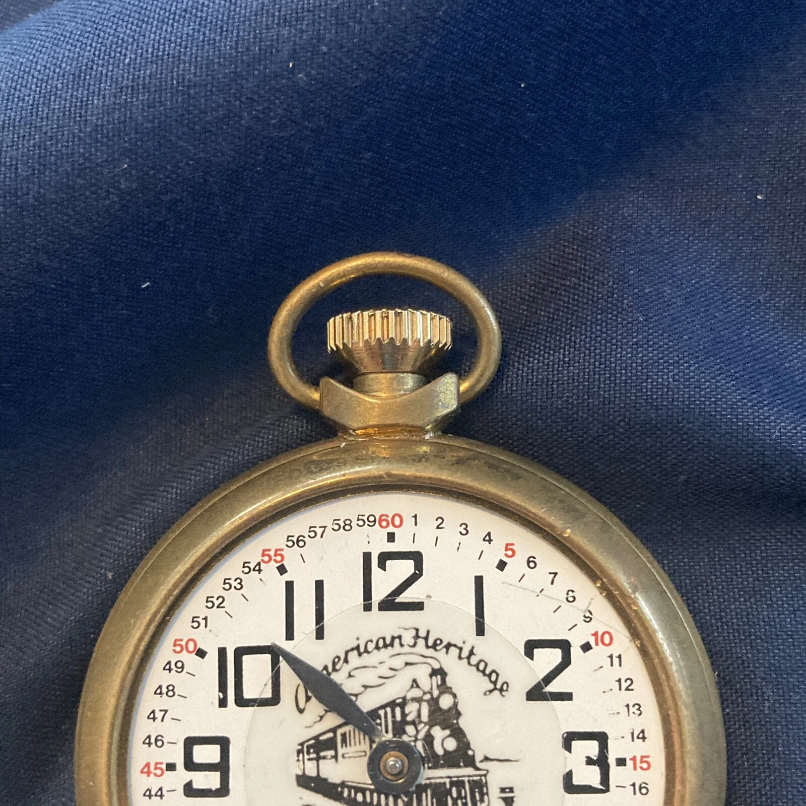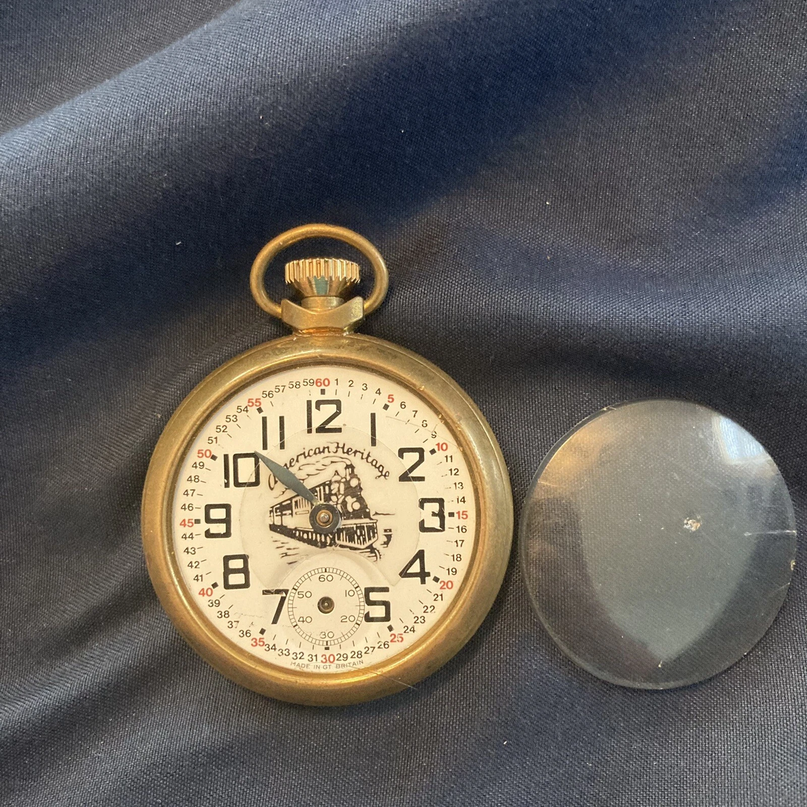 Vintage American Heritage Railroad Train Pocket Watch Made In GT Britain PARTS**