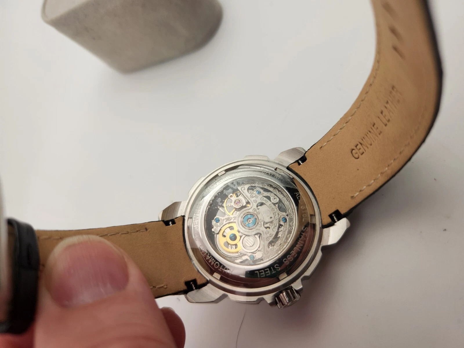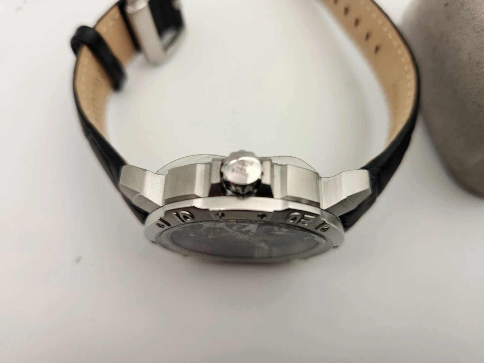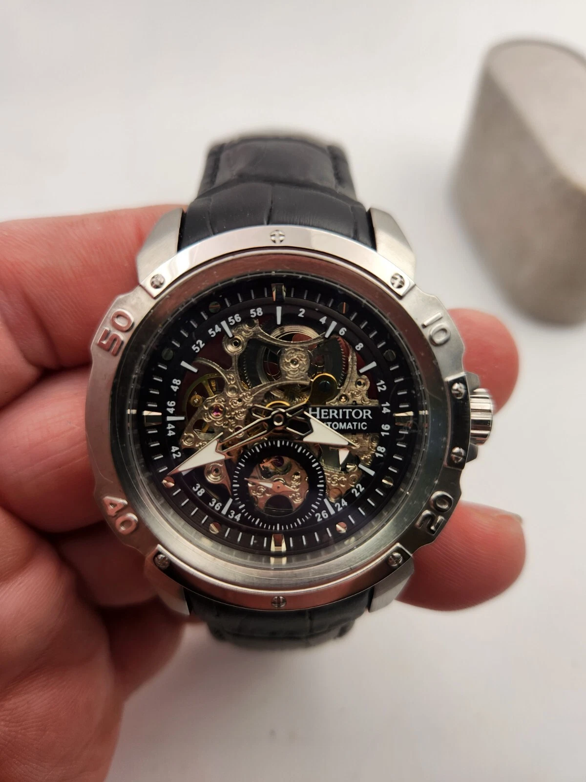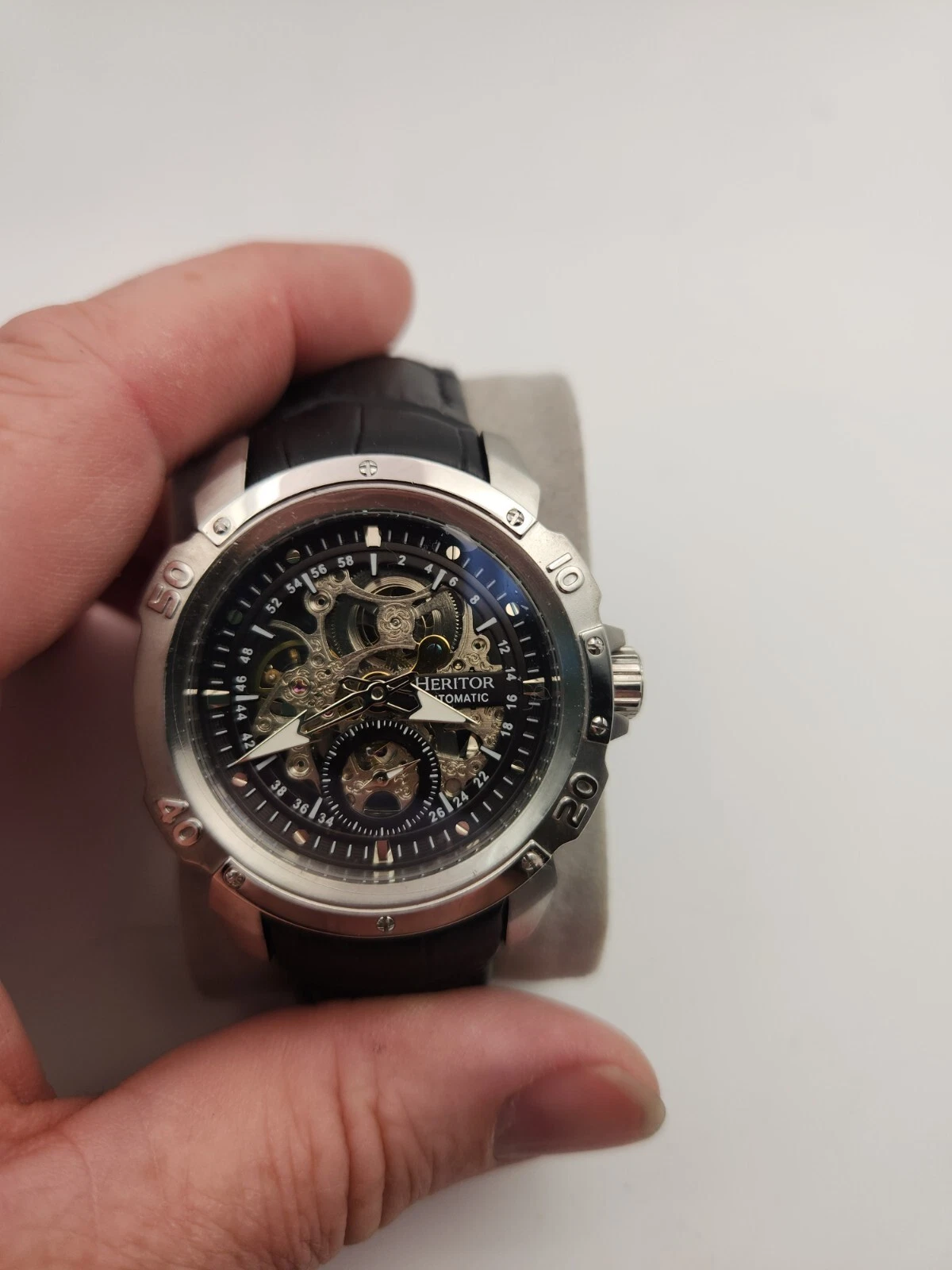 Men's Heritor Automatic Conrad Skeleton Dial Black Leather Watch HR2504