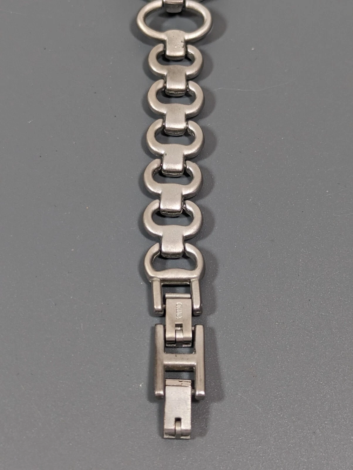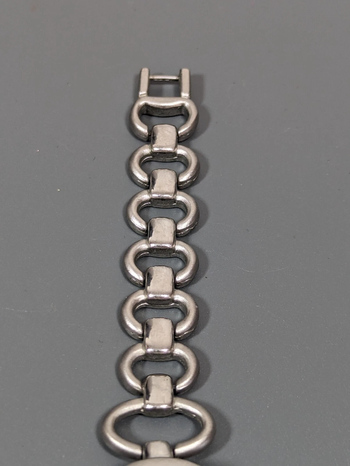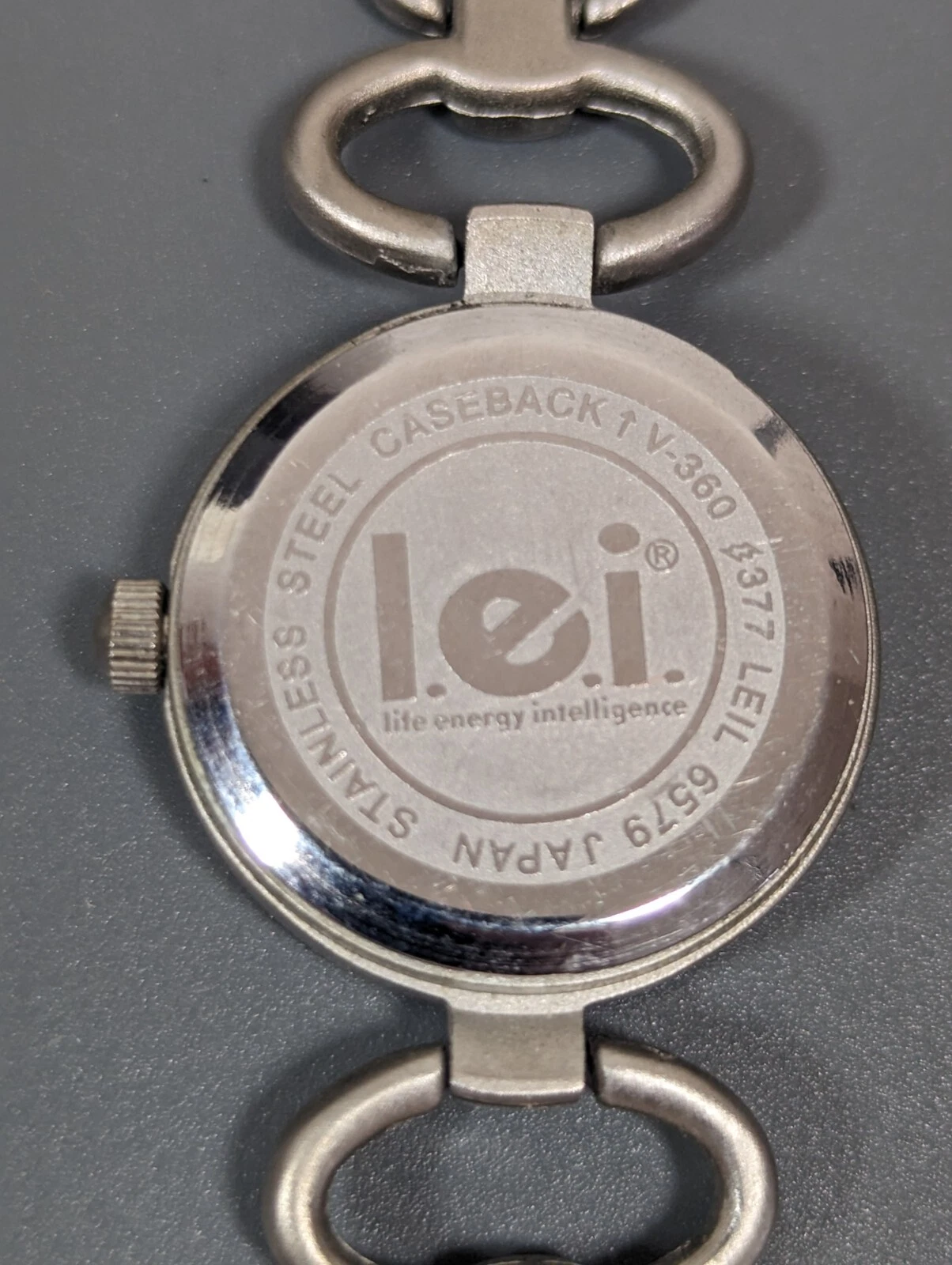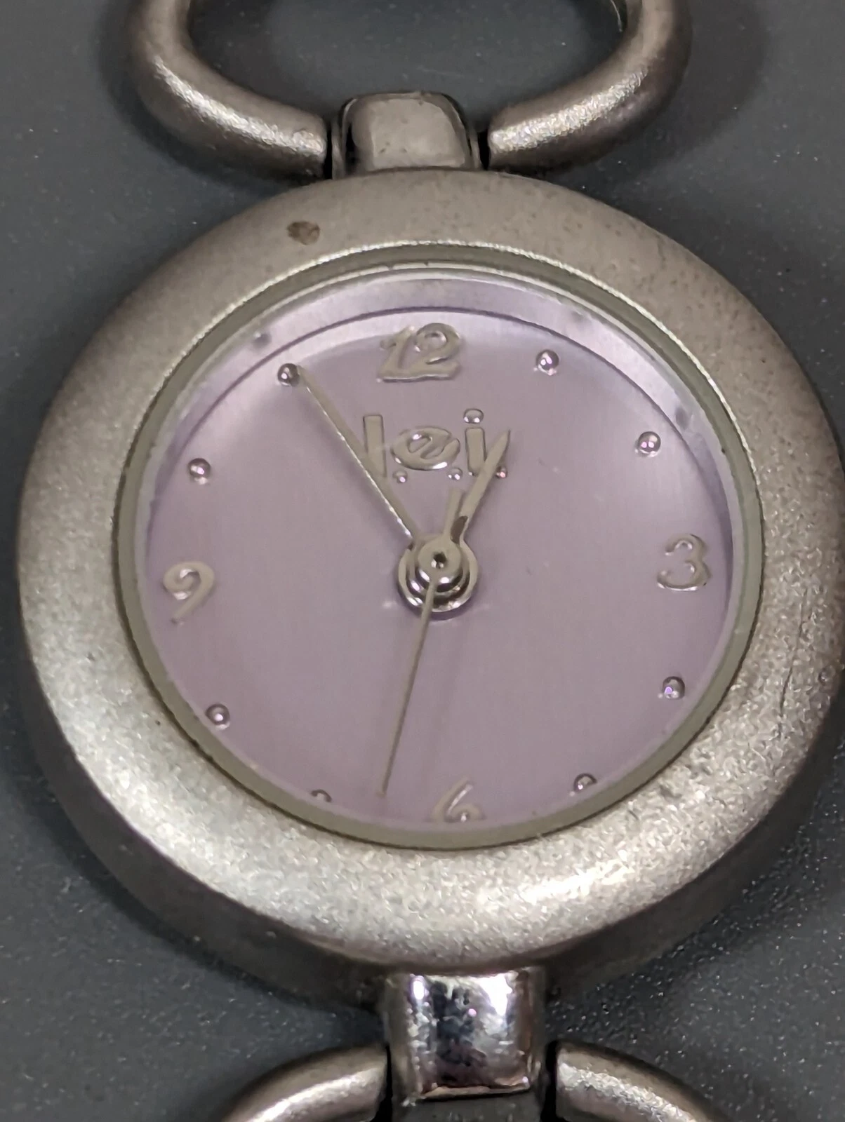 lei Purple Dial Round Silver Tone Case Link Bracelet Band Watch