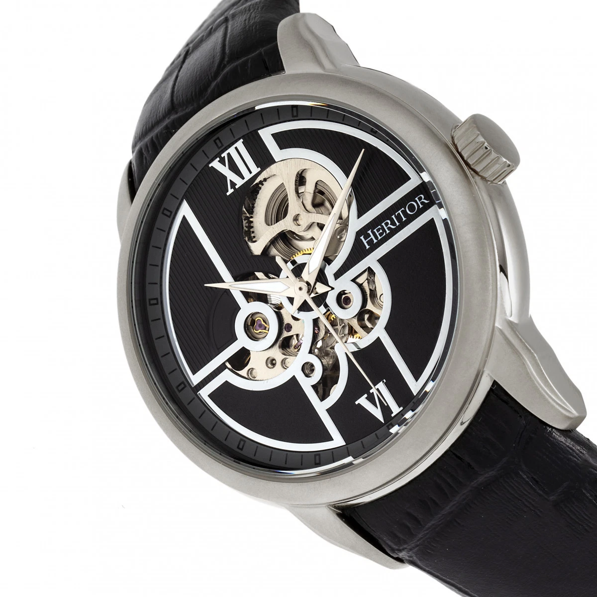 HERITOR Automatic Sanford Semi-skeleton Dial Black Leather Men's Watch Hr8302