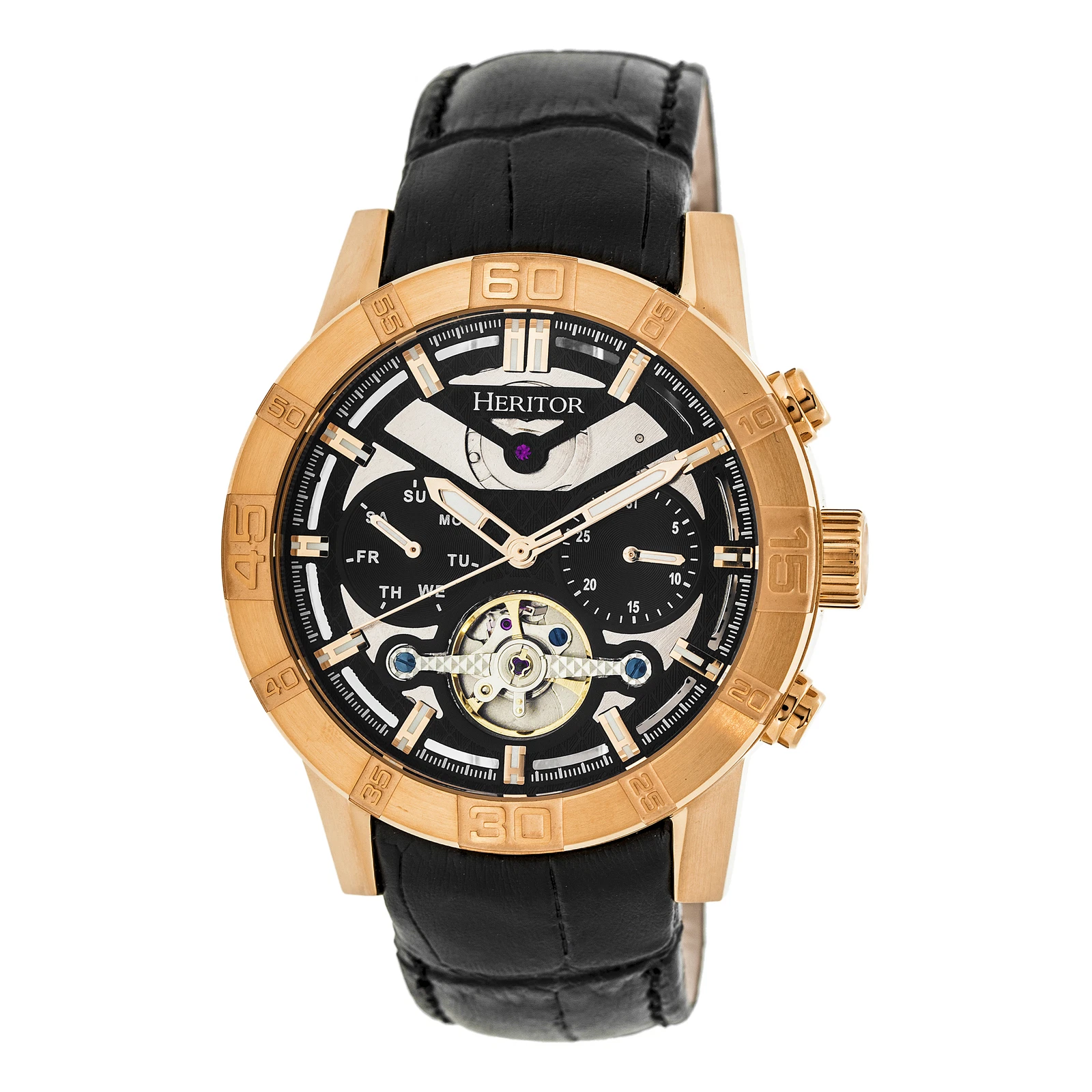 Heritor Automatic Hannibal Semi-Skeleton Leather-Band Watch - Rose Gold/Black