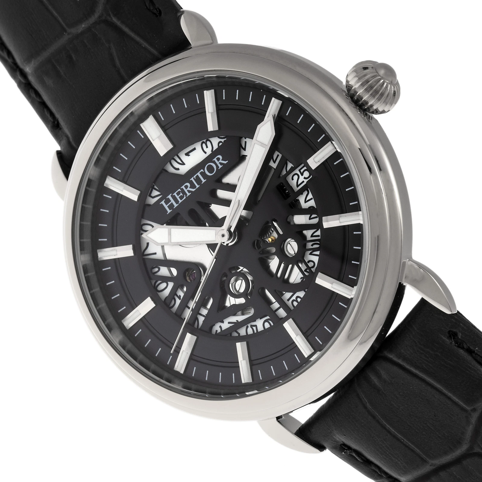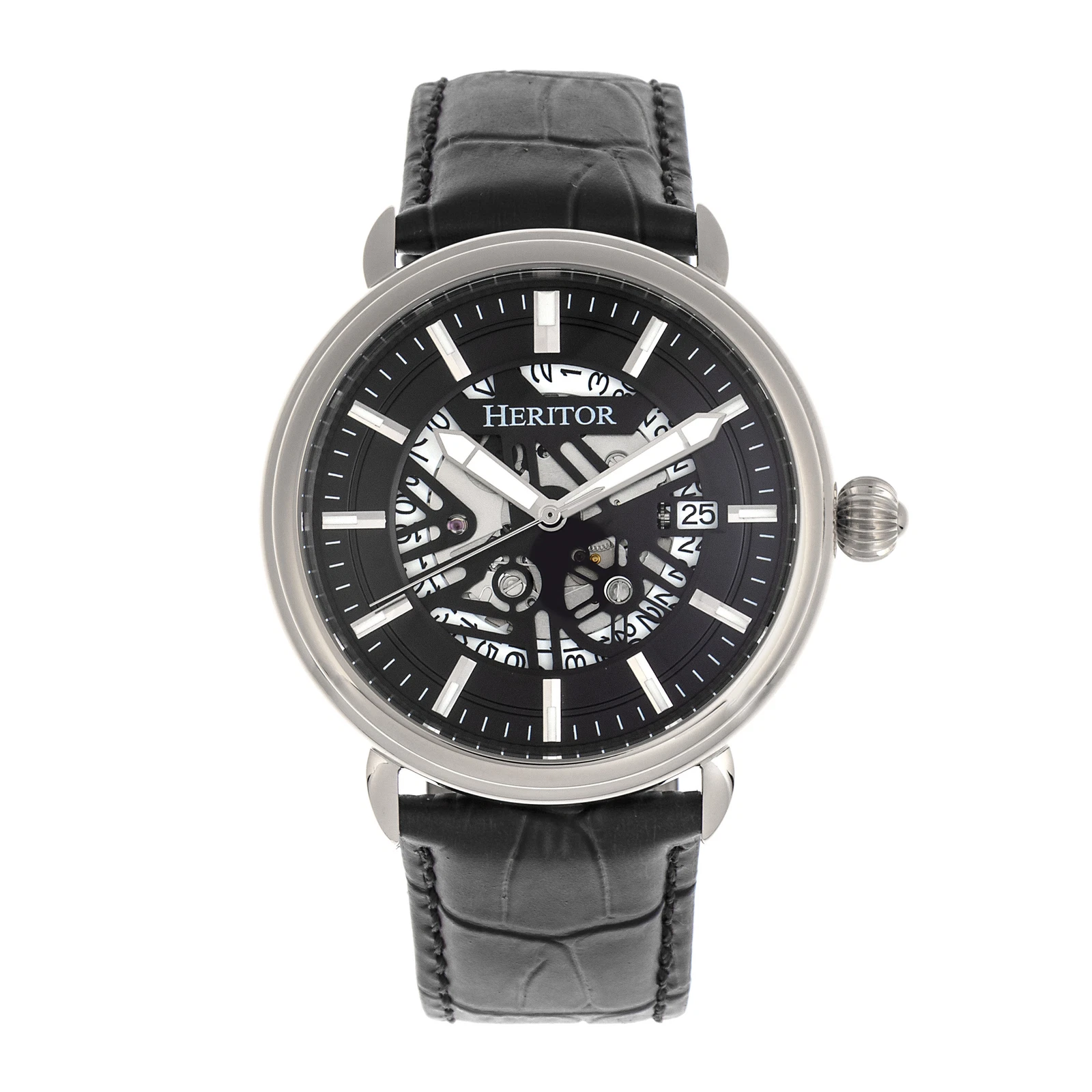 Heritor Mattias Automatic Black Leather Men's Watch with Date Indicator HR8402