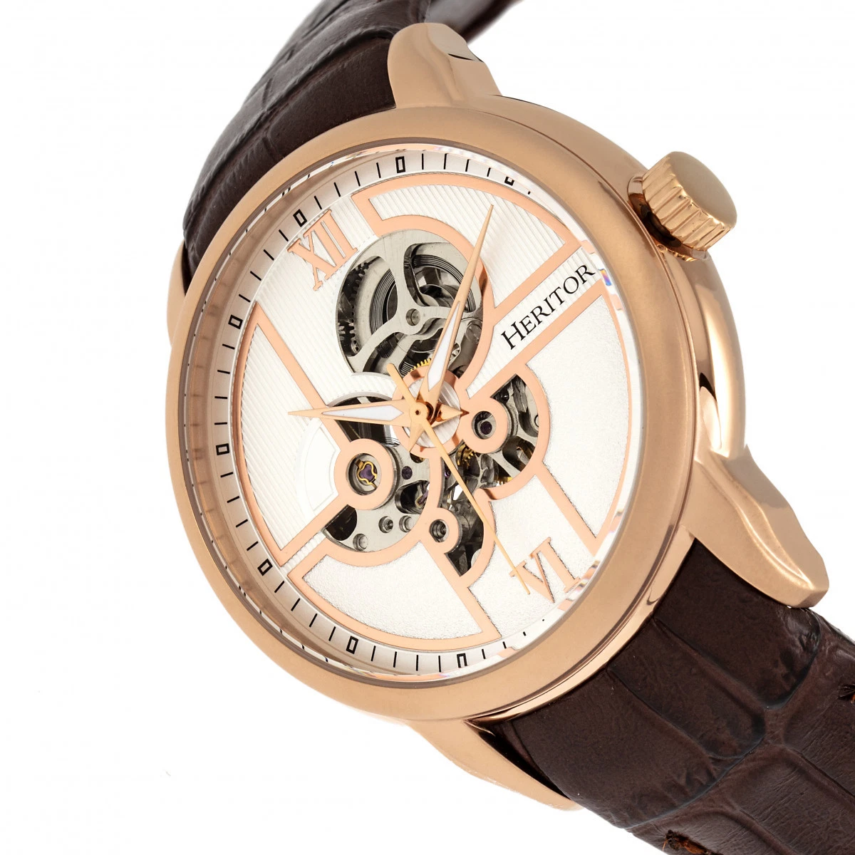 HERITOR Automatic Sanford Semi-skeleton Dial Brown Leather Men's Watch Hr8304