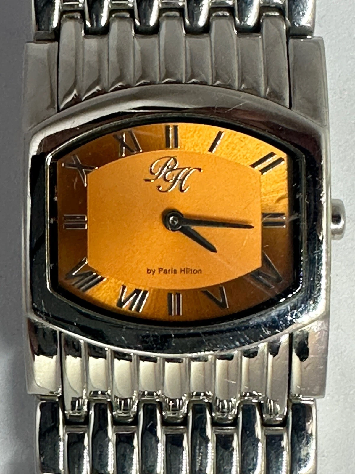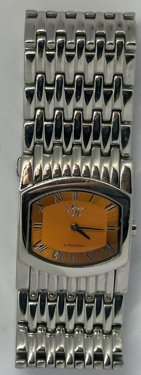 Paris Hilton Watch Women 11276M New Battery Silver Tone 29MM Orange Dial Z