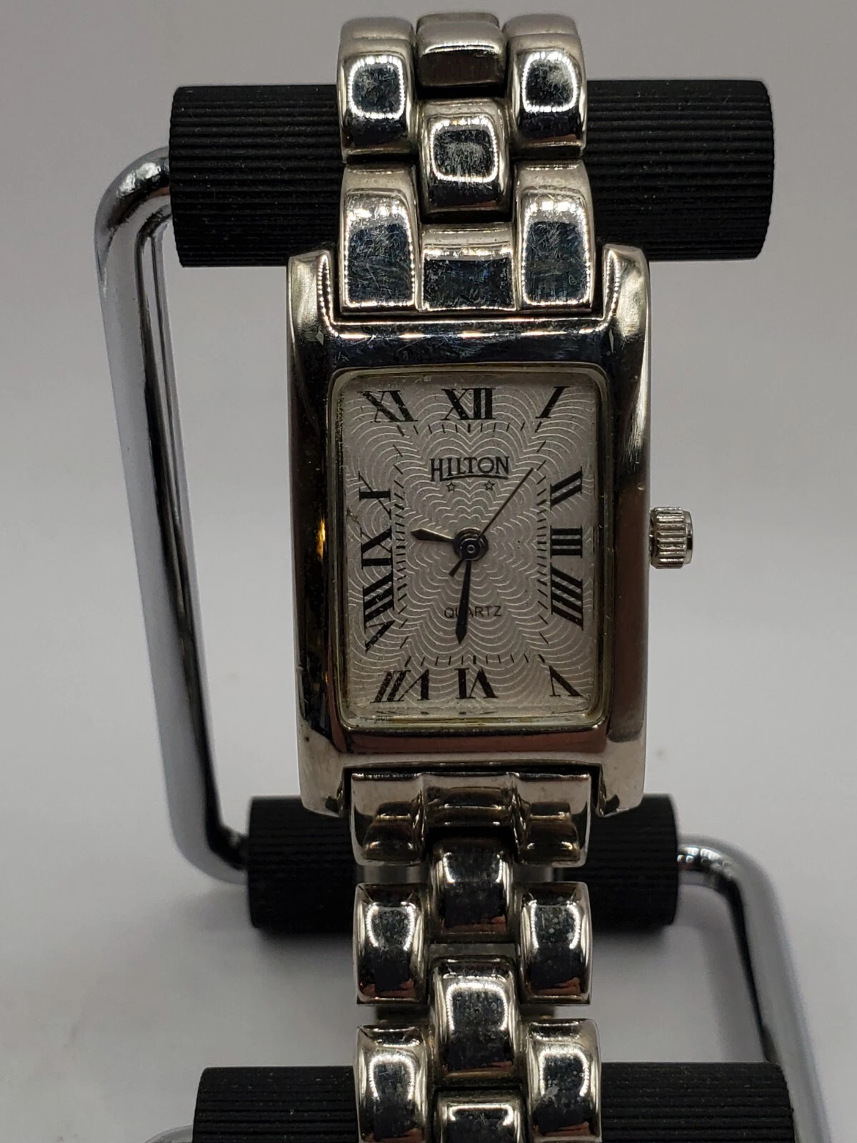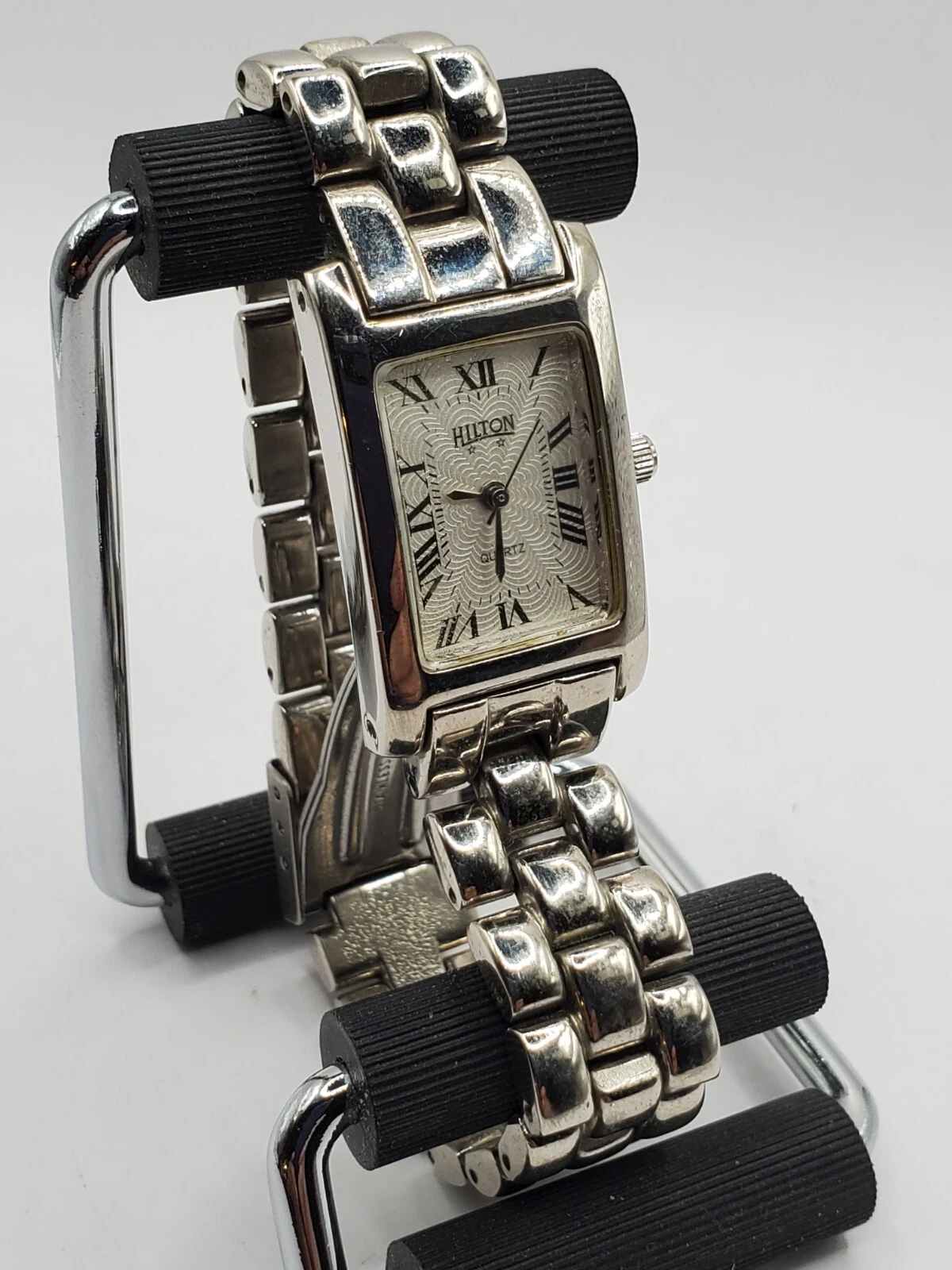 Hilton Ladies Fashion Quartz Watch 19mm Rectangle Silver Tone Bracelet Band
