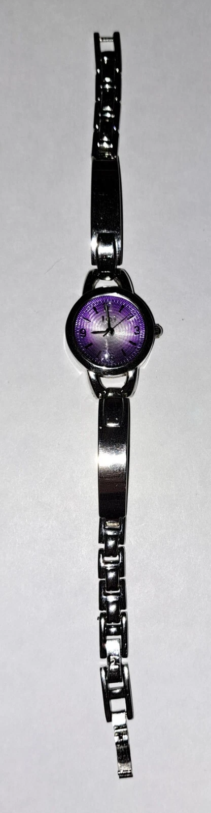 L.E.I. Women's Silver Toned Watch Purple Dial New Battery 7" Length