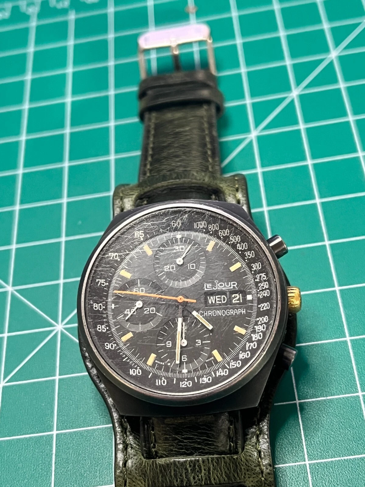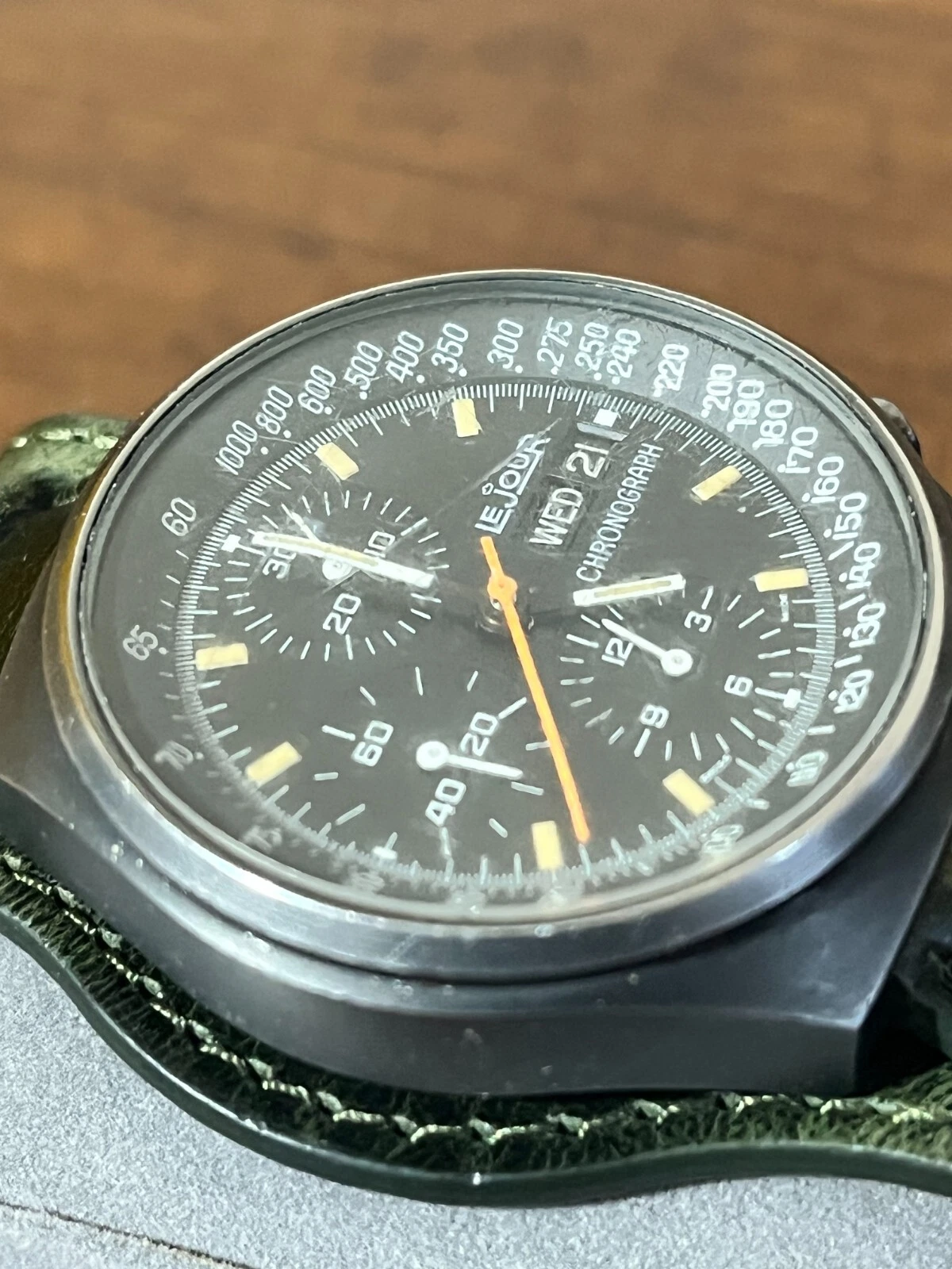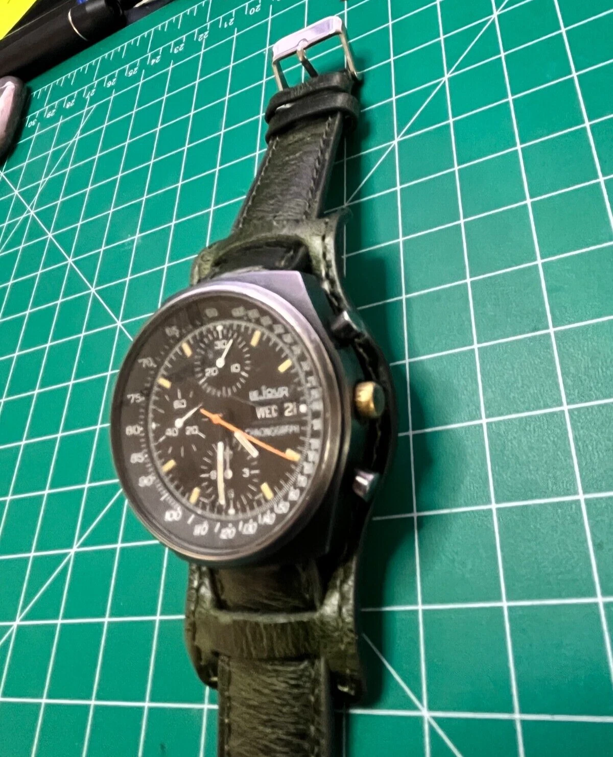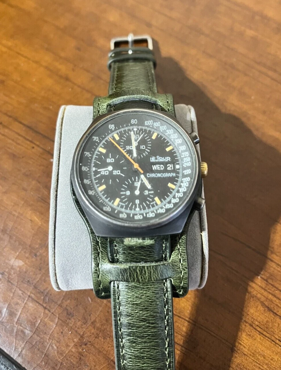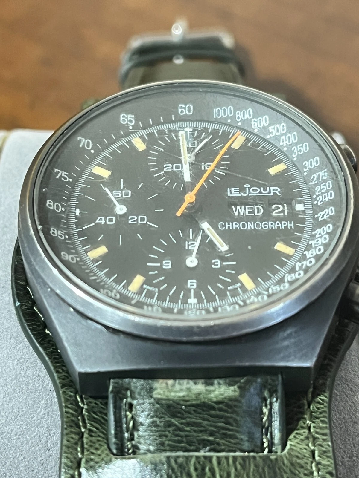 LeJour By Heuer Chronograph Ref. 7000 Black PVD - 1980s Vintage Top Gun