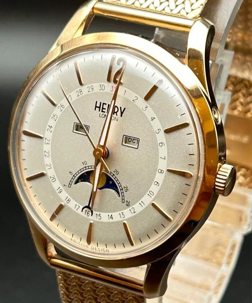 HENRY LONDON HL39-LM-0162 Moon Phases Men's Watch Analog Quartz Pink Gold Used
