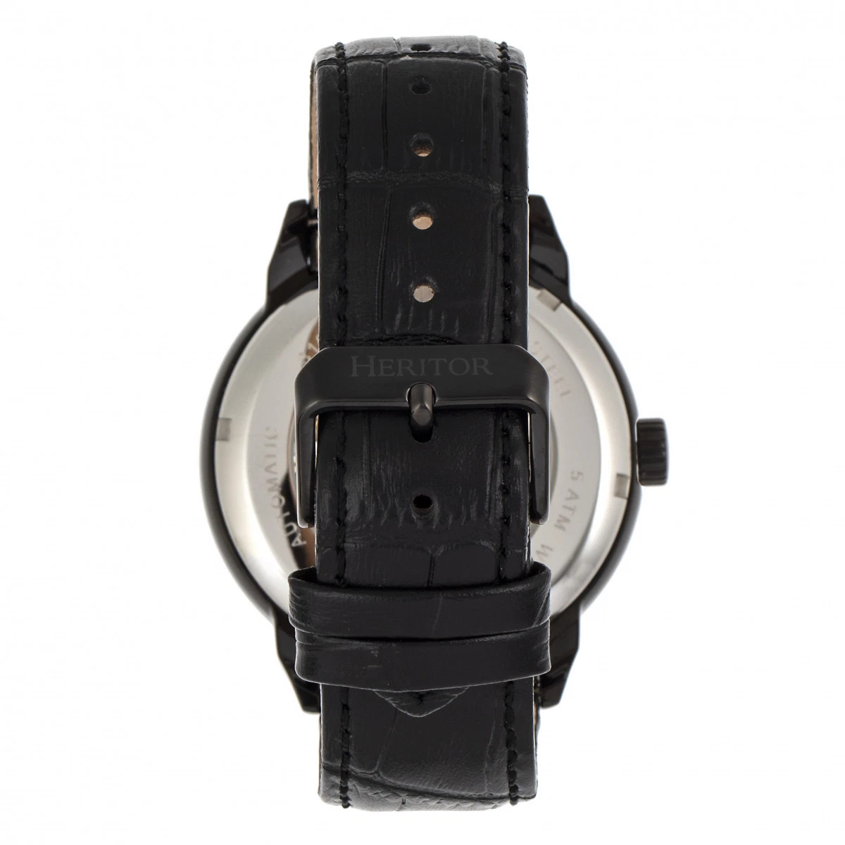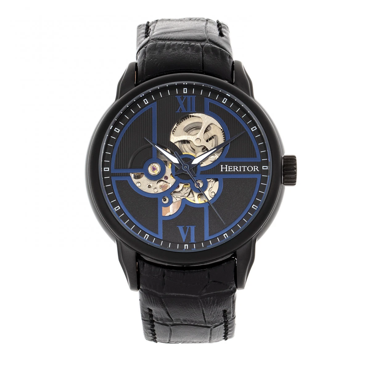 HERITOR Automatic Sanford Semi-skeleton Dial Black Leather Men's Watch Hr8305