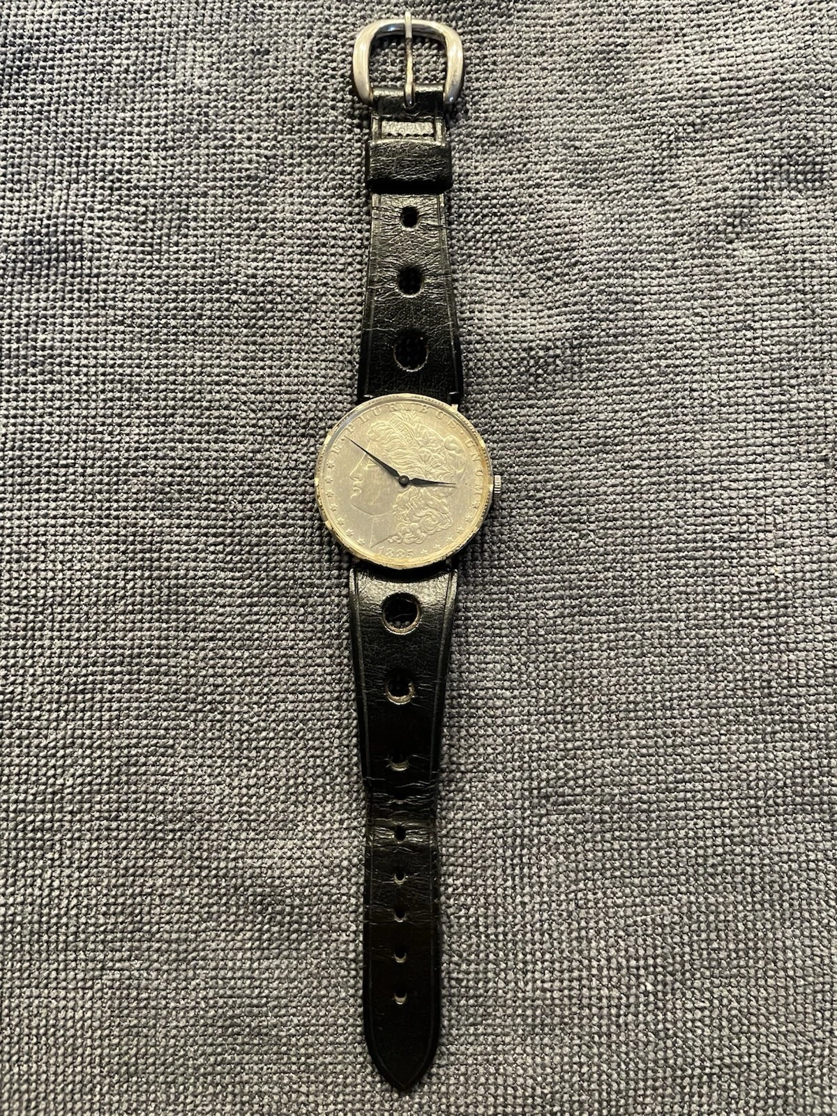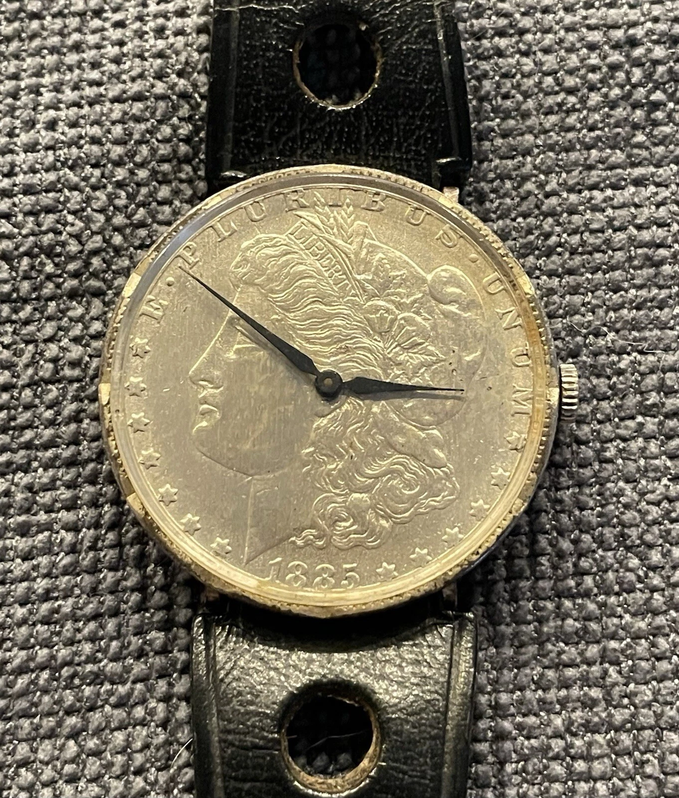 Vintage Swank Real 1885 Silver Morgan Dollar Watch 17J Swiss 1960s