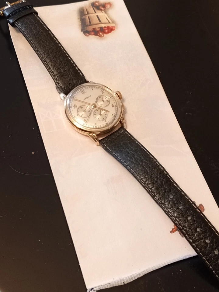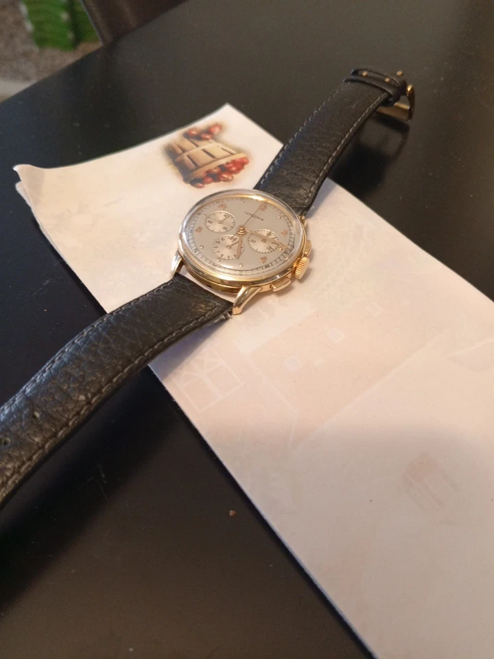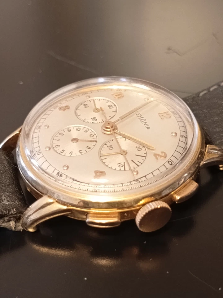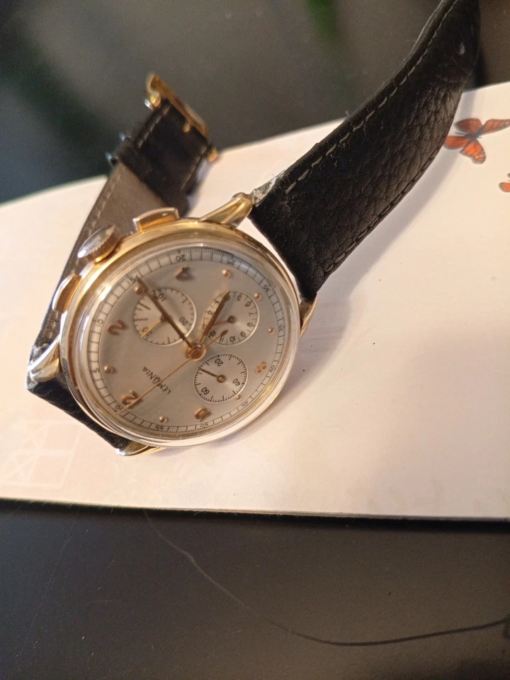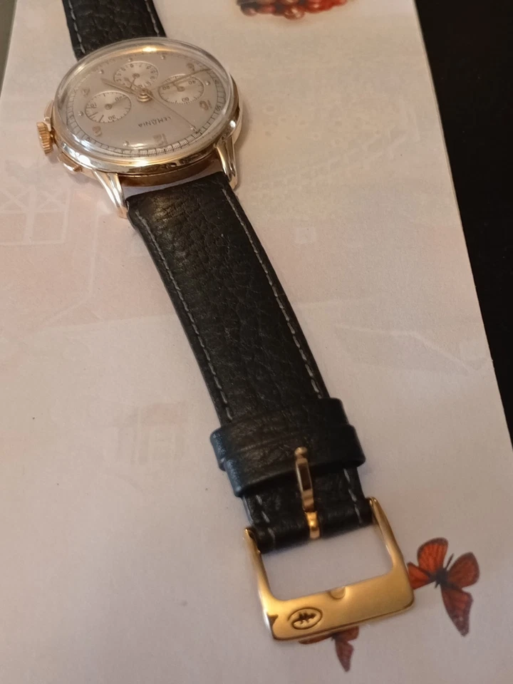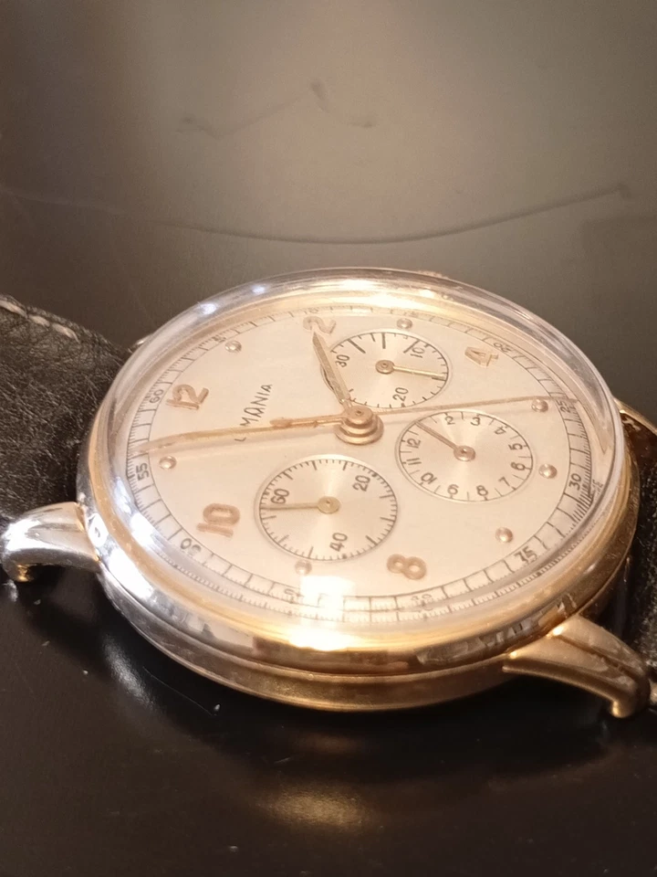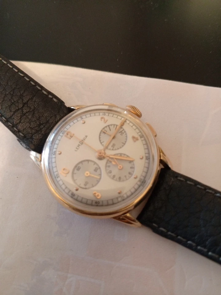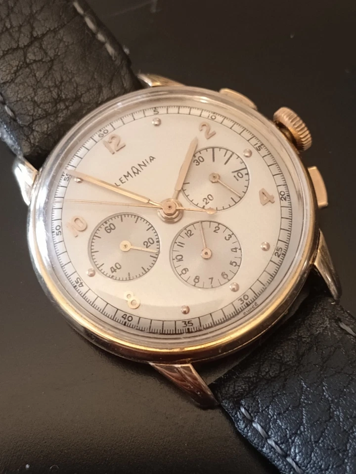 Lemania Chronograph 3 Register 18k Solid Rose Gold ch27 Omega Moon rare 105 Cal