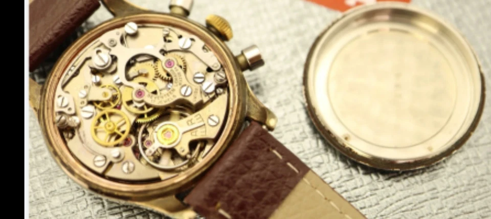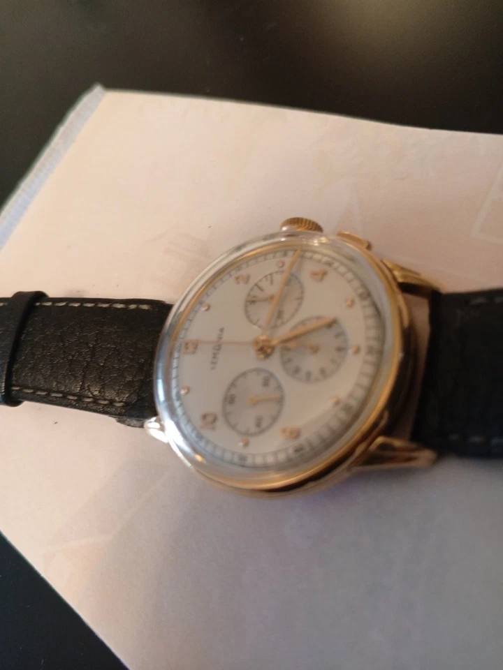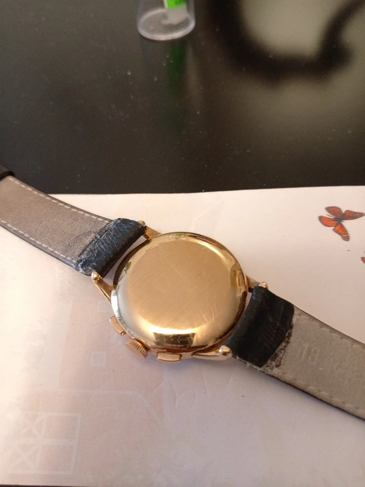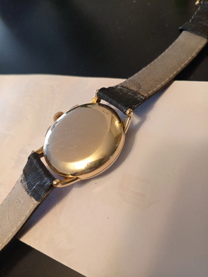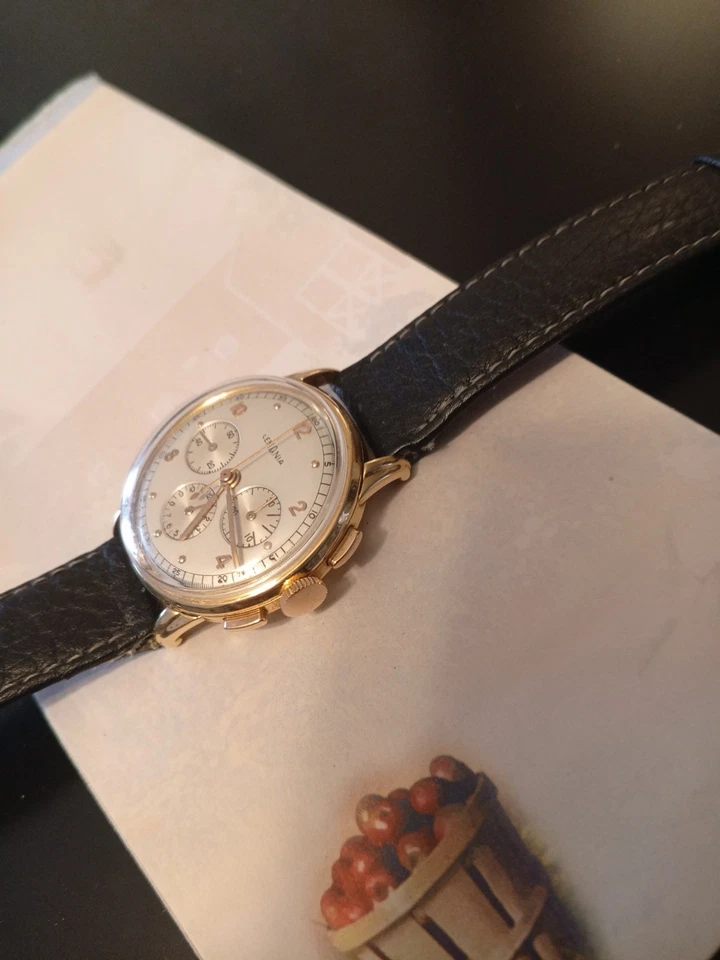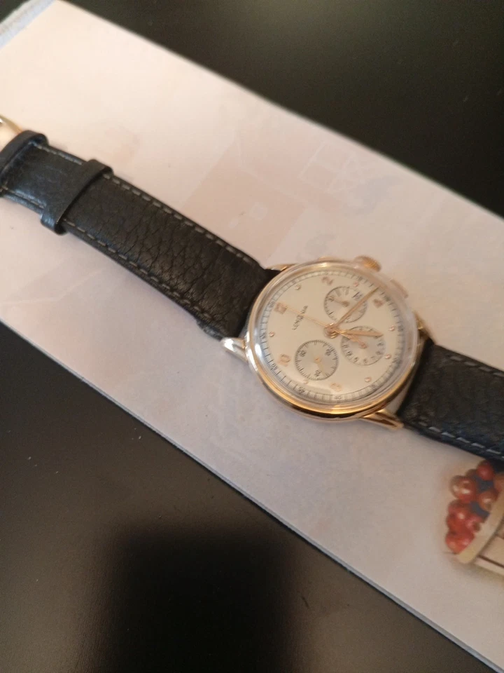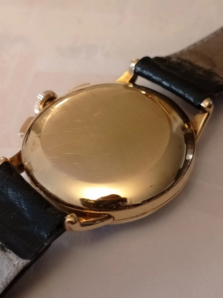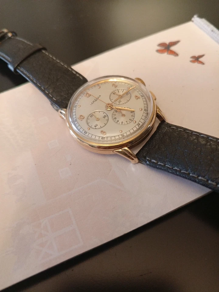 Lemania Chronograph 3 Register 18k Solid Rose Gold ch27 Omega Moon rare 105 Cal