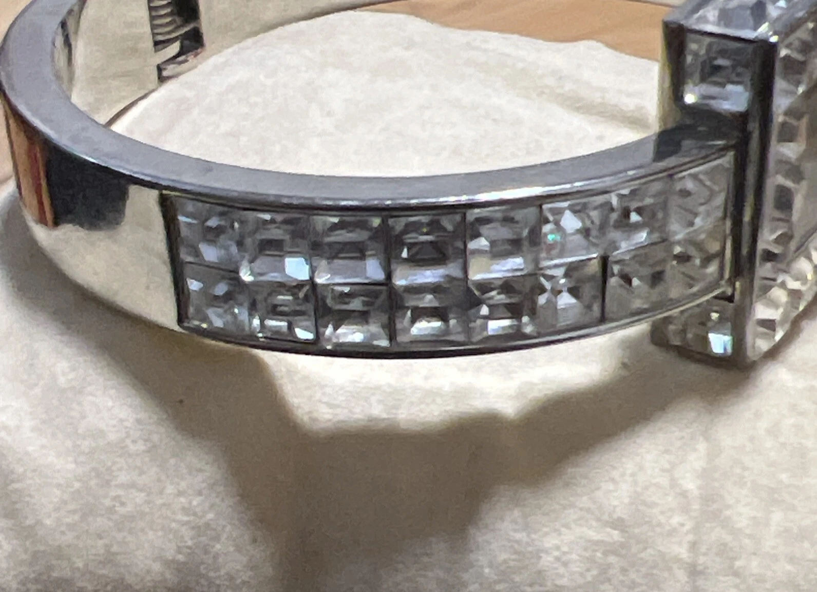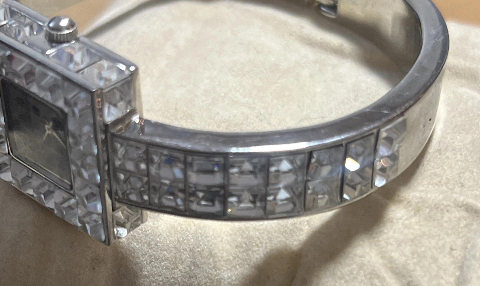 Paris Hilton Crystal Quartz Watch Statement Bracelet Mother of Pearl Face