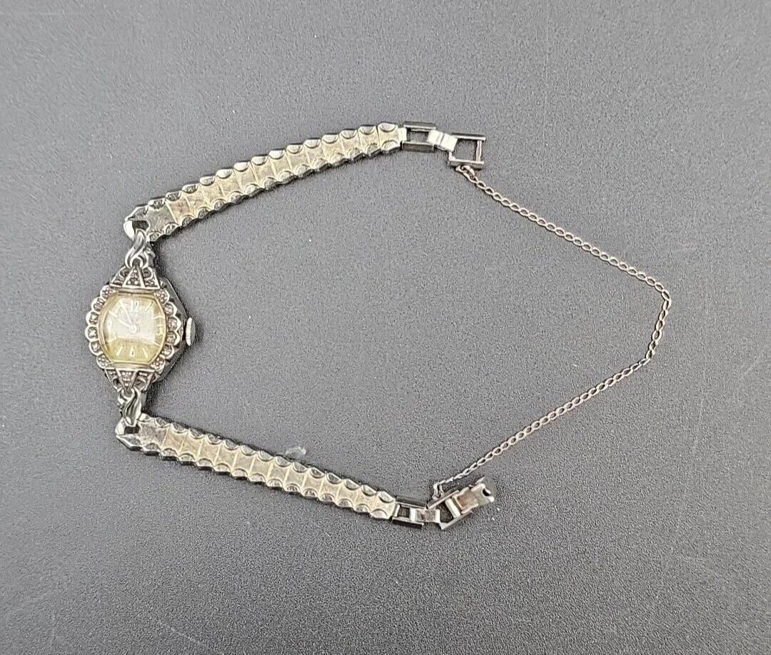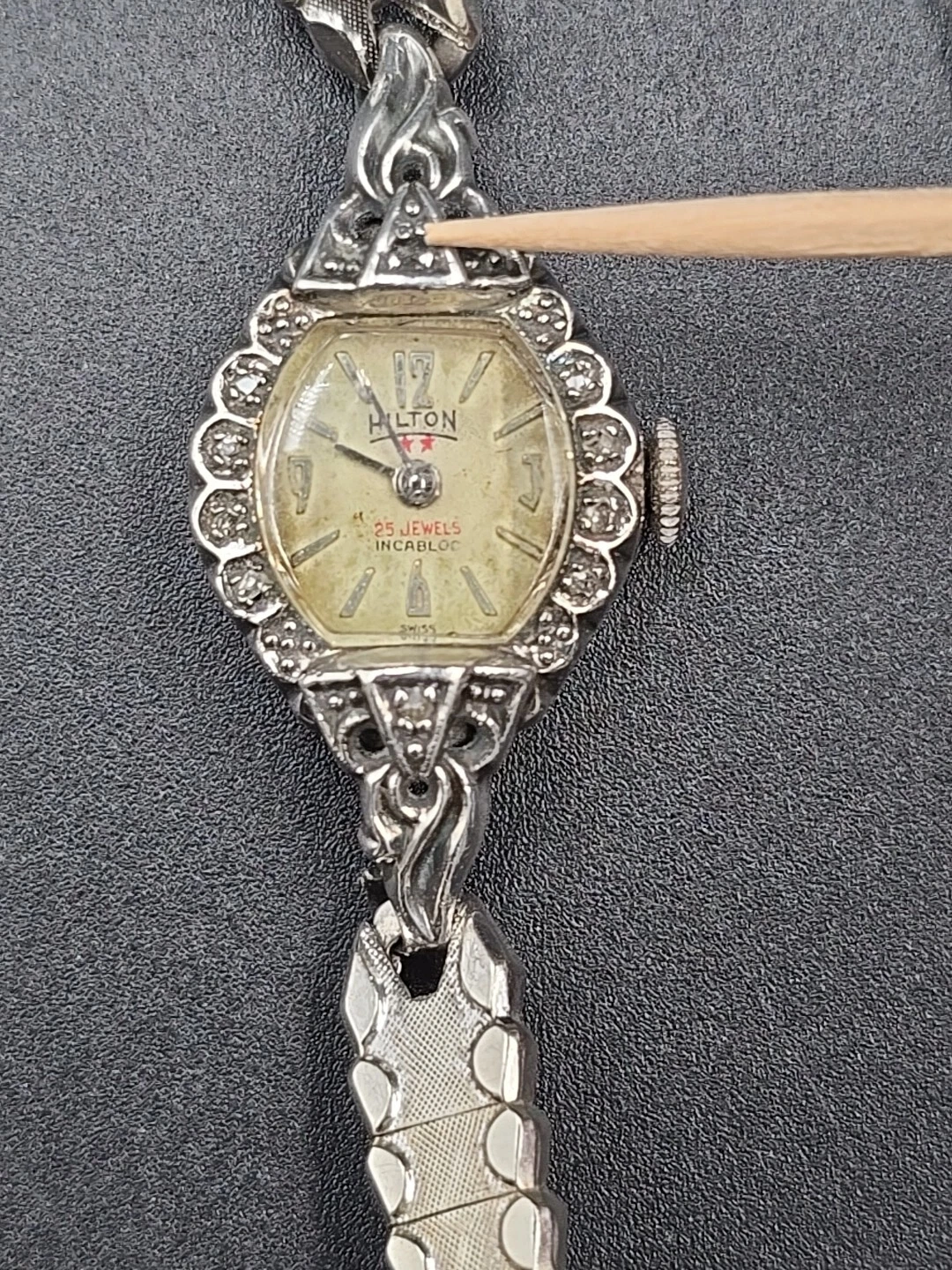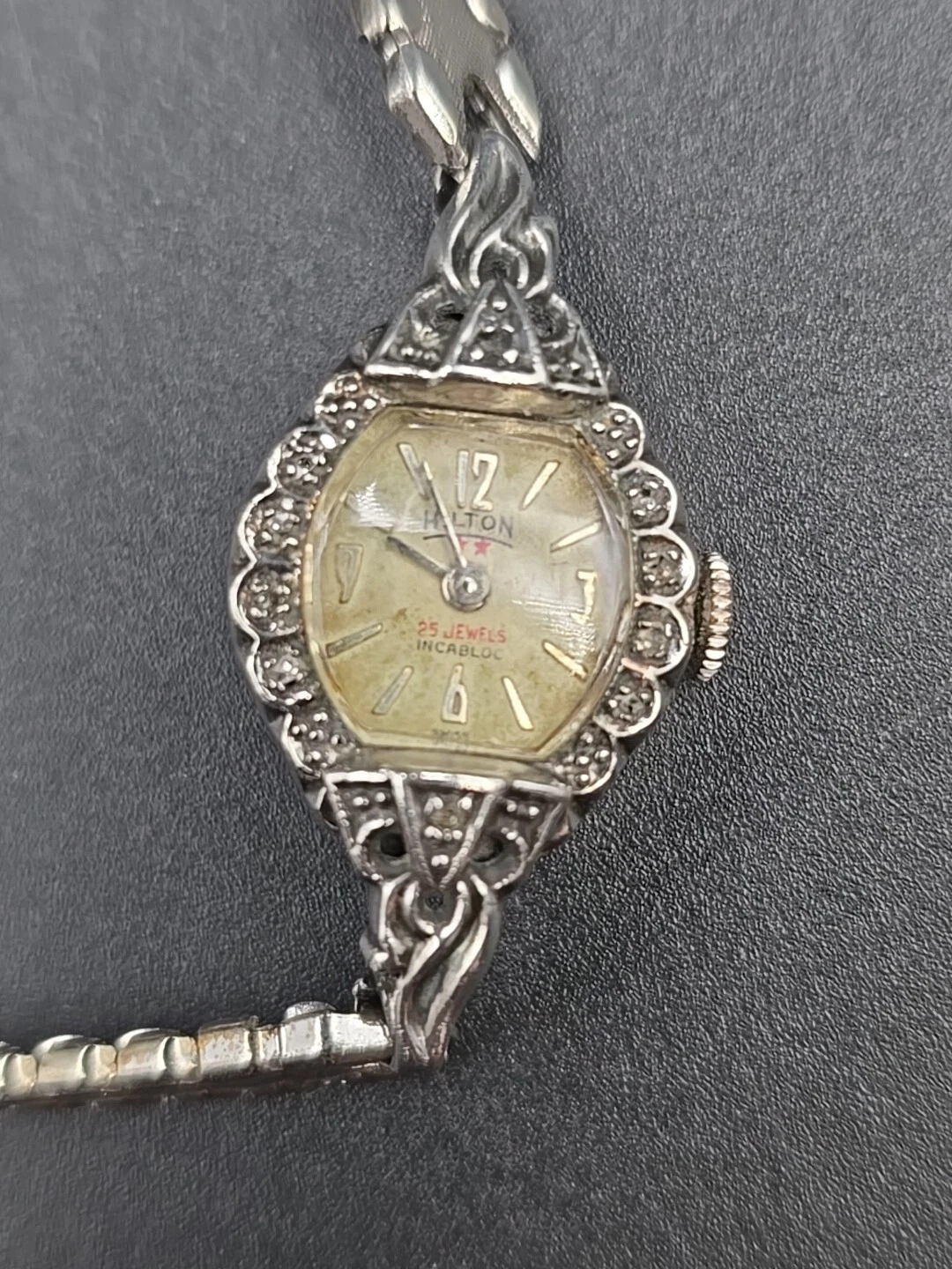 Hilton 25J Incabloc Diamond Accent Ladies Swiss Wristwatch READ