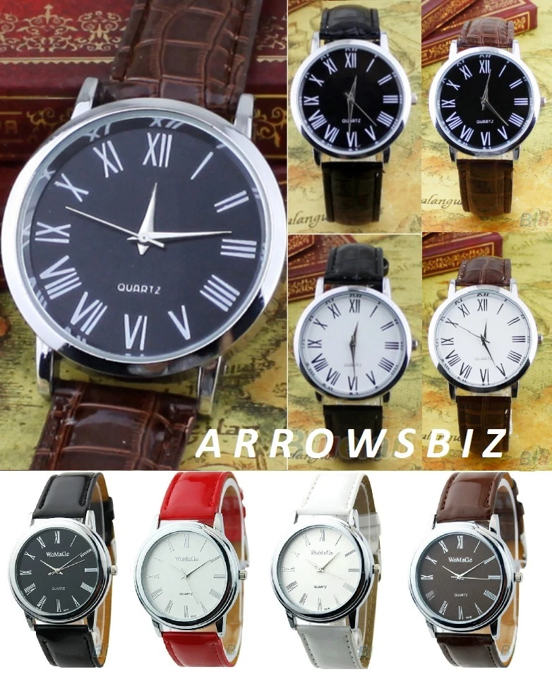 Roman Display Unisex Analog Wrist Watch Leather Strap Quartz Various Styles UK