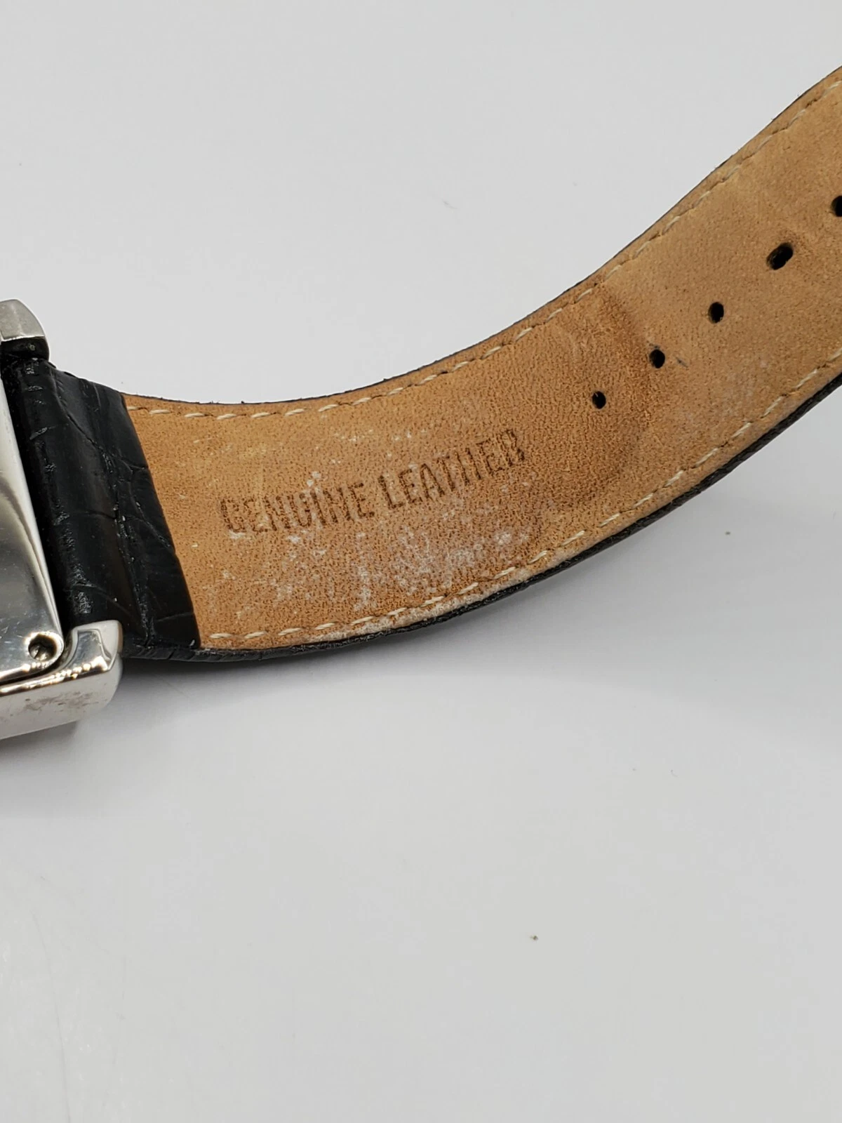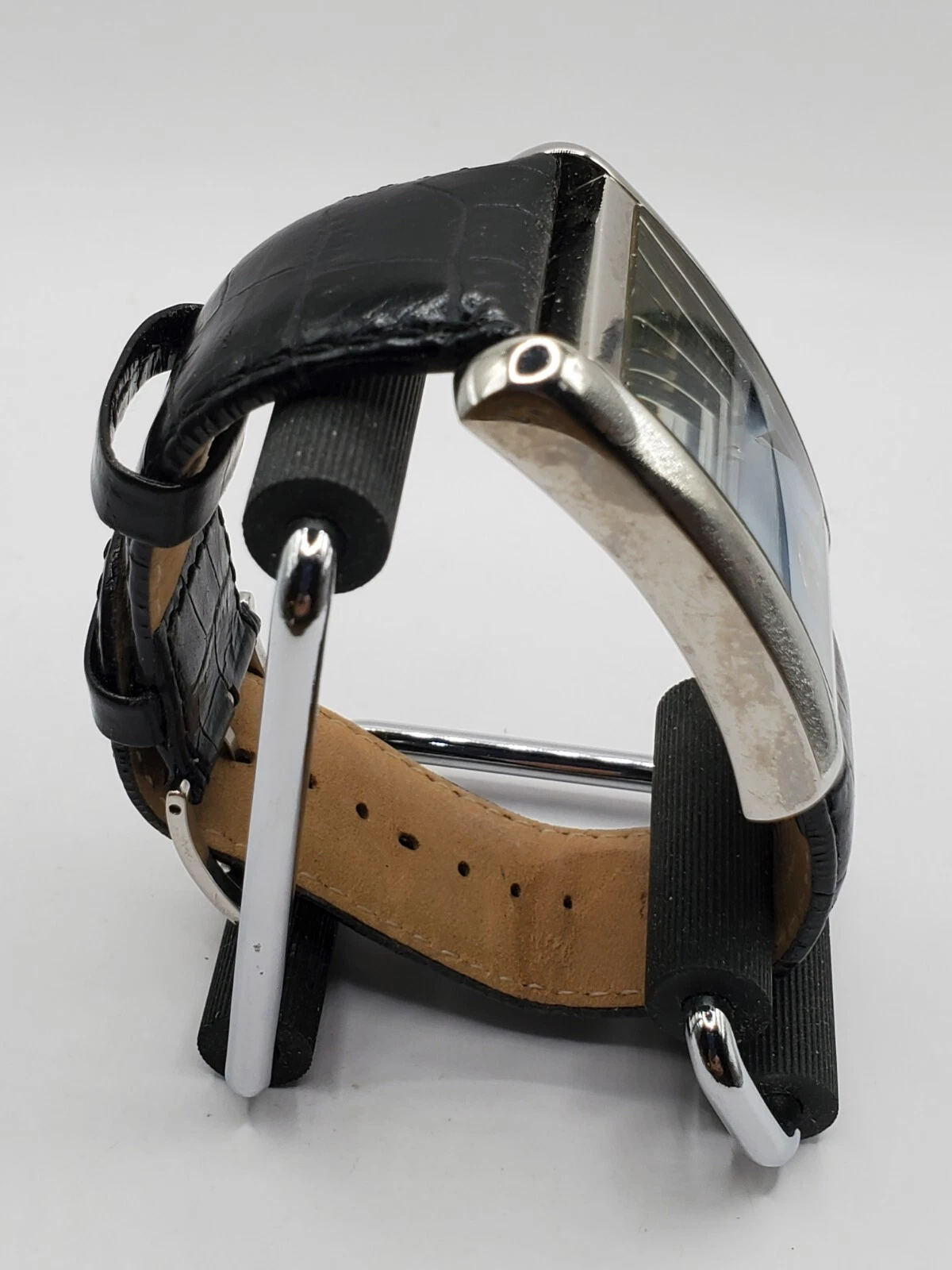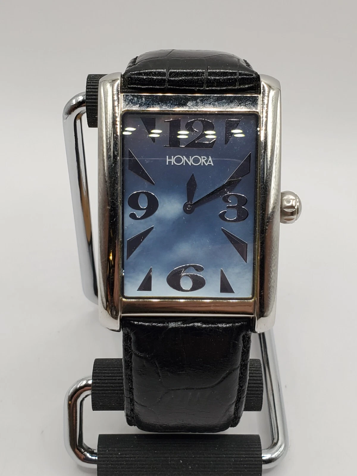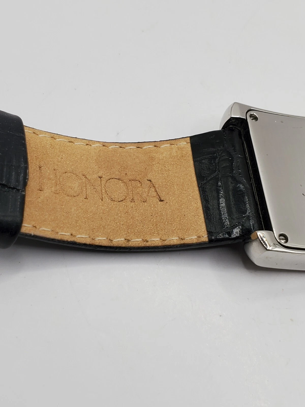 Honora Men's Fashion Quartz Watch 32mm Rectangle Silver Tone Black Leather