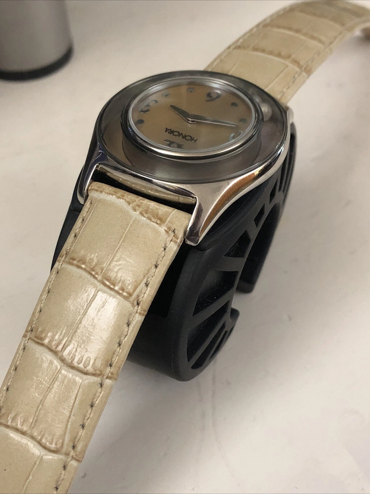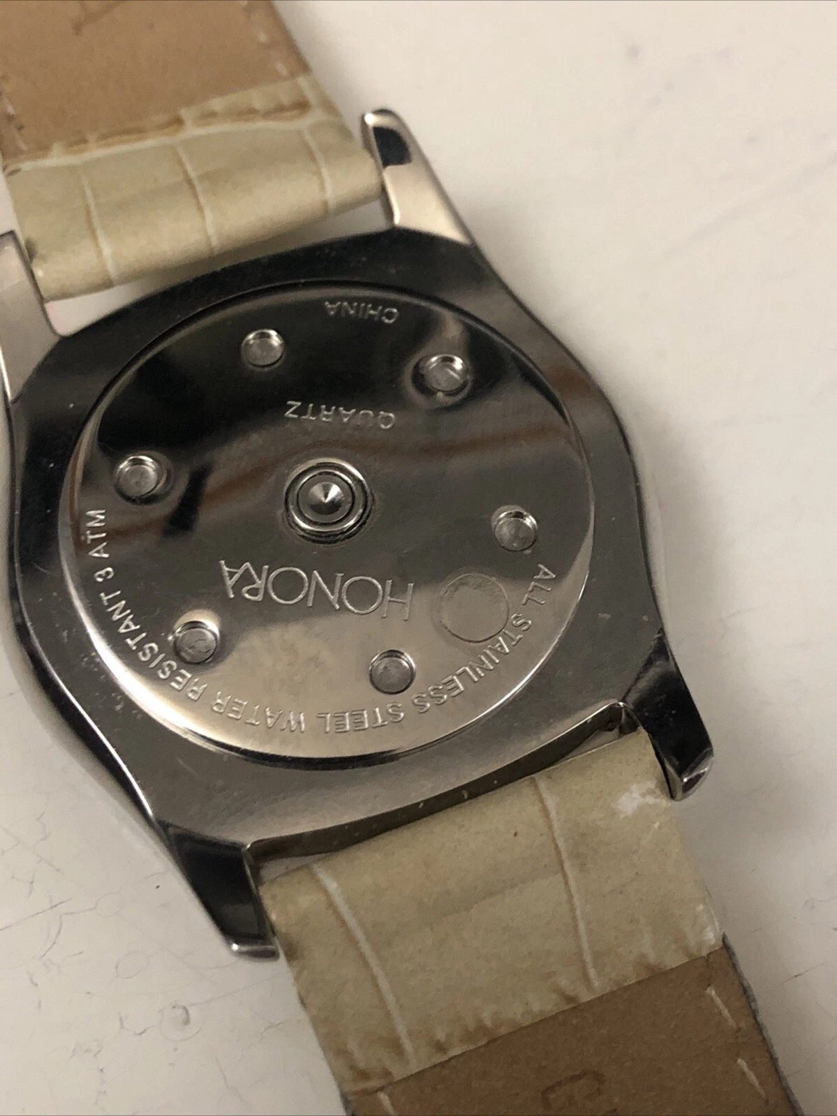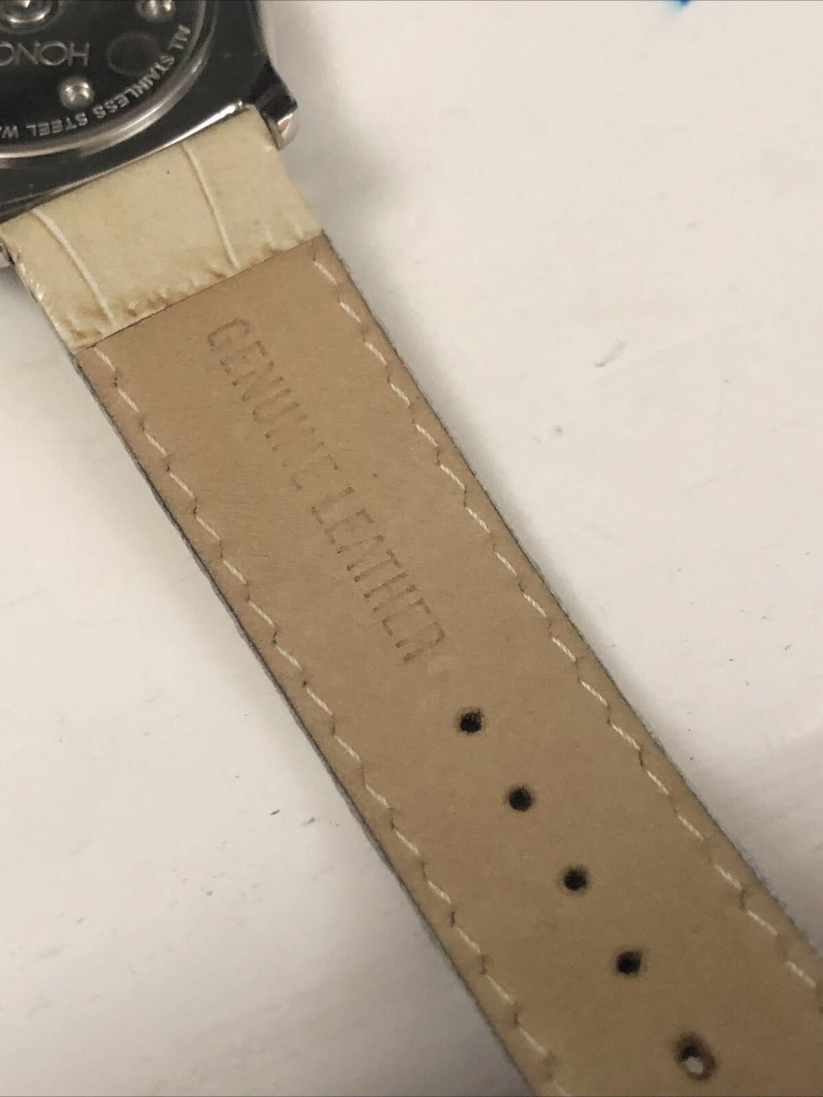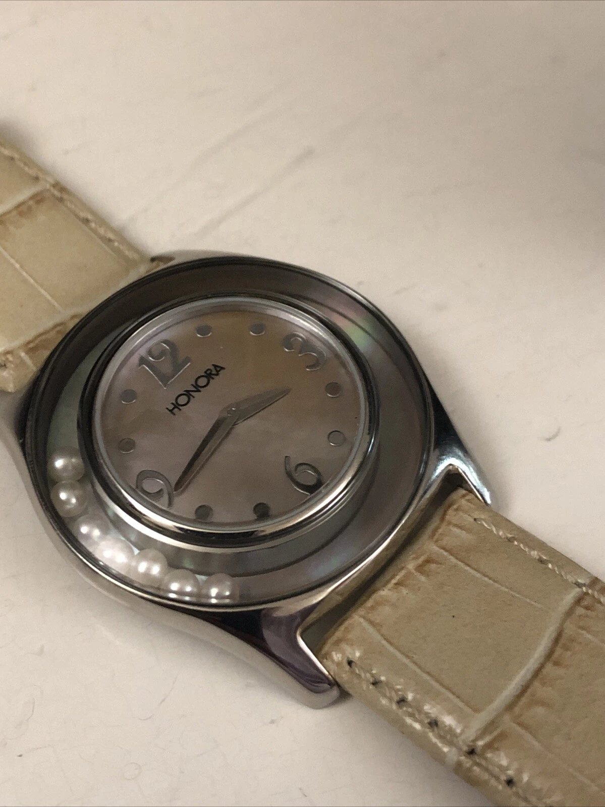 Honora Pearl Watch Women 36mm Silver Tone MOP Dial Leather Band New Battery