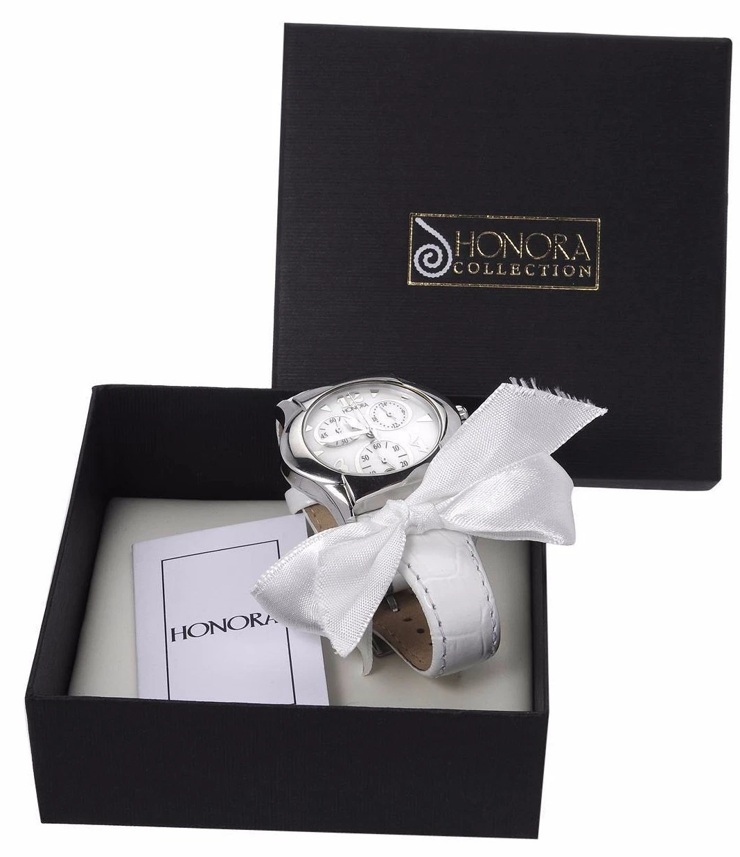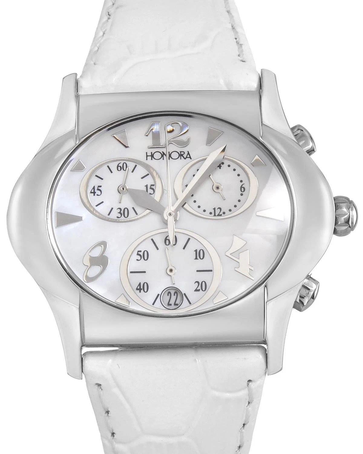 HONORA CHRONOGRAPH DATE WATCH WITH GENUINE MOTHER OF PEARL,WHITE STRAP.BRAND NEW