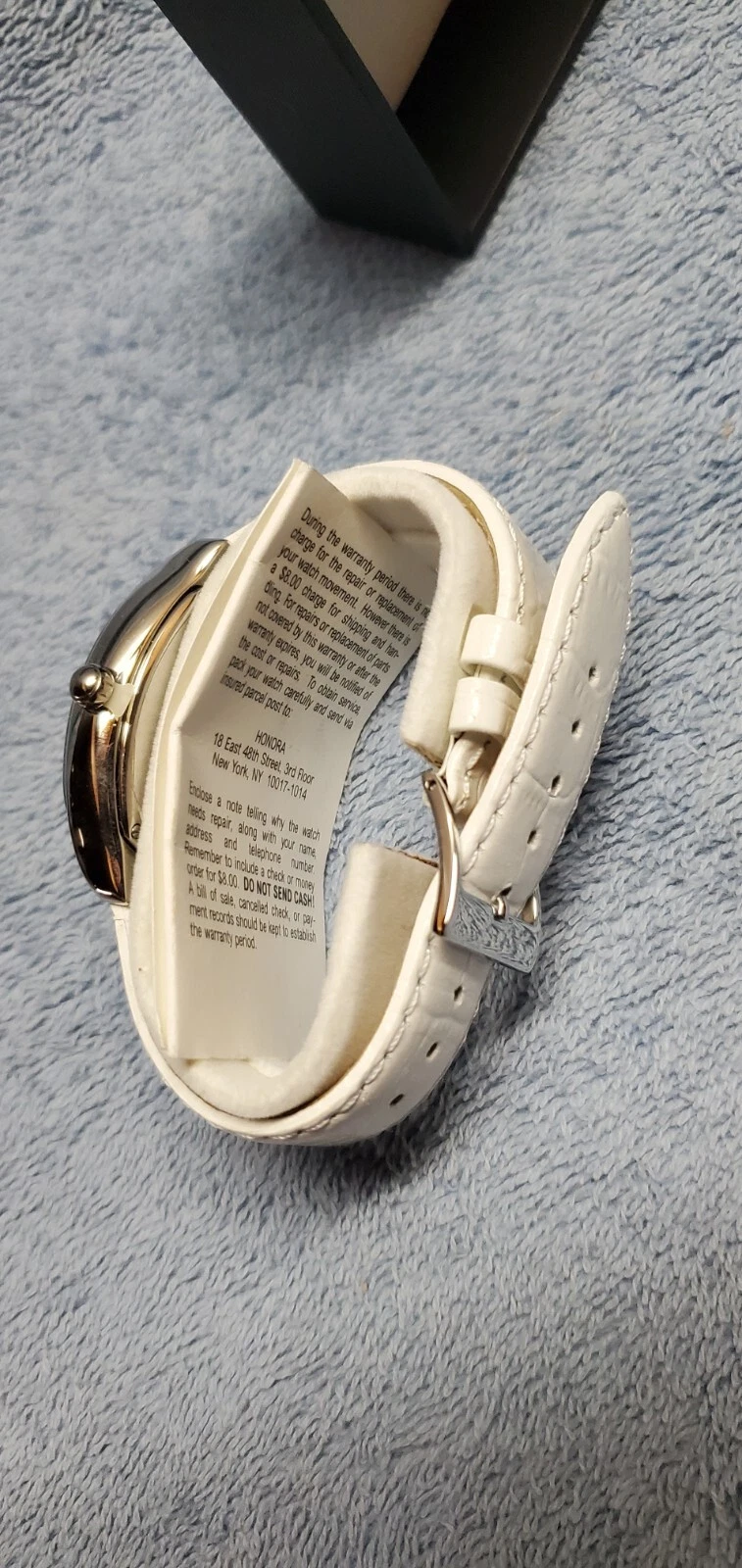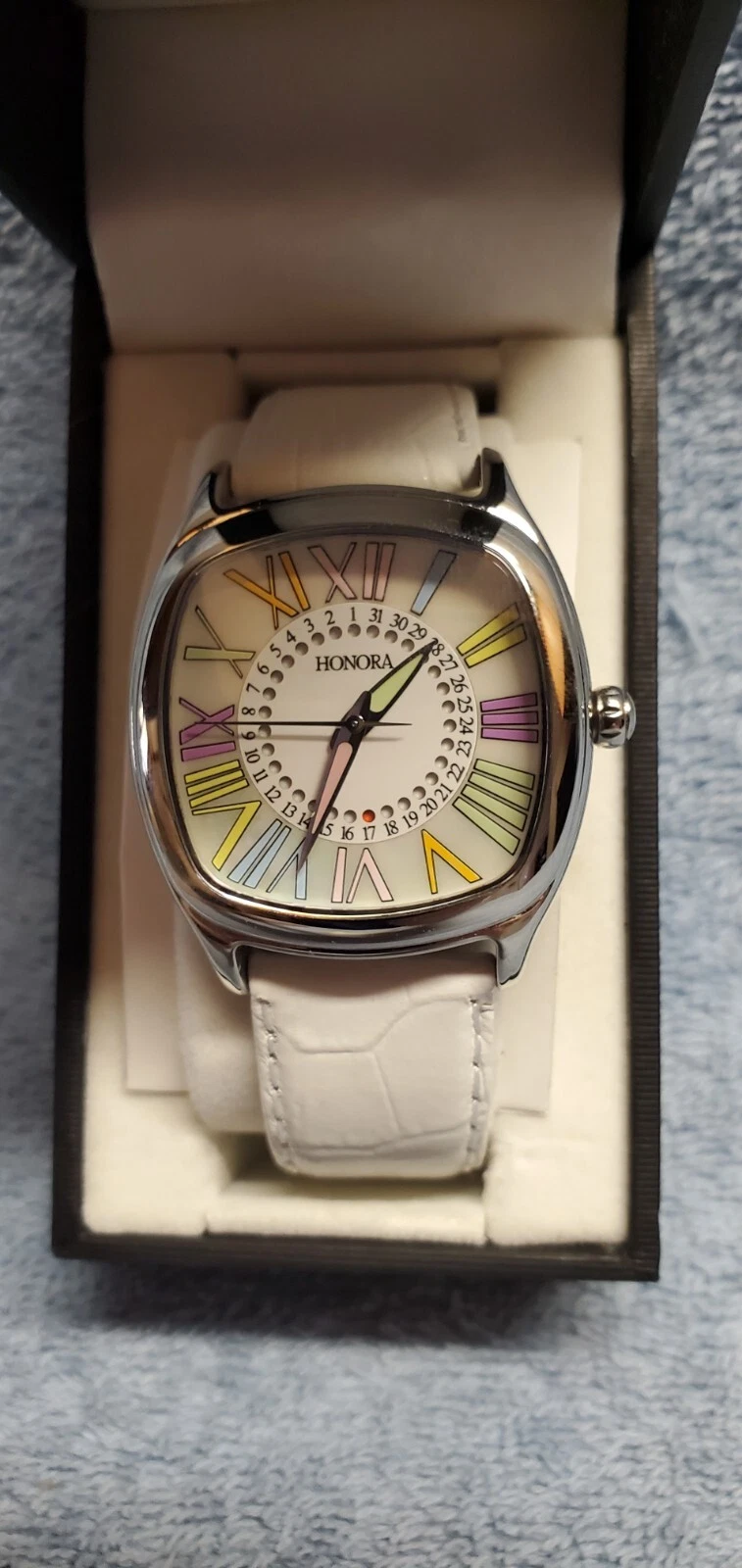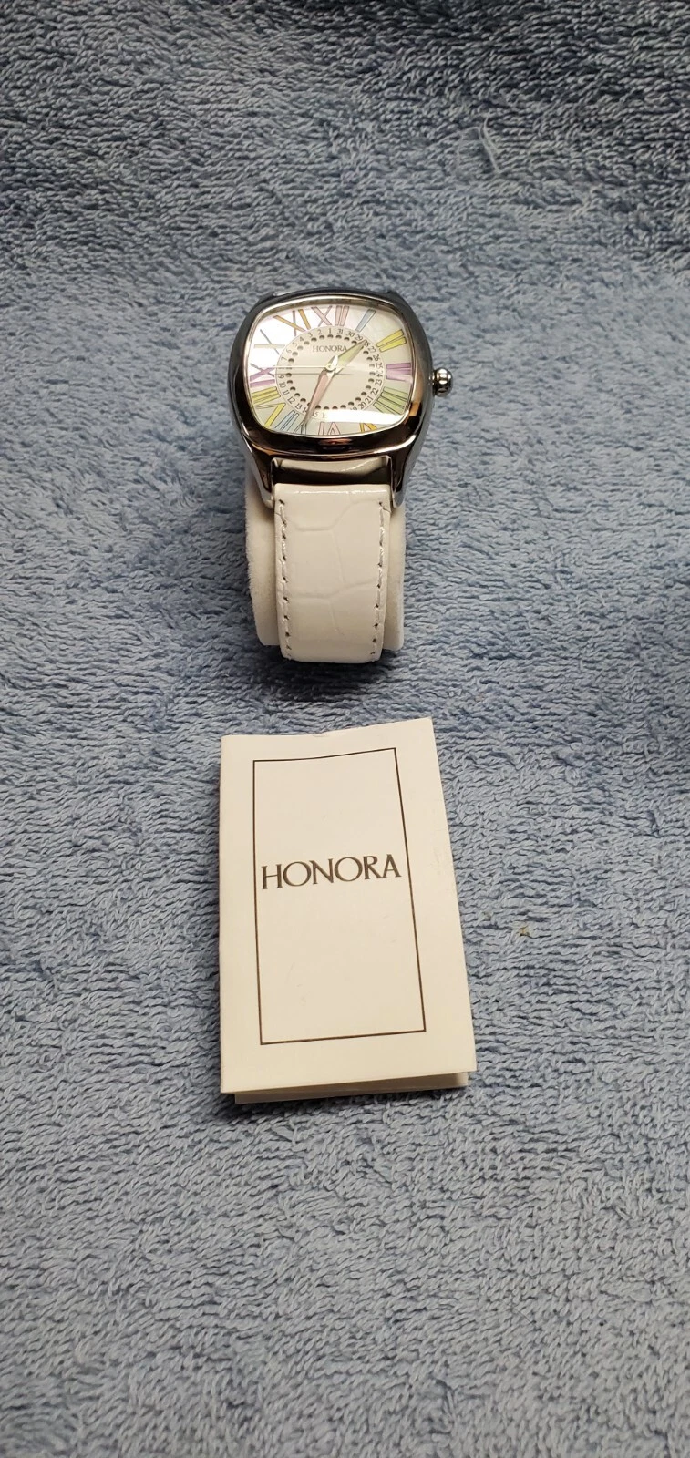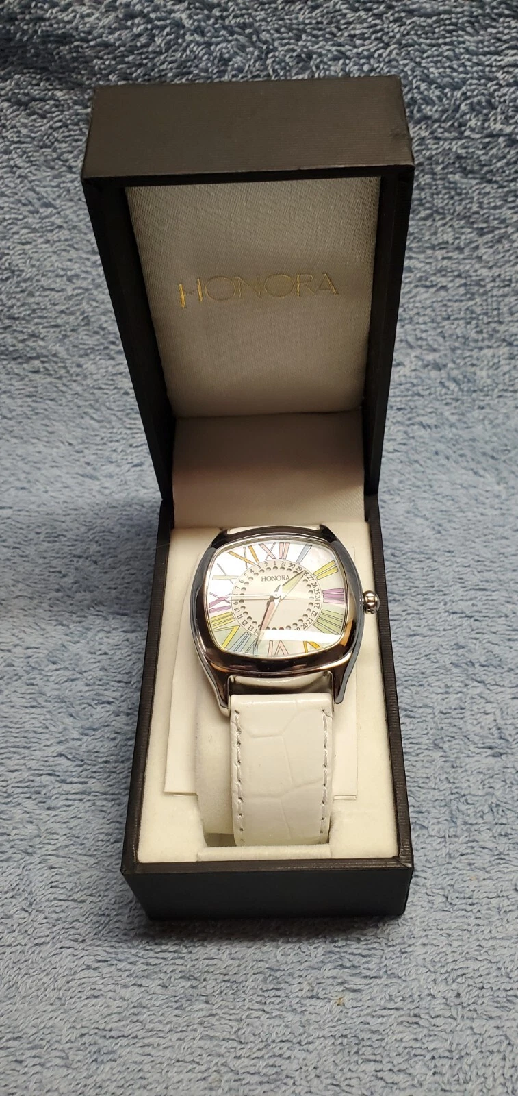 Honora Mother-of-Pearl Cushion Case Watch with Leather Strap New in box